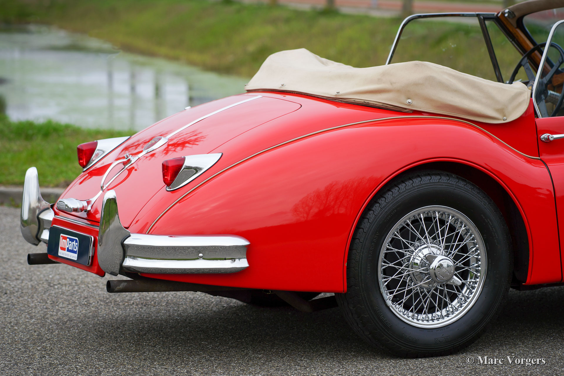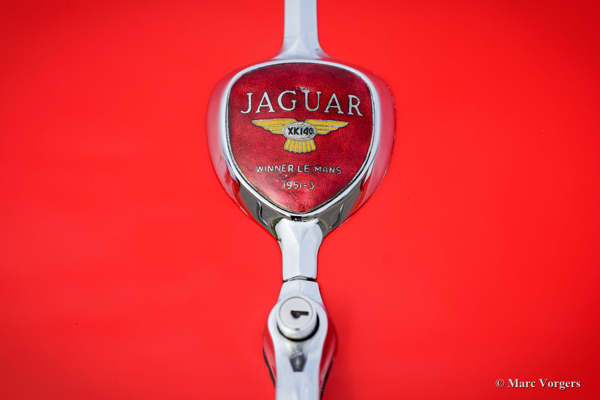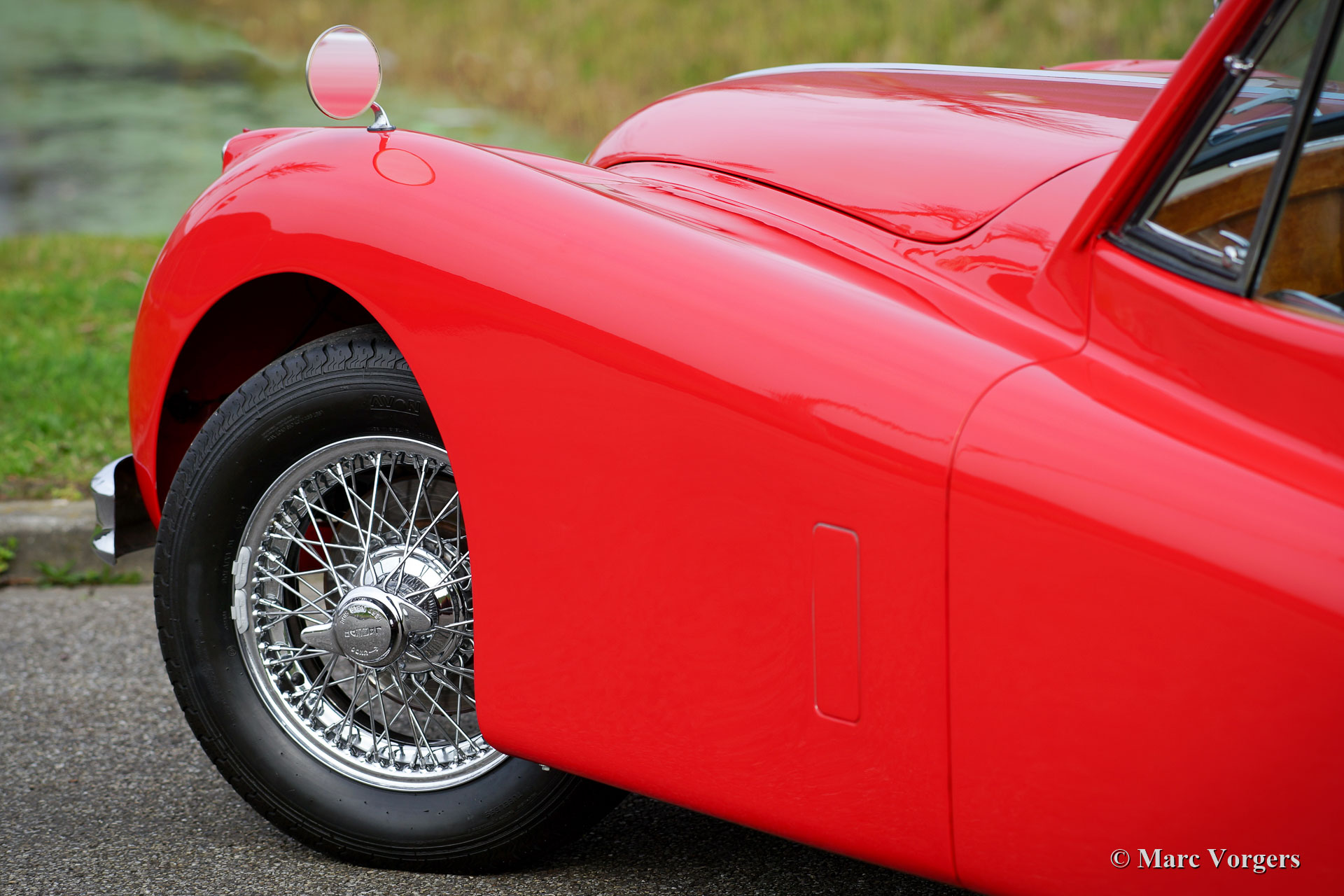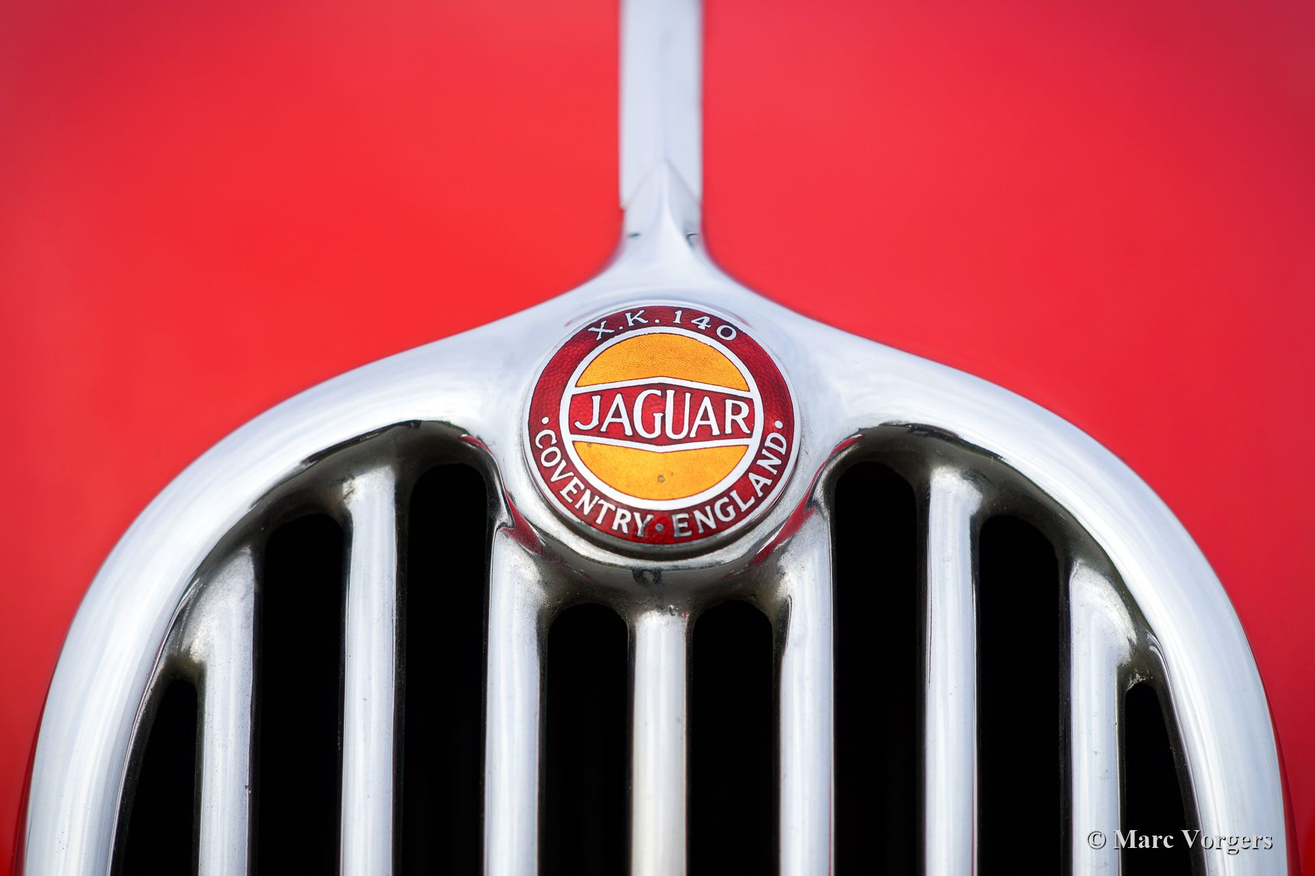 The Jaguar XK 140 replaced the famous XK 120 and was brought onto the market in 1954. The XK 140 was an evolution of the XK 120 with some visual differences and technical improvements. The handsome and dynamic features remained largely unchanged. New was the grille, which counted fewer vertical bars; the rear lights were larger, the bumpers were thicker, and the front indicators, which were placed on the front of the front wing. The important technical improvement was that the XK 140 was provided with a rack and pinion steering which greatly improved steering and driving.