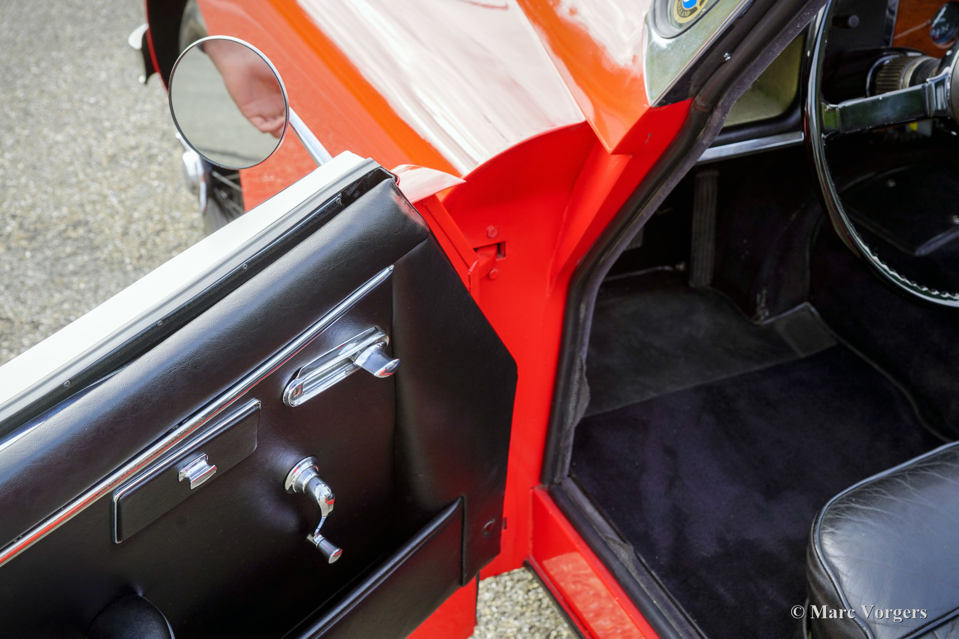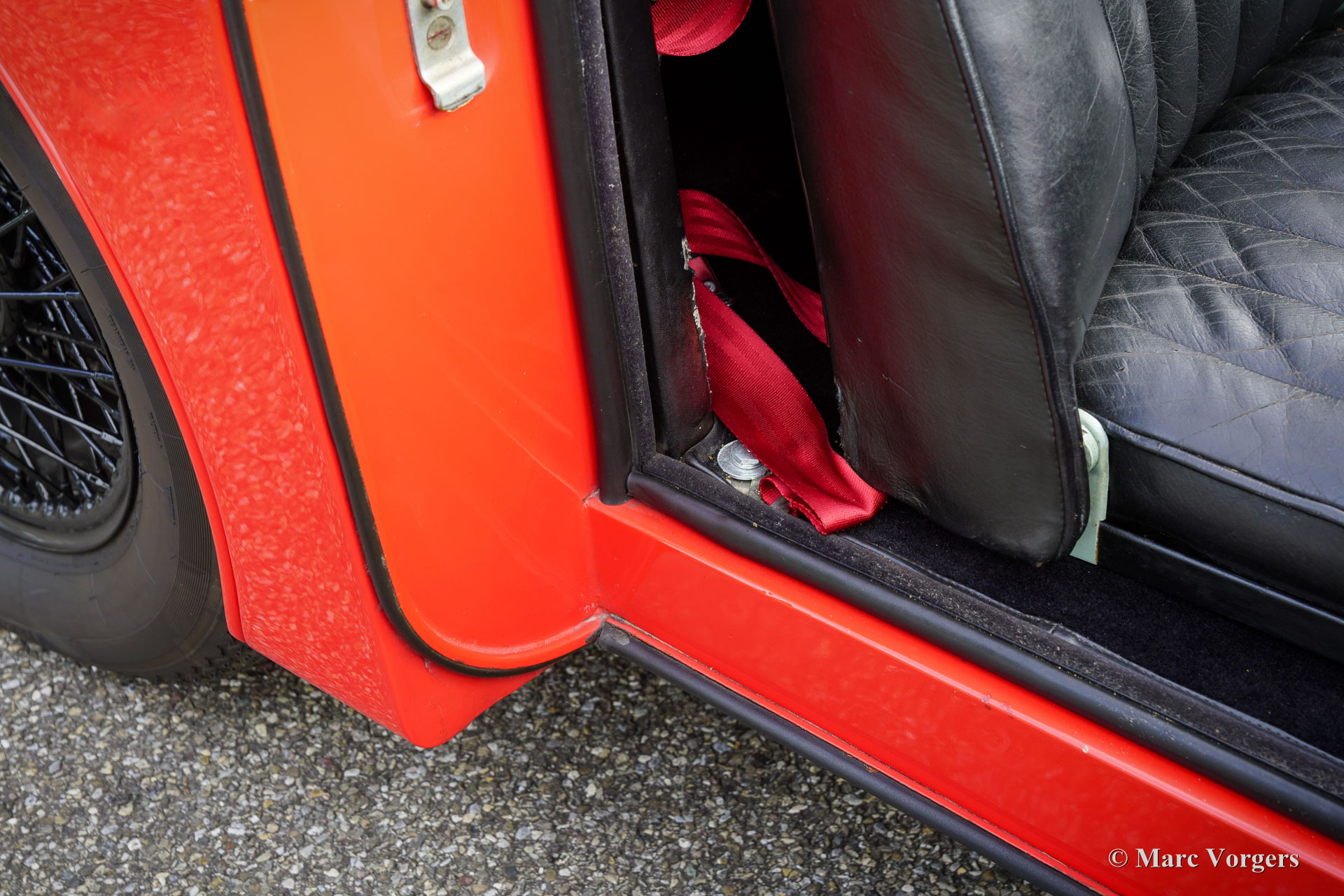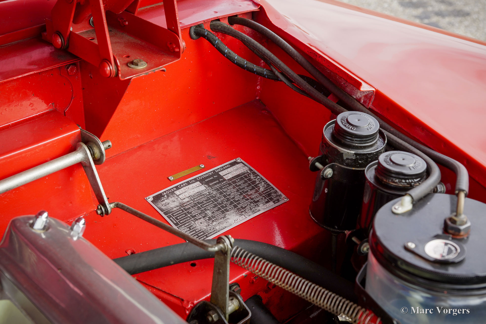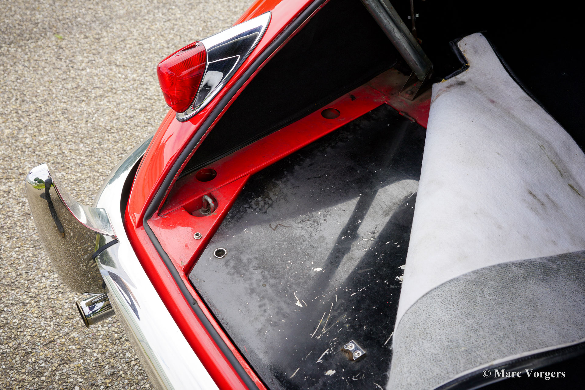 Jaguar XK 150 3,4 Liter OTS (Roadster), Jahr 1959. Farbe rot (Carmen red) kombiniert mit einer schwarzen Lederausstattung mit schwarzem Teppich. Schwarzes Verdeck und Persenning. Dieser prächtige Jaguar XK 150 OTS (Open Two Seater, in den USA auch Roadster genannt) wurde in den Vereinigten Staaten neu verkauft. Das Auto wurde 1986 in die Niederlande importiert und 2001 vom letzten Besitzer gekauft. Die (Wartungs-)Historie ist ab 2009 vollständig dokumentiert. Ein Heritage-Zertifikat ist vorhanden und die Informationen besagen, dass dies ein Jaguar mit „Matching Numbers“ ist! Das Auto ist in einem sehr guten Zustand und alles ist auf dem neuesten Stand. Die Karosserie zeigt eine perfekte Passung der Paneele, eine schöne Lackierung und wunderbare Chromteile. Der Sechszylinder-XK-Motor wurde 2014 von einem Spezialisten in den Niederlanden Komplett überholt. 2016 wurde eine elektrische Servolenkung von EZ eingebaut. Die 215 PS werden über ein Viergang-Schaltgetriebe mit Overdrive auf die Hinterräder übertragen. Dieser XK 150 Roadster fährt perfekt, dies ist eines der allerbesten Exemplare, die wir je gefahren sind! Das Auto zeigt alle Originaldetails und verfügt über wünschenswerte Extras wie das mittlere Armaturenbrett in Nuss Holz, 16-Zoll-Speichenräder mit Vredestein Sprint Classic-Reifen, ein Paar Lucas SFT576-Nebel-/Kurvenscheinwerfer an der Vorderseite, Servobremsen, elektronische Zündung, einen elektrischen Kühlerlüfter, rote Sicherheitsgurte und ein „Retro“-Radio mit Navigationssystem. Dies ist ein sehr begehrter Jaguar XK 150 OTS (Roadster) in einem wunderbaren Zustand, ein fantastisches klassisches Fahrerauto, das einem stolzen neuen Besitzer jede Menge Fahrspaß bringen wird. Der Jaguar XK 150 3,4 Liter OTS ist ein seltenes Auto, es wurden nur 1339 Exemplare gebaut.