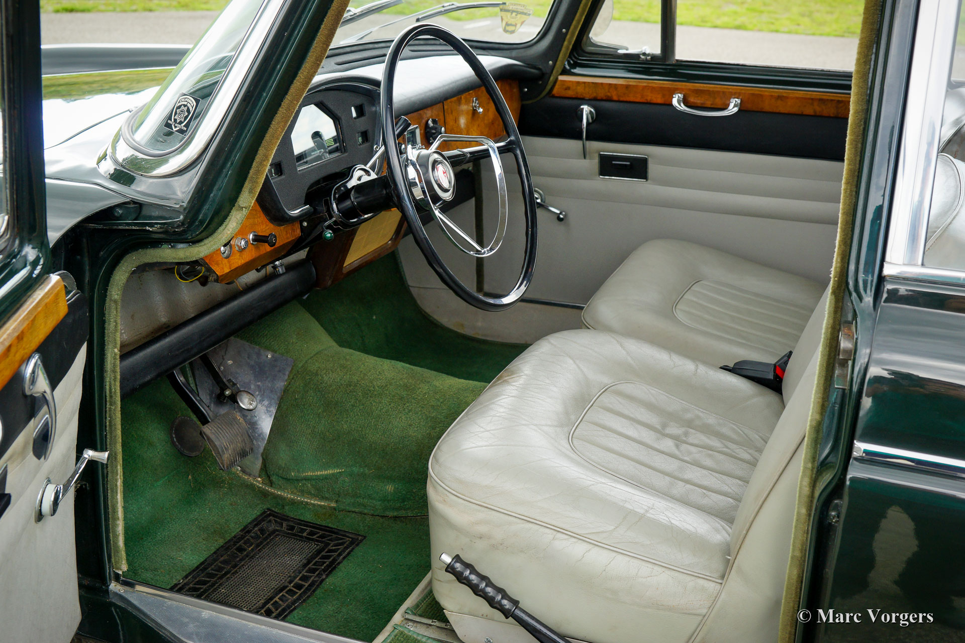 MG Magnette Mk 4, Jahr 1963. Farbe British Racing Green kombiniert mit einer grauen Lederausstattung und einem grünen Teppich. Dies ist ein seltener MG Magnette, der neu in die USA verkauft wurde. Das Auto wurde 2017 in die Niederlande importiert. Dieser Magnette Mk 4 ist ein super seltenes Modell mit Linkslenkung. Die US-Herkunft wird durch die roten Rücklichtgläser bestätigt, die in anderen Ländern orange / rot waren. Der MG Magnette Mk4 wurde von Pininfarina zusammen mit den Schwestermodellen Austin A60, Riley 4/72, Morris Oxford VI und Wolseley 6/110 entworfen. Die Autos teilten das gleiche Grunddesign mit spezifischen personalisierten Front-, Heck- und Innendesigns. Dieser feine MG Magnette wurde in der Vergangenheit restauriert und das Auto zeigt alle Originaldetails. Das Auto ist in einem außergewöhnlich guten Zustand und es fährt sich wunderbar. Der Innenraum ist völlig original und Ihre Augen werden von dem wunderbar geformten Armaturenbrett und Lenkrad gefangen. Das Auto wird von dem robusten MG 1622 ccm (72 PS) Motor angetrieben, der mit einem Drei-Gang-Automatikgetriebe kombiniert ist. Dieser große „Limousine“ bietet ausreichend Platz für vier bis fünf Personen und deren Gepäck.