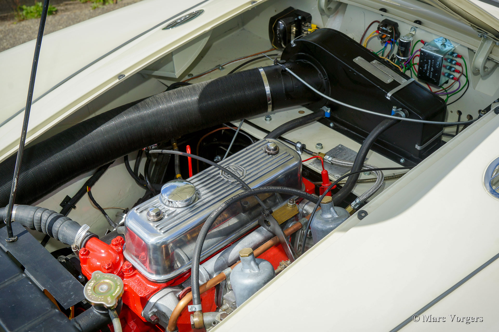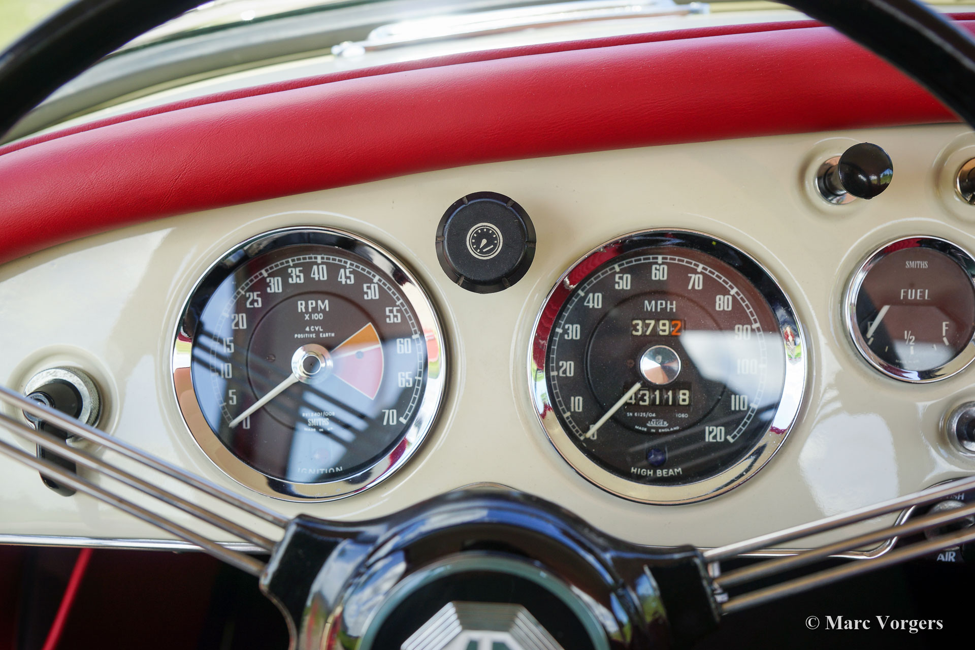 The year 1955 saw the introduction of the MGA. With this design the MG broke new grounds. After its predecessors MG TD and MG TF, which were largely based on the pre-war MG TB, it was a roadster with a very modern sporty design. Like its predecessors, the MGA was a great success and, like before, the greater part was sold in America. Until 1959, the MGA was equipped with a 1459 cc four-cylinder engine. From that year, the car was fitted with a 1588 cc four-cylinder. A 1622 cc four-cylinder engine replaced the 1588 cc. engine in 1961. The early MGA versions had very good drum brakes until 1959, but after that year, the MG A was equipped with disc brakes on the front wheels. The year 1962 saw the production of the MGA, the A 1600 Mk II. The MGB replaced this very popular British sports car, and was to develop the success of the MG A even further.
