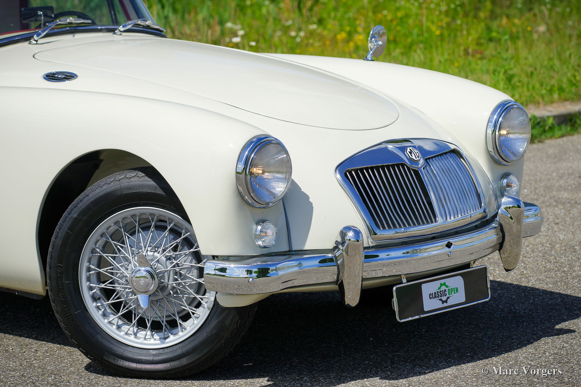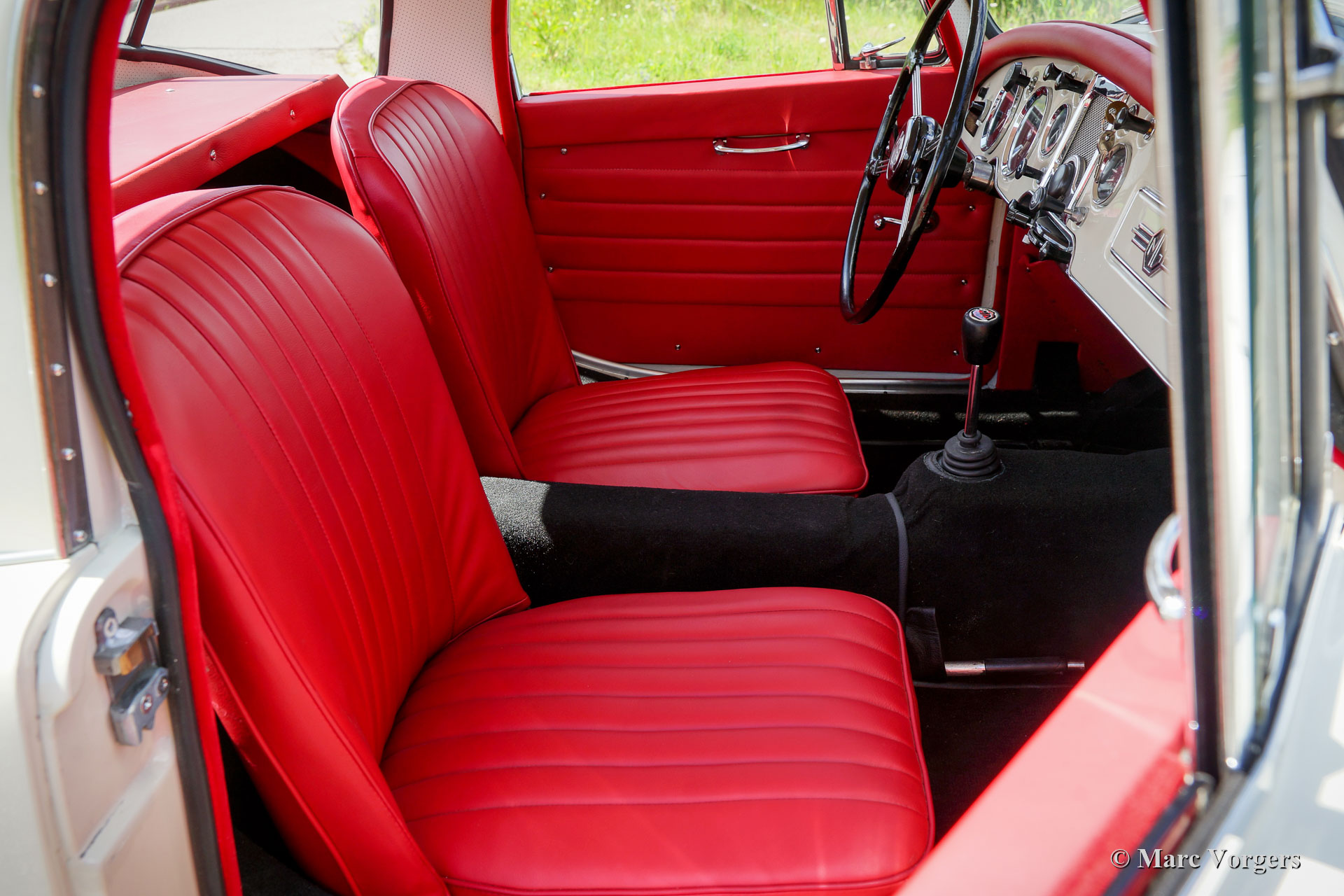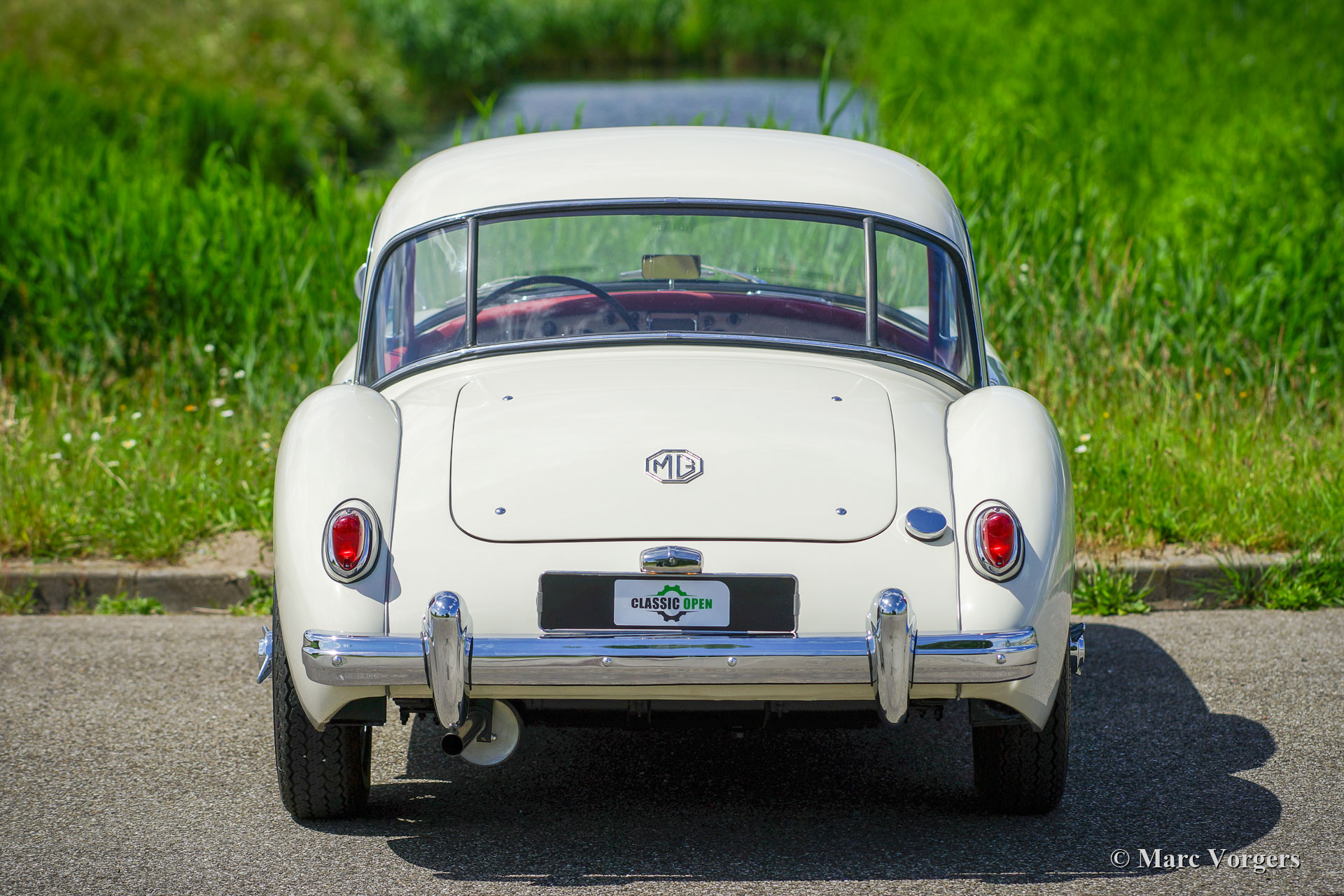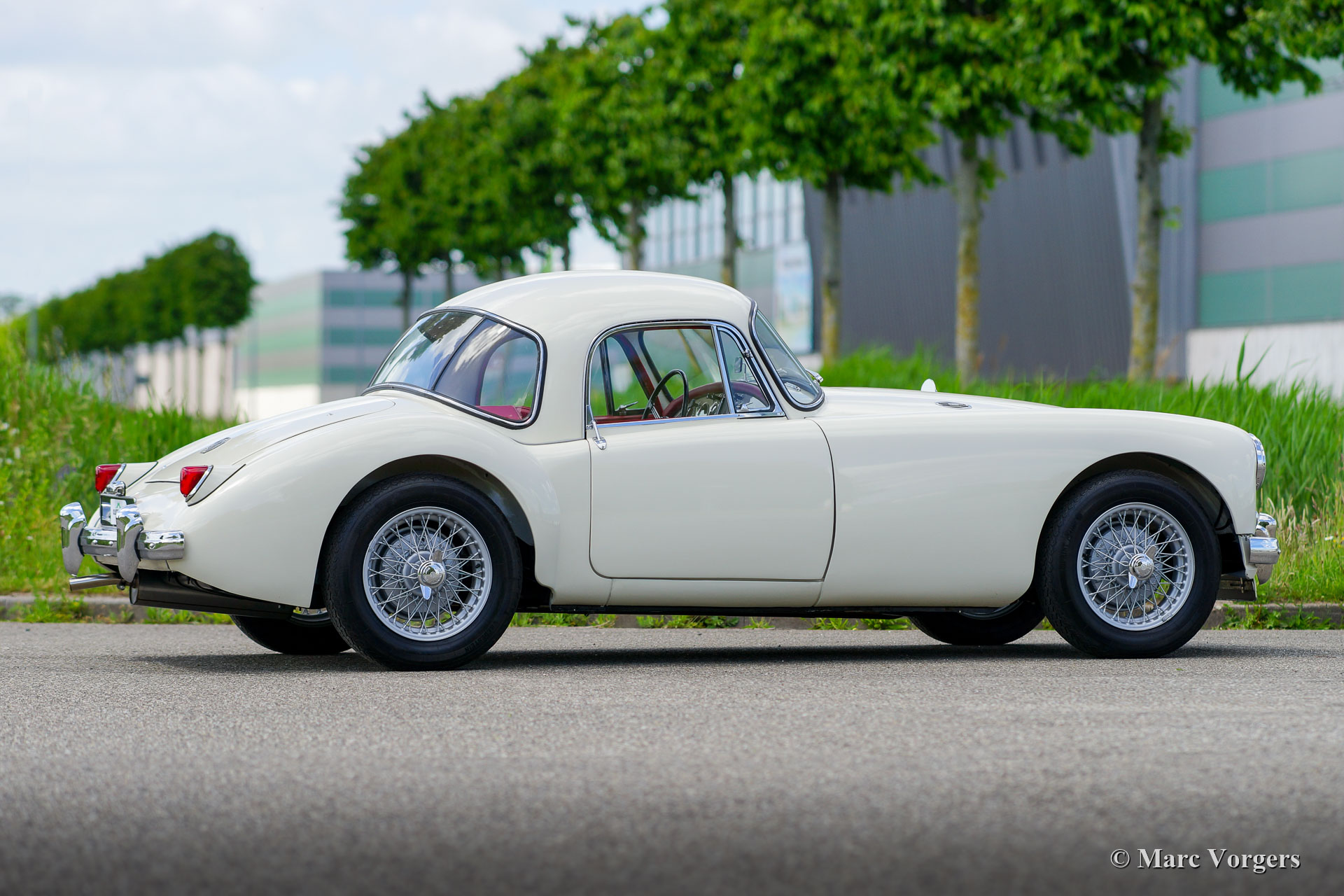 MG MGA 1500 Coupé, Jahr 1959. Farbe Old English White kombiniert mit einer roten Lederinterieur mit schwarzem Wollteppich. Dieses äußerst schöne MGA 1500 Coupé wurde vollständig bis zur Perfektion restauriert, das Auto ist in einem besseren als neuwertigen Concours-Zustand! Das MGA 1500 Coupé ist im Vergleich zu seinem Roadster-Schwestermodell, das sich in den USA großer Beliebtheit erfreute, ein recht seltenes Auto. Nur 6200 MGA 1500 Coupés wurden gebaut und die meisten von ihnen fanden einen stolzen Besitzer in Großbritannien und im restlichen Europa. Dieses wunderschöne MGA-Coupé zeigt atemberaubende Originaldetails, Sie können nicht aufhören, all die wunderbaren Merkmale und Linien zu betrachten. Das Auto ist ausgestattet mit silber lackierten Speichenrädern, verchromten „Knock-on“-Radmuttern und einer Aluminium-Ventildeckel. Dies ist ein seltenes und begehrtes MG MGA 1500 Coupé in einem Top-Zustand!