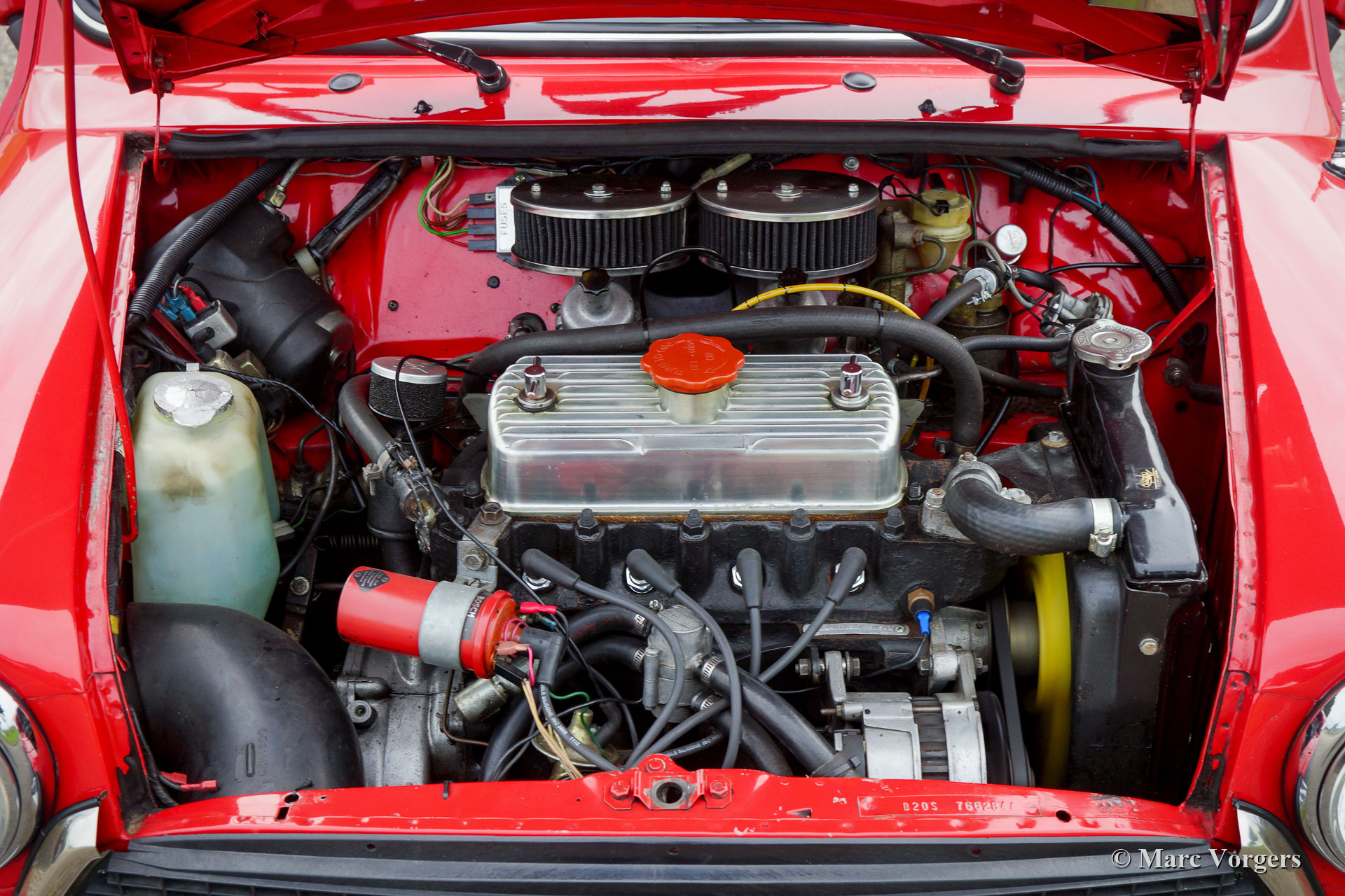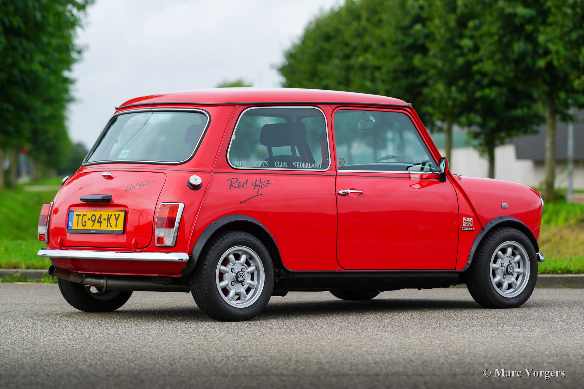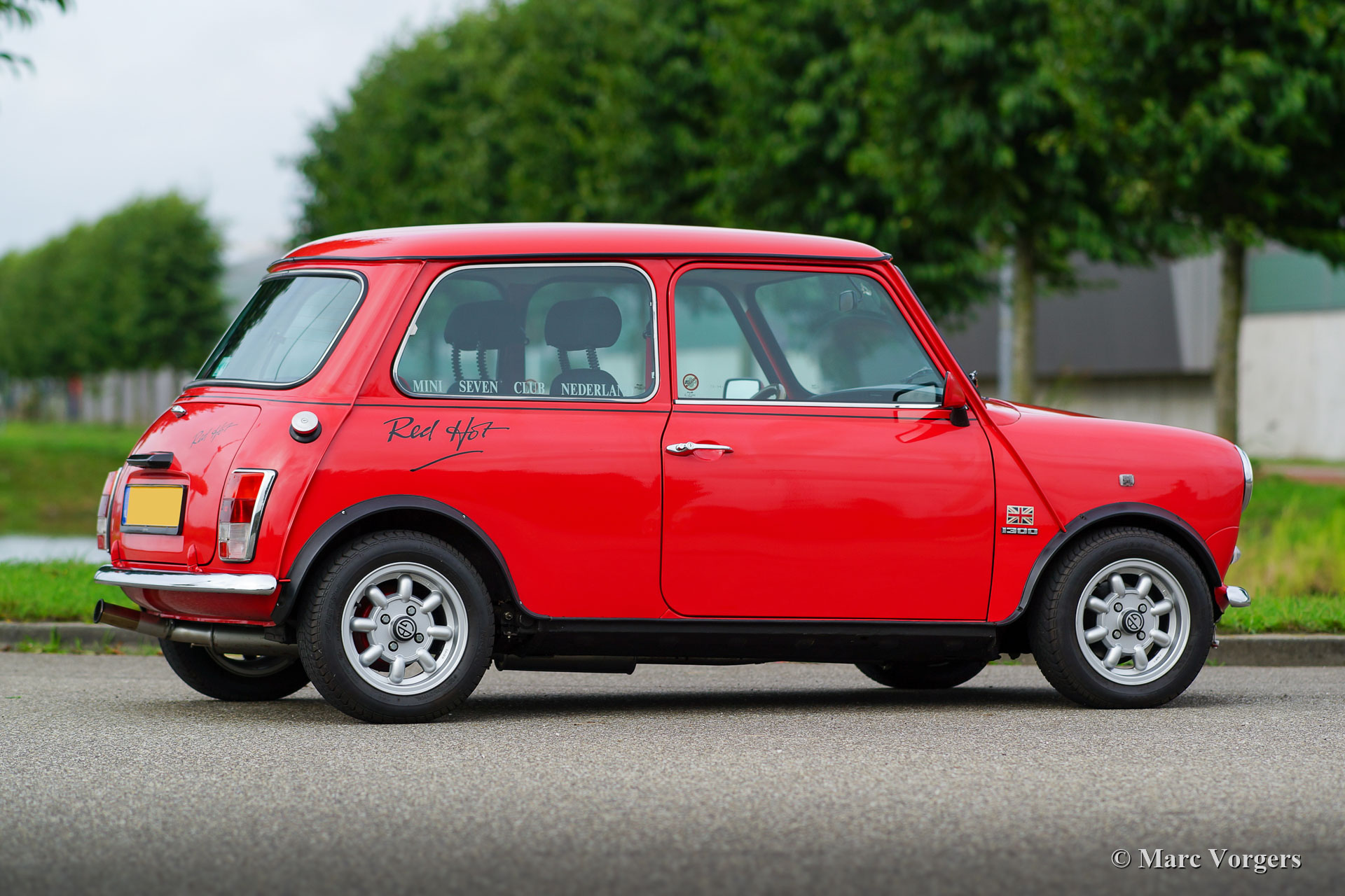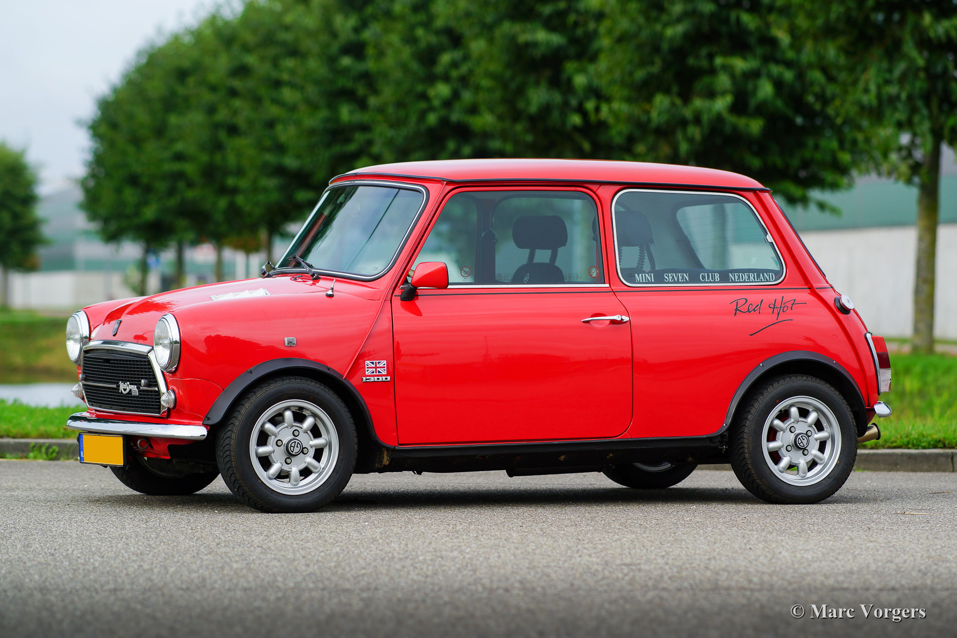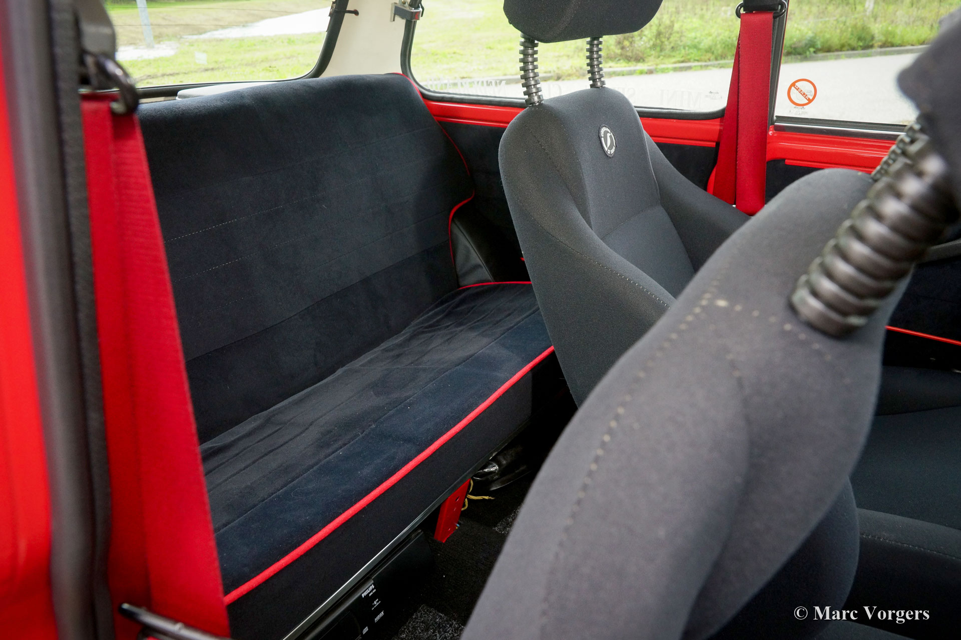 Mini ‚Cooper 1300‘ classic, Jahr 1988. Farbe rot kombiniert mit einem schwarzen Stoff Interieur. Dieser fantastische Classic Mini wurde neu als Mini Red 1000 verkauft. Dieser schöne Mini wurde mit einem 1275-cm³-Cooper-Motor aus einem Innocenti Mini Cooper aufgerüstet. Der Kühlergrill mit dem Mini Cooper 1300-Emblem stammt ebenfalls aus demselben Spenderauto. Der Motor verfügt über zwei S.U. Vergaser und eine ‚schnelle‘ 286er-Nockenwelle. Die Geschichte dieses Mini Cooper und der Umbau sind sehr gut dokumentiert. Das Auto ist innen und außen in einem ausgezeichneten Zustand und das Auto fährt perfekt! Der Mini ist sehr sportlich, aufregend, bremst und schaltet hervorragend und… der Soundtrack des Motors ist fantastisch! Dieser prächtige Mini Cooper verfügt über ein luxuriöses Interieur mit speziellen Corbeau-Schalensitzen, einem Armaturenbrett aus Holz, einem Sportlenkrad mit Holzkranz, einem Motorumdrehungszähler, einem leistungsstarken HiFi-Soundsystem und wunderschönen 12-Zoll-GB-Leichtmetallrädern. Dies ist ein fantastisches Beispiel!