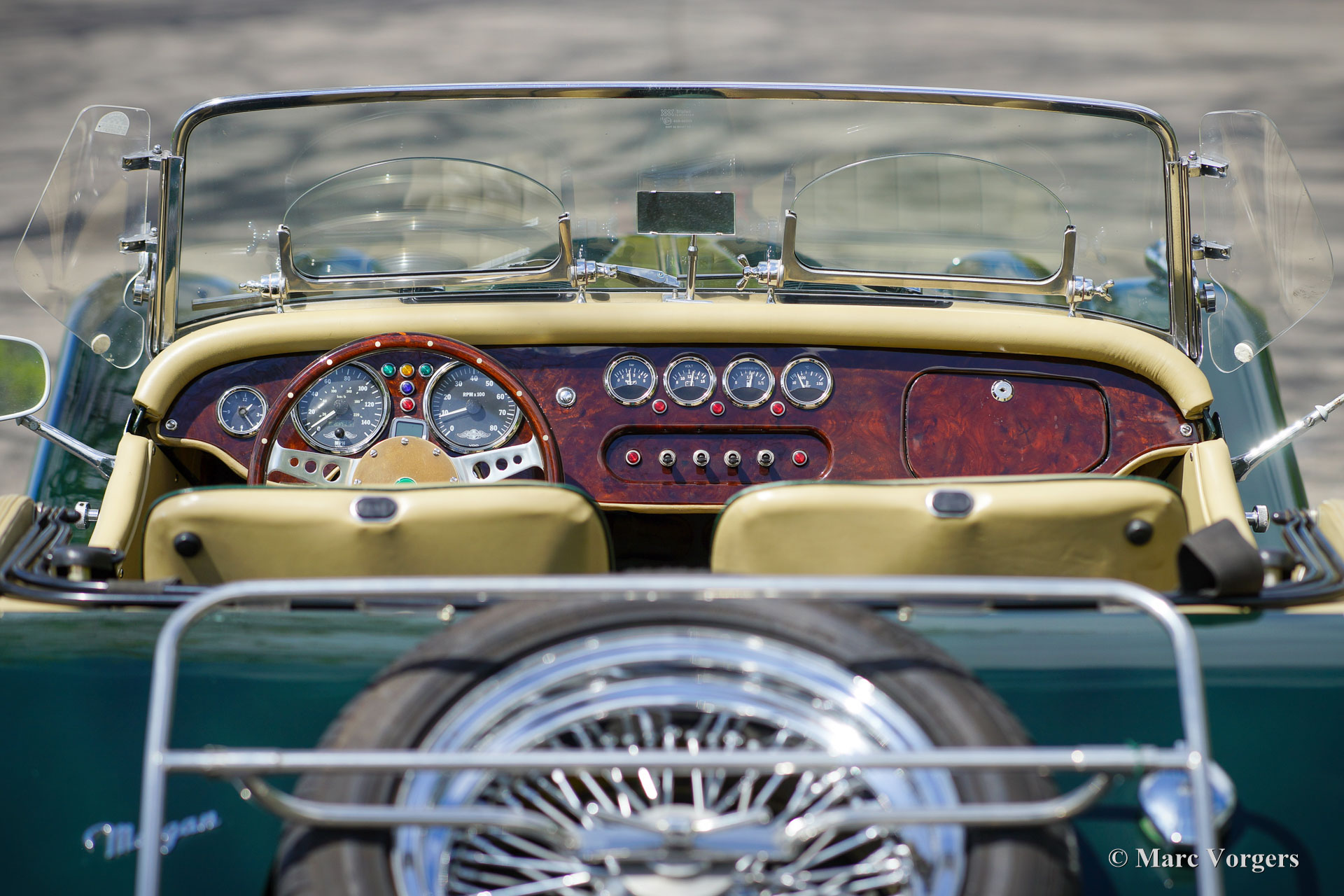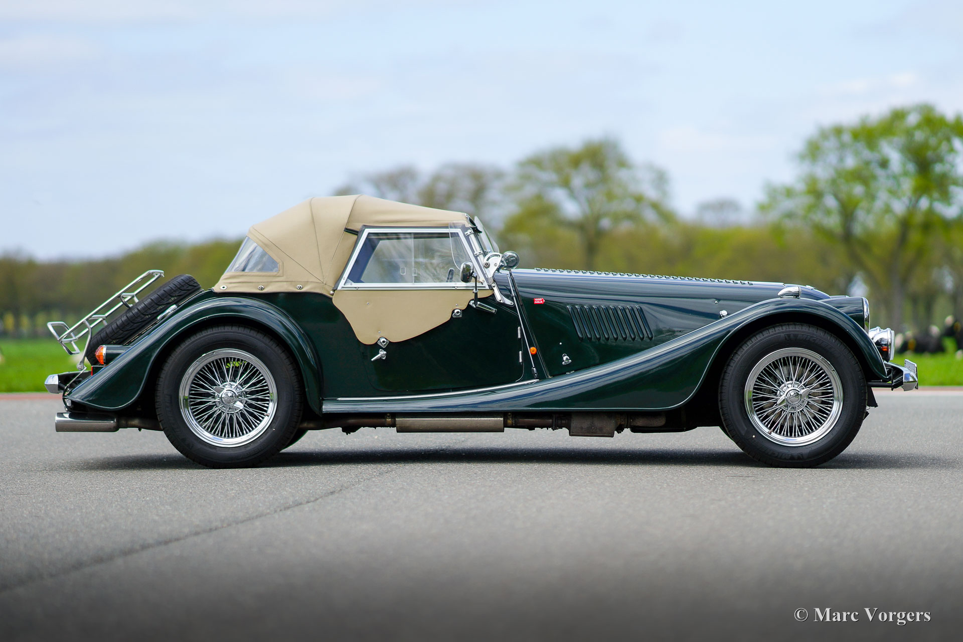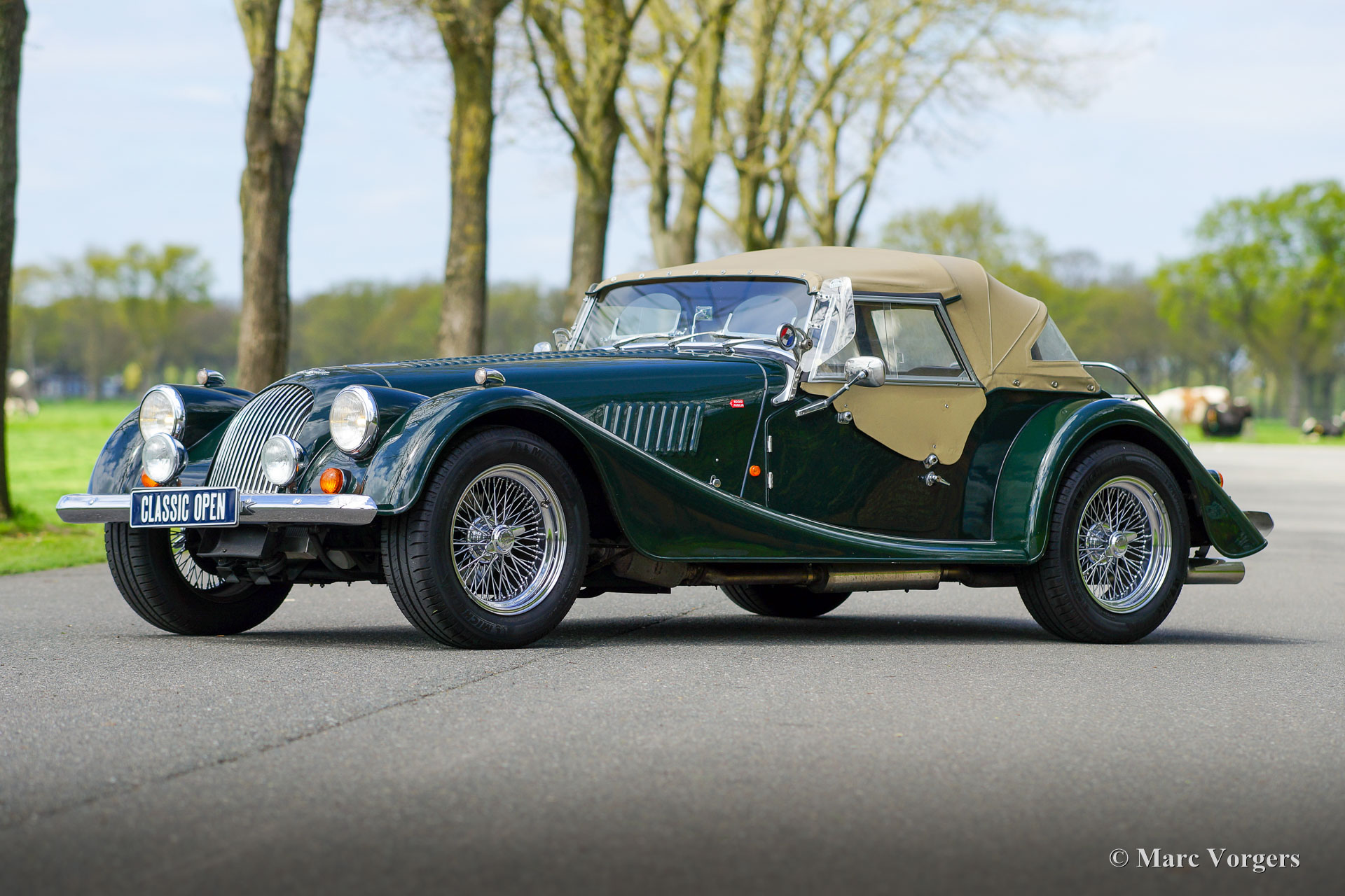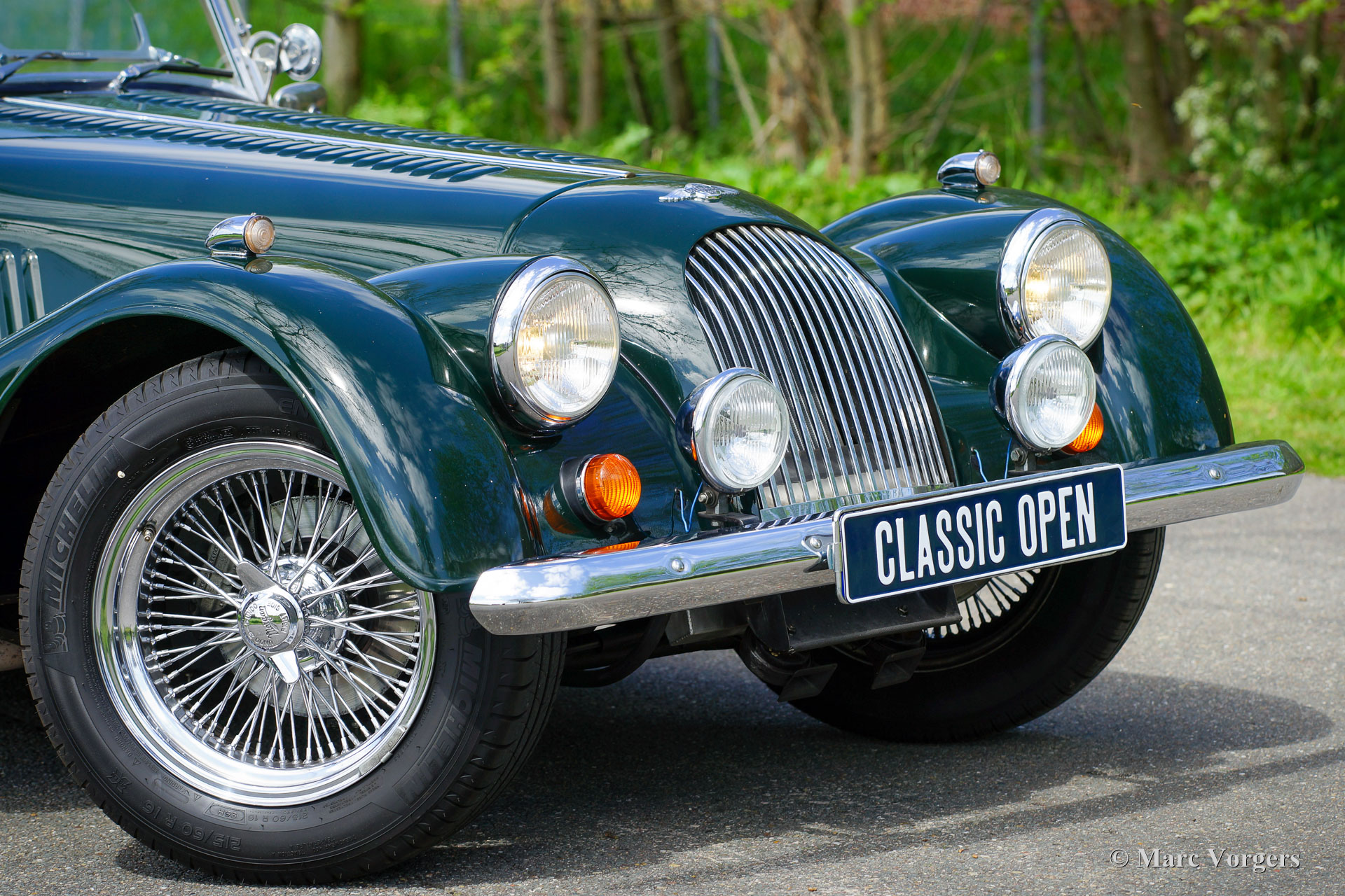 Morgan +8 3,9 Liter, Jahr 1997. Farbe British Racing Green kombiniert mit einer beigen Lederausstattung getrimmt mit dunkelgrünen Paspeln und grünem Teppich. Beiges Verdeck, Seitenfenster und Persenning. Dieser beeindruckende Morgan +8 wurde im Vereinigten Königreich neu verkauft. 2009 wurde das Auto in die Niederlande verkauft, wo es auf Linkslenkung umgebaut wurde. Von neu hat das Auto 27.500 Meilen gefahren. Dieser Morgan befindet sich in einem hervorragenden zustand! Das Auto wurde perfekt gewartet und gepflegt. Es ist eine vollständige Historiendatei vorhanden, die die britischen und niederländischen Jahre abdeckt, dazu gehören (Service-)Rechnungen und MOT/APK (ähnlich TÜV) -Dokumente. Dieser prächtige Morgan +8 ist ab Werk mit fast allen verfügbaren Optionen ausgestattet. Das Auto ist mit dem 190 PS starken 3,9-Liter-Rover-V8-Motor in Kombination mit einem manuell betriebenen 5-Gang-Getriebe ausgestattet. Das Fahrerlebnis ist spektakulär und der Soundtrack der Doppelauspuffanlage macht süchtig! Der Blick über die lange Motorhaube und über das Holzarmaturenbrett ist einzigartig. Der Morgan +8 bietet ein aufregendes Oldtimer-Paket, das kein anderes Auto bietet, Ein wirklich einzigartiges Sportwagenerlebnis!