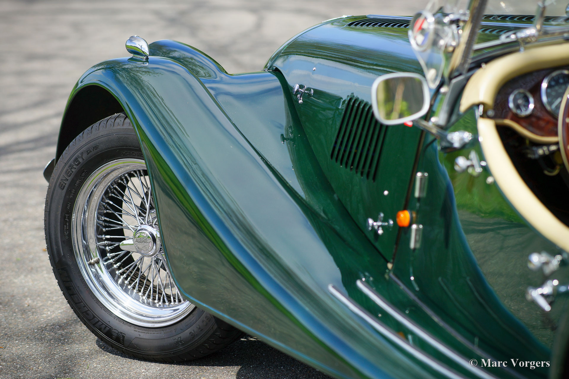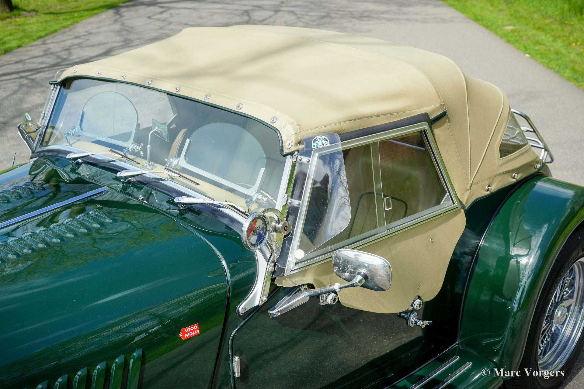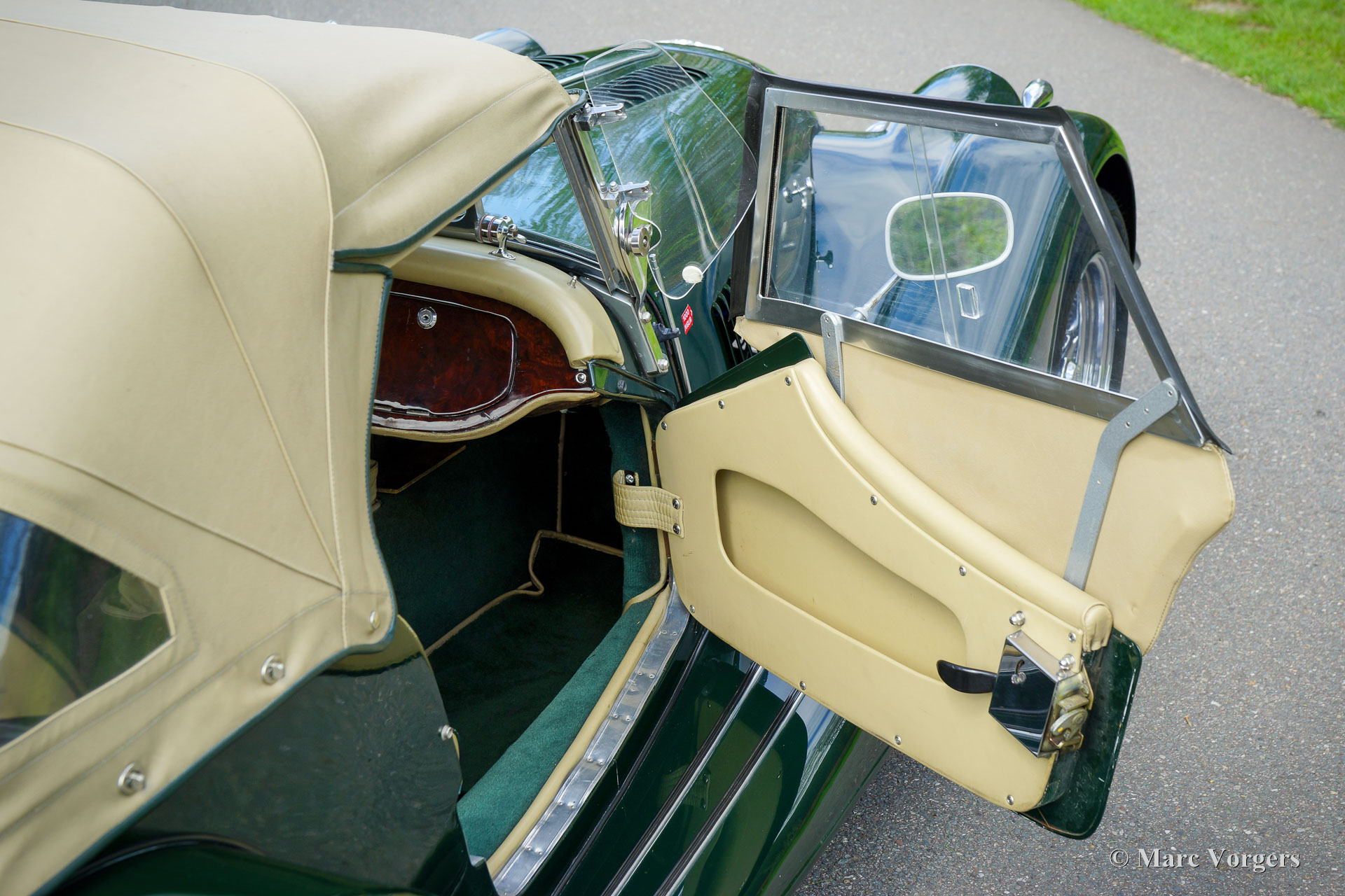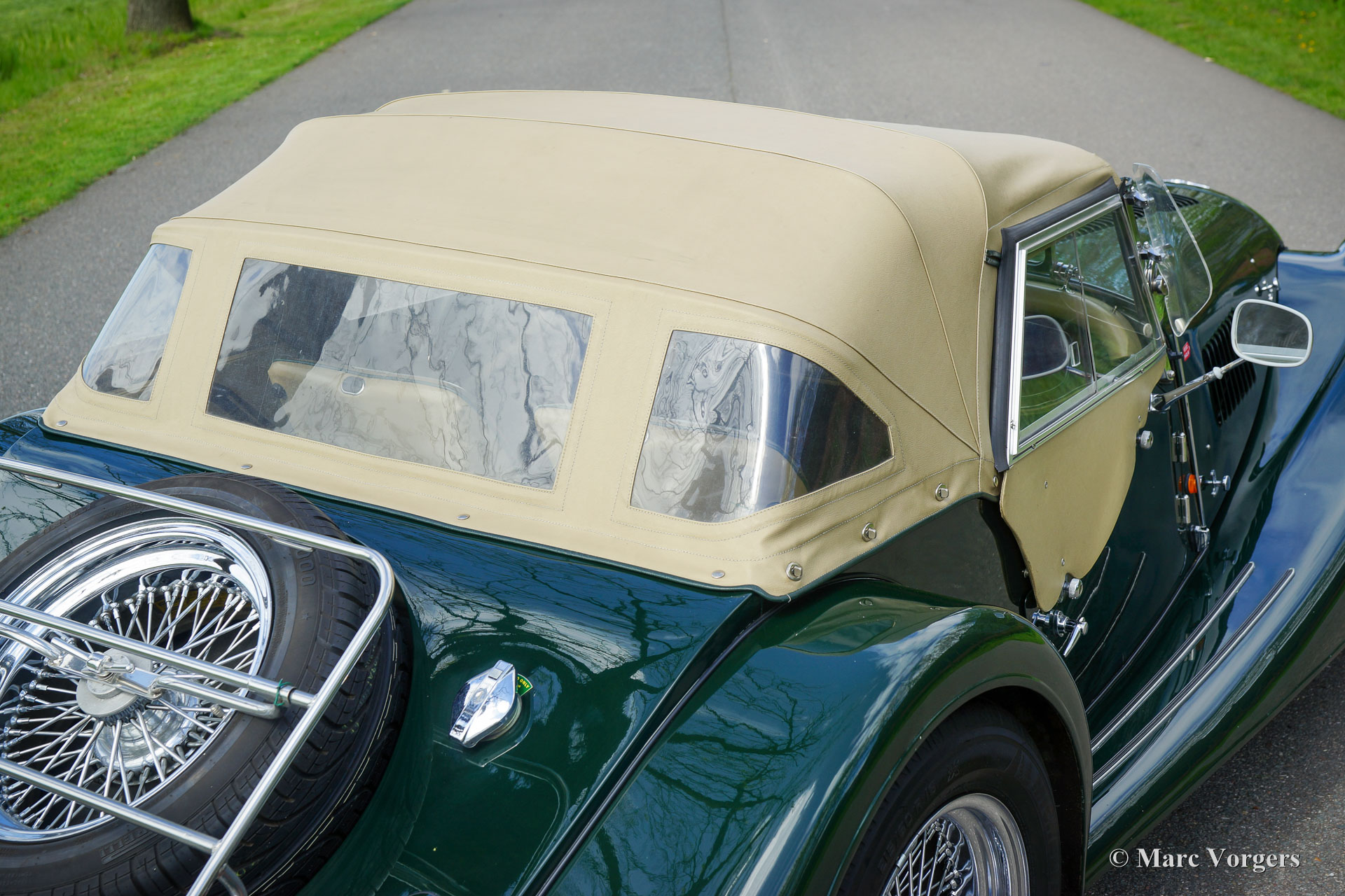 Morgan +8 3,9 Liter, Jahr 1997. Farbe British Racing Green kombiniert mit einer beigen Lederausstattung getrimmt mit dunkelgrünen Paspeln und grünem Teppich. Beiges Verdeck, Seitenfenster und Persenning. Dieser beeindruckende Morgan +8 wurde im Vereinigten Königreich neu verkauft. 2009 wurde das Auto in die Niederlande verkauft, wo es auf Linkslenkung umgebaut wurde. Von neu hat das Auto 27.500 Meilen gefahren. Dieser Morgan befindet sich in einem hervorragenden zustand! Das Auto wurde perfekt gewartet und gepflegt. Es ist eine vollständige Historiendatei vorhanden, die die britischen und niederländischen Jahre abdeckt, dazu gehören (Service-)Rechnungen und MOT/APK (ähnlich TÜV) -Dokumente. Dieser prächtige Morgan +8 ist ab Werk mit fast allen verfügbaren Optionen ausgestattet. Das Auto ist mit dem 190 PS starken 3,9-Liter-Rover-V8-Motor in Kombination mit einem manuell betriebenen 5-Gang-Getriebe ausgestattet. Das Fahrerlebnis ist spektakulär und der Soundtrack der Doppelauspuffanlage macht süchtig! Der Blick über die lange Motorhaube und über das Holzarmaturenbrett ist einzigartig. Der Morgan +8 bietet ein aufregendes Oldtimer-Paket, das kein anderes Auto bietet, Ein wirklich einzigartiges Sportwagenerlebnis!