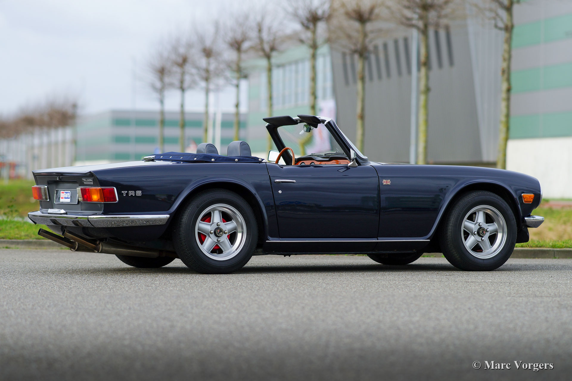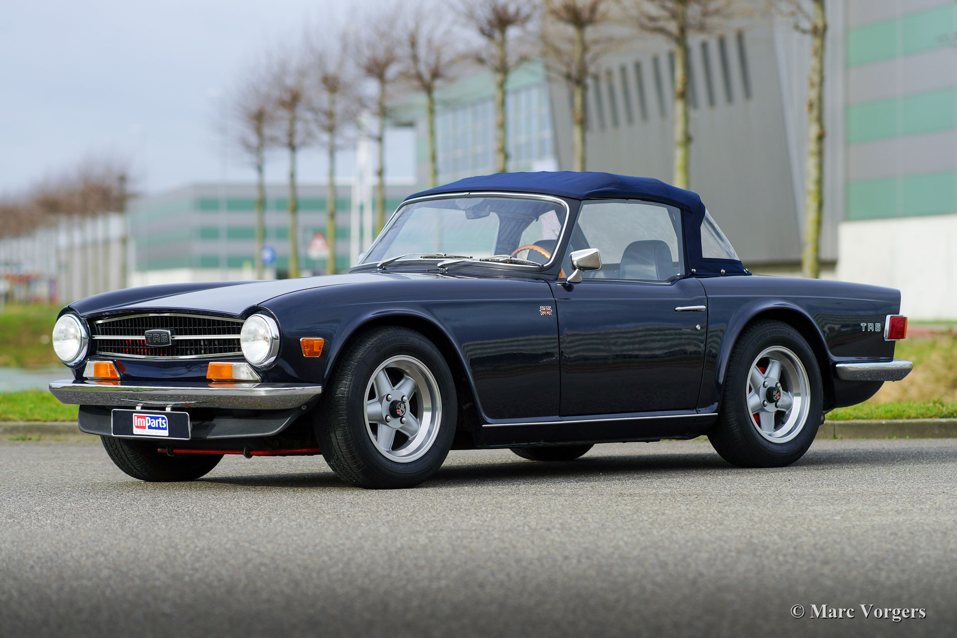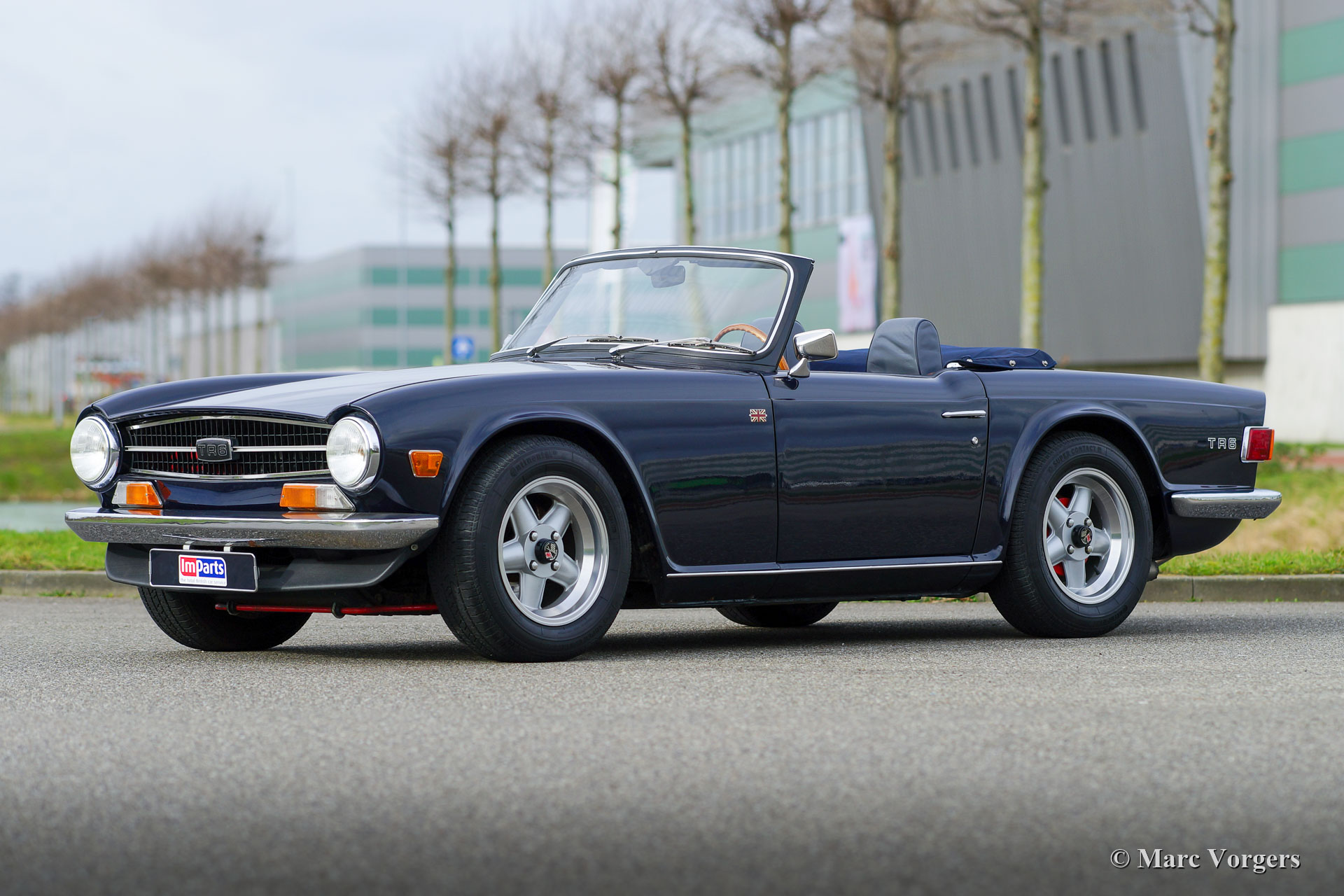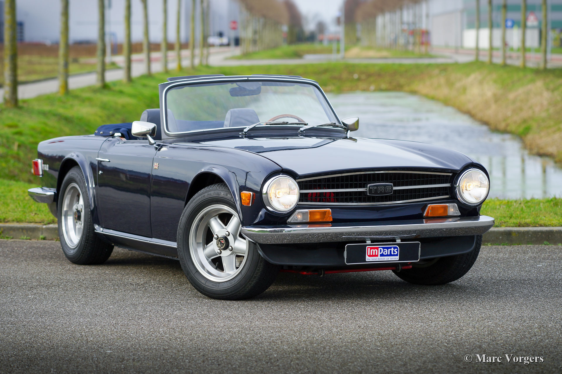 Triumph TR6 PI, Jahr 1972. Farbe dunkelblau kombiniert mit einer grauen Lederausstattung. Blaues Mohair-Verdeck und Verdeck-Abdeckung. Dieser sehr begehrenswerte Triumph TR6 stammt aus der ersten (CP) Serie von TR6-Fahrzeugen mit mechanischer Benzineinspritzung von Lucas. Der 2500 ccm Reihensechszylinder-Motor leistet 150 SAE-PS und der Auspuff Note macht süchtig! Dieser TR6 PI ist mit Overdrive ausgestattet. Das Auto hat einige kleinere Modifizierungen bekommen. Die Fahrhöhe wurde um 15 mm abgesenkt und neu montiert wurden; Ein elektrischer Lüfter, eine elektronische Zündung, ein Auspuff aus rostfreiem Stahl, Revolution-Räder mit 205 / 65-15-Reifen, Lederpolsterung und ein sehr begehrenswertes optionales Sportlenkrad mit Holzfelge. Dieser prächtige TR6 PI ist in einem ausgezeichneten Zustand und das Auto fährt hervorragend! Dieser Triumph TR6 lädt Sie jeden Tag zu einem Schuss Adrenalin und einem breiten Grinsen auf Ihrem Gesicht ein. Achtung, dieser sportliche TR6 PI macht süchtig!