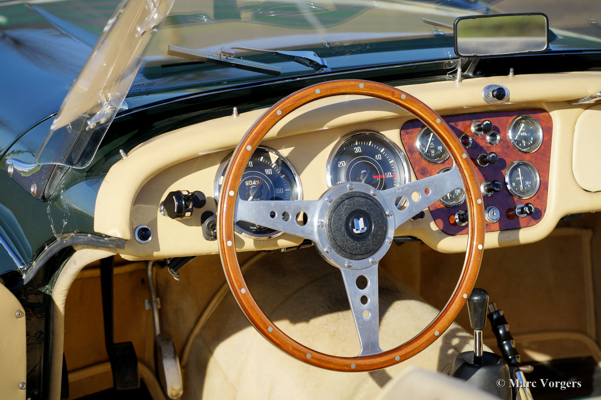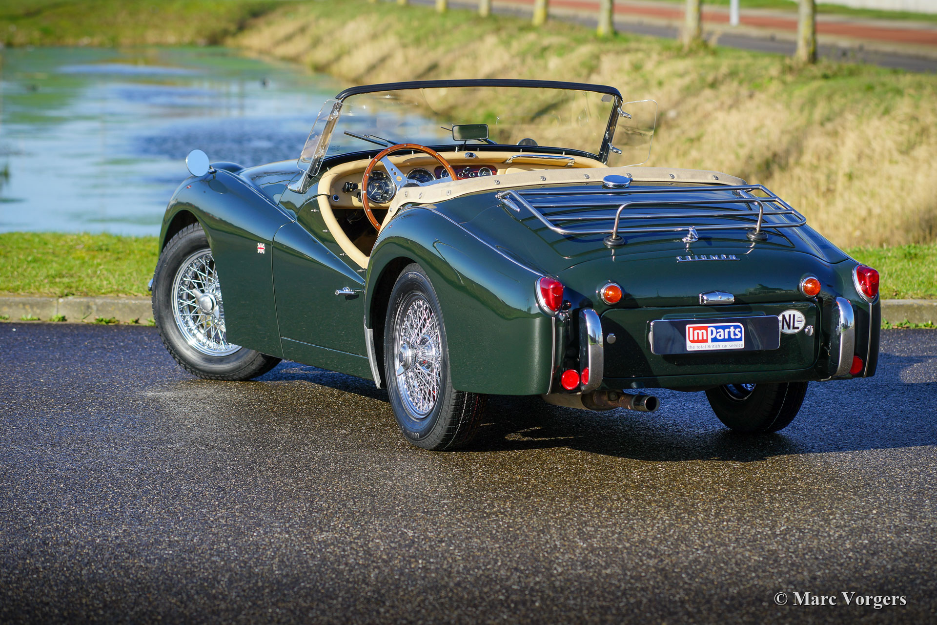 The Triumph TR 3 is a no nonsense sports car; very robust, simple and reliable, a true British sports car all over. The TR 3 was the first production car, off factory, equipped with disc brakes on the front-wheels. The engine was a Standard Vanguard based, cast-iron, long stroke, in-line four cylinder with a displacement of 1991cc. The TR 3 engine was equipped with two carburettors giving a power-output of almost 100 bhp.