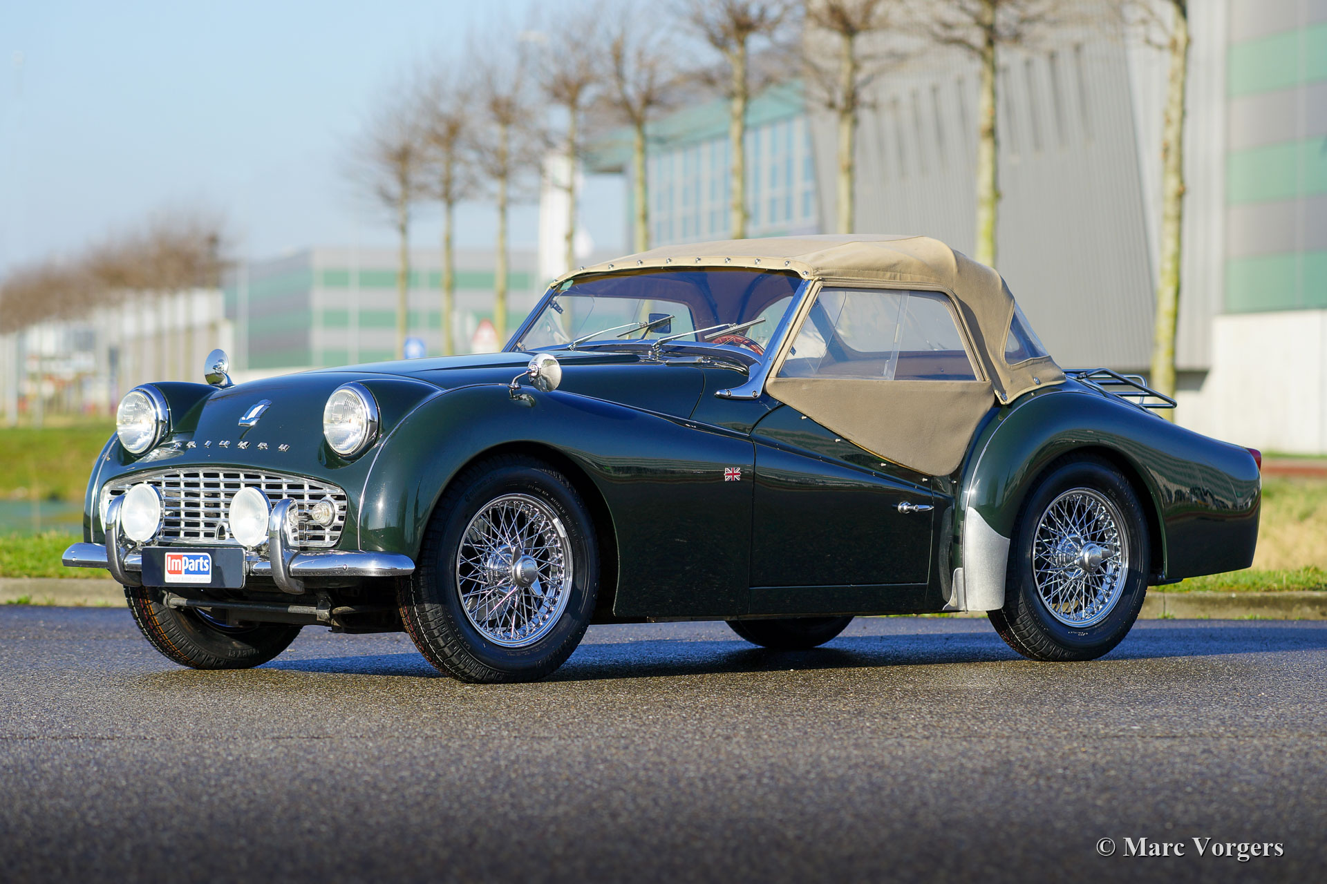In the year 1957 the Triumph TR3a was presented. Again Triumph changed the grille (wider, covering the entire width of the car). Also the headlamps were placed a little backwards and door handles were fitted. Very short after the introduction of the TR 3a the Triumph TR 3b was introduced, the only change was the larger cylinder capacity of the engine.