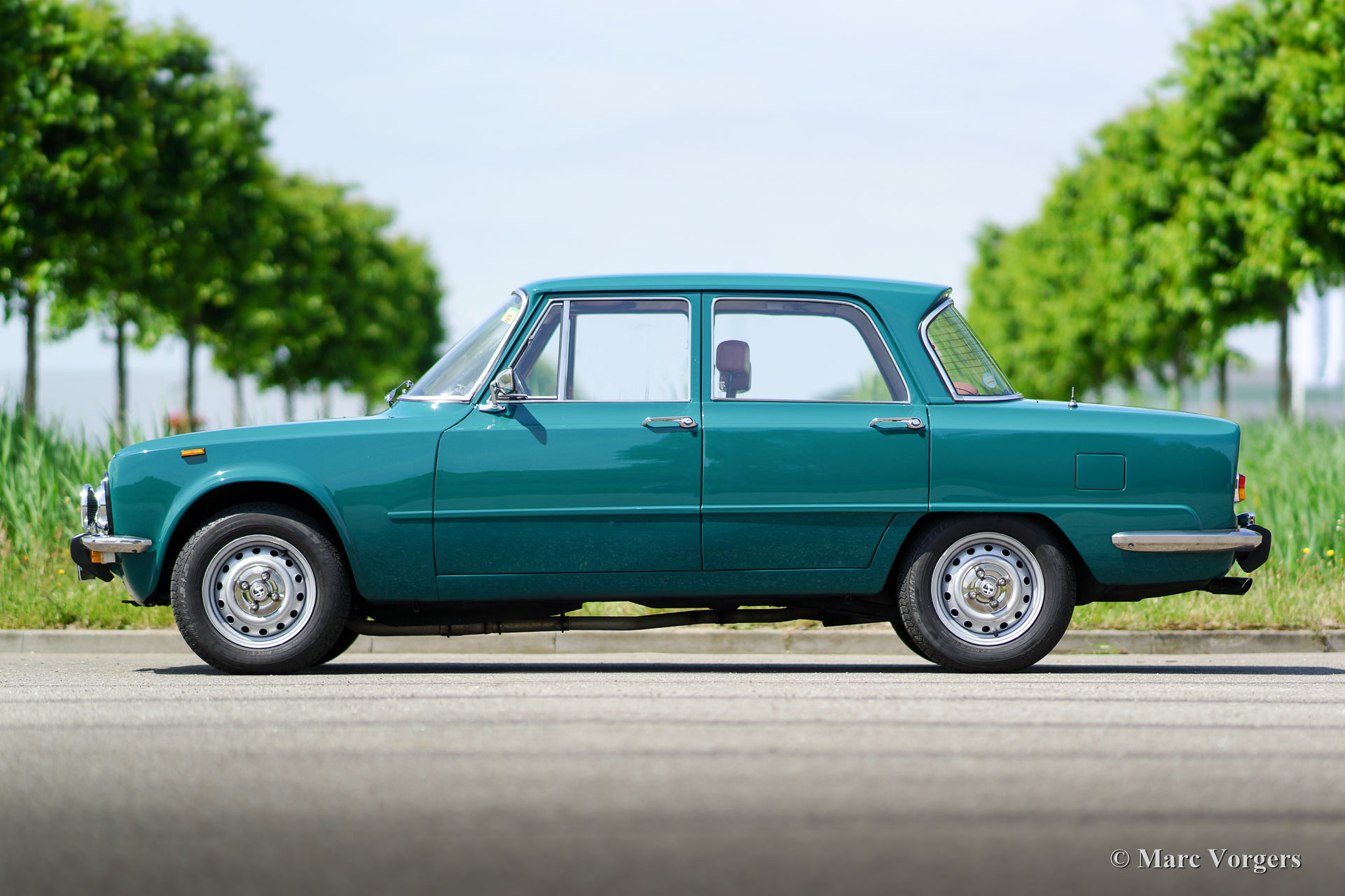 The Alfa Romeo Giulia shows a very characteristic body design which was extremely modern in the early sixties. The shape of the car was very aerodynamic and very functional by design. This compact saloon offered more space in the interior and trunk as one would expect at first glance.