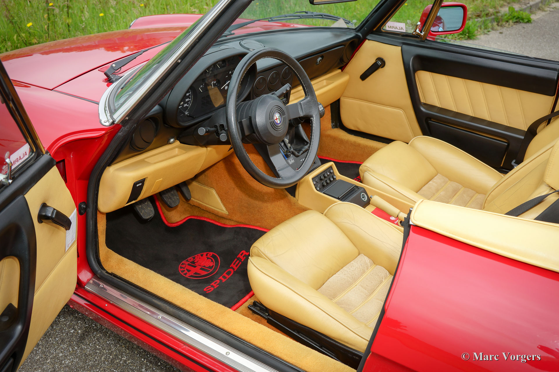 Alfa Romeo Spider 2.0, Jahr 1991. Farbe Alfa Rot (Code 130) mit einer beigen Lederausstattung und beige Teppich. Schwarze Fußmatten mit einem roten Alfa Romeo Logo. Schwarze Haube und beige Verdeck Abdeckung. Diese fantastische Alfa Romeo Spider ist ein "Typ 4" -Modell und das letzte Spider-type das basiert ist auf der klassische Alfa Romeo Giulia 105-Serie. Der erfolgreiche klassische Spider Serie war seit etwa 30 Jahren in Produktion! Dieses sehr schöne Exemplar ist in einem hervorragenden Originalzustand und das Auto fuhr nur 46.500 km von neu. Der Alfa wurde in den Niederlanden neu verkauft und das Auto kannte nur zwei Eigentümer. Das Auto wurde schön gewartet und gepflegt und alle ursprünglichen Bord-Bücher sind vorhanden. Vor kurzem wurde ein neuer Mohair Soft-top montiert. Das Auto zeigt alle ursprünglichen Details und das Auto ist ausgestattet mit: Servolenkung, Bremskraftverstärker, Kraftstoffeinspritzung, elektronische Zündung, elektrisch betätigte Fenster, original HARDTOP mit beheizter Fenster, und ein Alarmsystem mit Zündschloss. Dies ist ein Prachtexemplar!