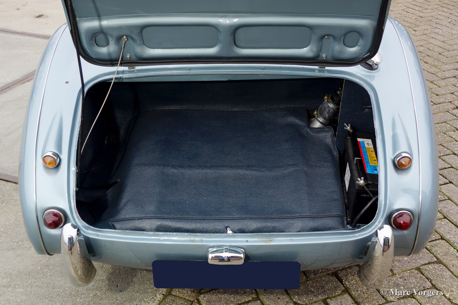 The former Healey models were more Spartan and featured fully detachable soft tops with separate side screens which could be stowed away in the booth.