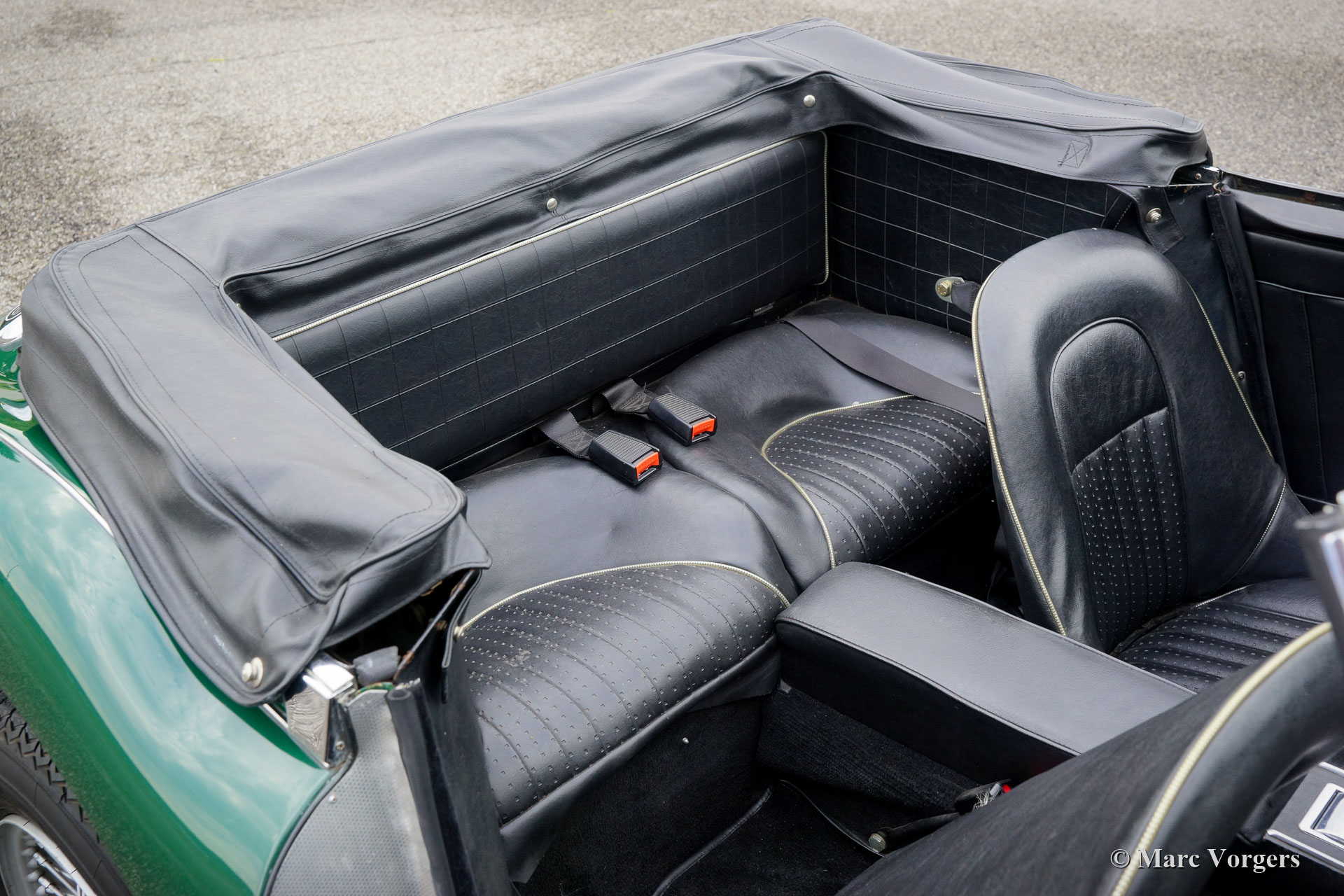 The former Healey models were more Spartan and featured fully detachable soft tops with separate side screens which could be stowed away in the booth.