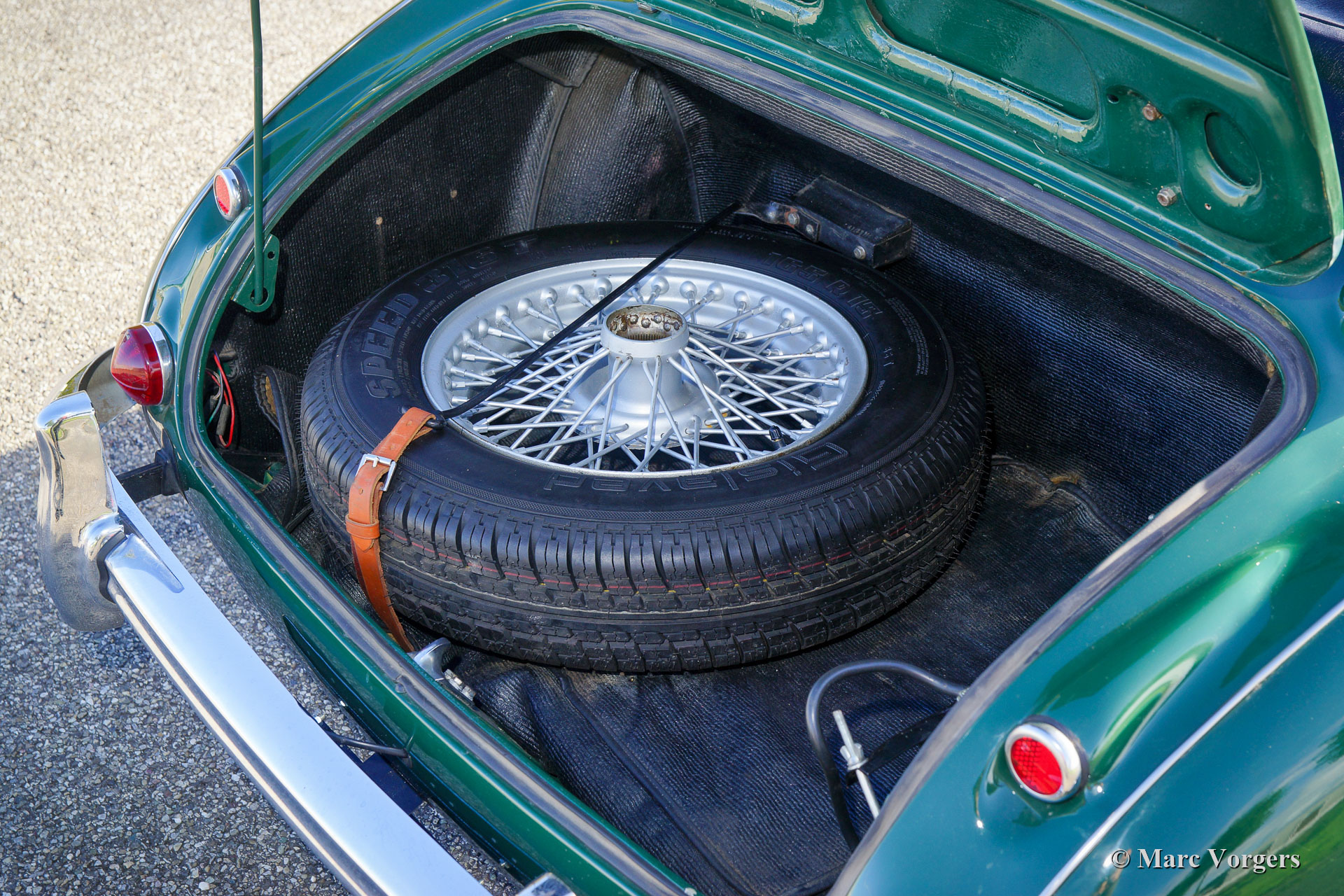 The former Healey models were more Spartan and featured fully detachable soft tops with separate side screens which could be stowed away in the booth.