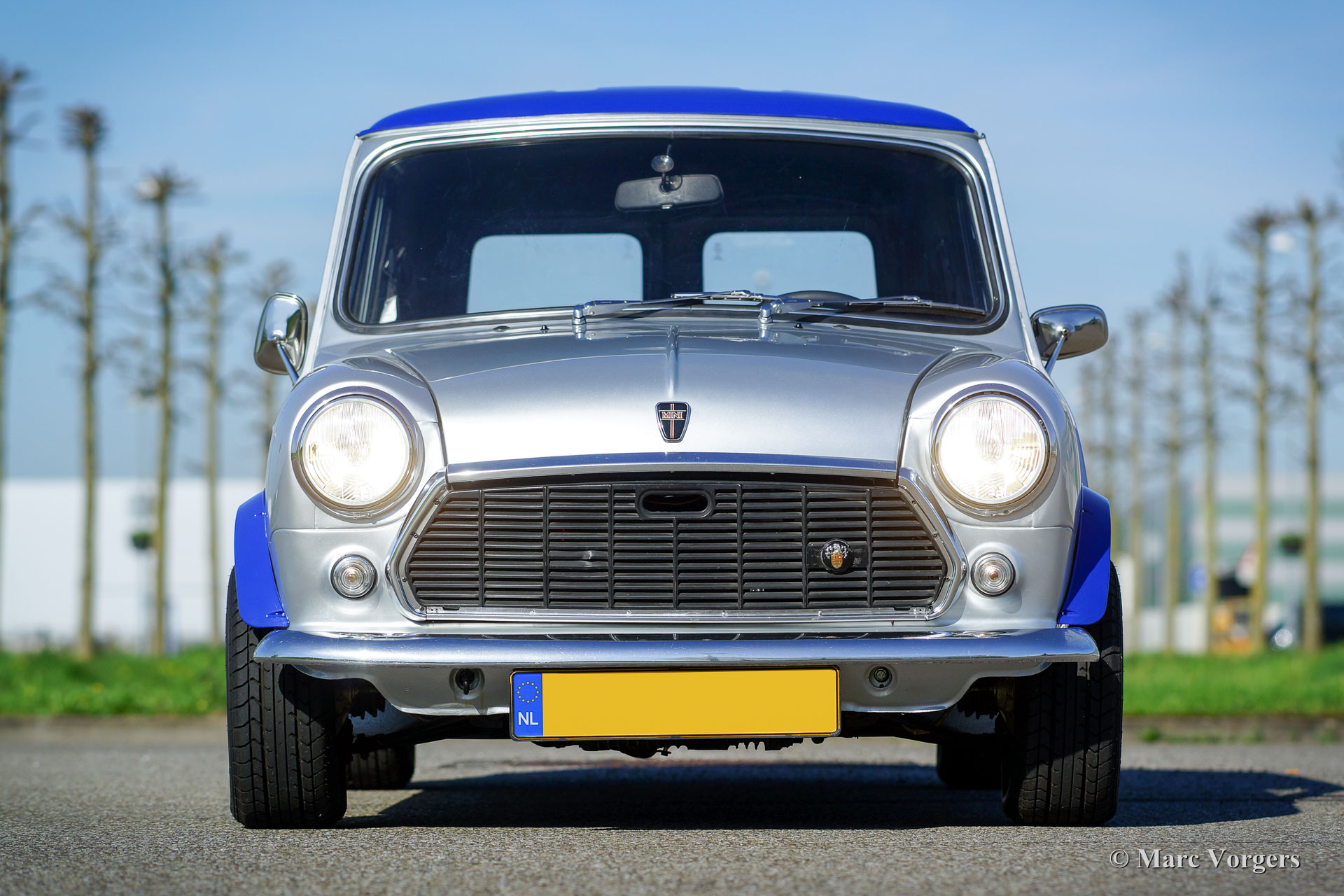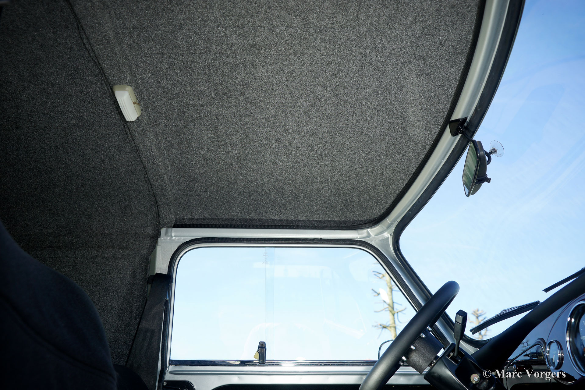 Austin Mini Van, Jahr 1981. Farbe silber metallic mit einem blauen Dach und blaue Flügelleisten. Schwarzer Stoff Innenraum und schwarzer Teppich. Alle Körper-Metall-Paneele im Innenraum sind verkleidet mit dunkelgrauem Schallschutzmaterial, das aussieht wie ein schöner gewebter Teppich. Dieser entzückende Austin Mini Van ist in einem hervorragenden Zustand und das Auto macht viel Spaß zu fahren. Der 1300-cm³-Motor klingt und läuft sehr sportlich und der Maschine wurde modifiziert, um mit bleifreiem Benzin zu fahren. Dieser Mini Van verfügt immer noch über die alten Türen mit Schiebefenstern und Türscharnieren an der Außenseite. Das Auto ist ausgestattet mit einem luxuriösen Holz-Armaturenbrett, mit den Anzeigen in der Mitte, einem Sportlenkrad mit schwarzem Lederrand und Minilite-Stil Leichtmetallräder. Dies ist ein schwer zu finden Austin Mini Van in einem Super-Zustand und mit einem extravertierten Charakter!