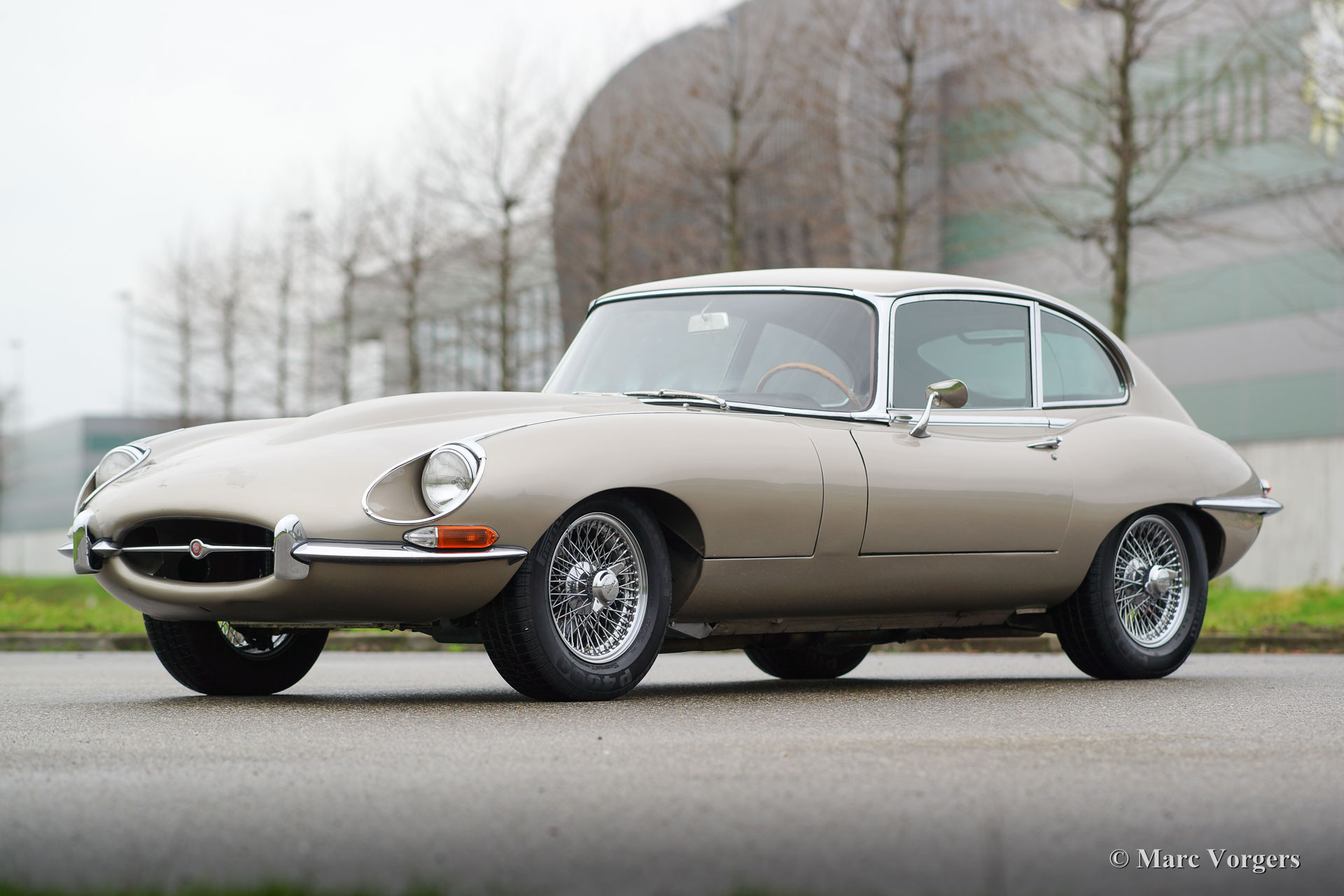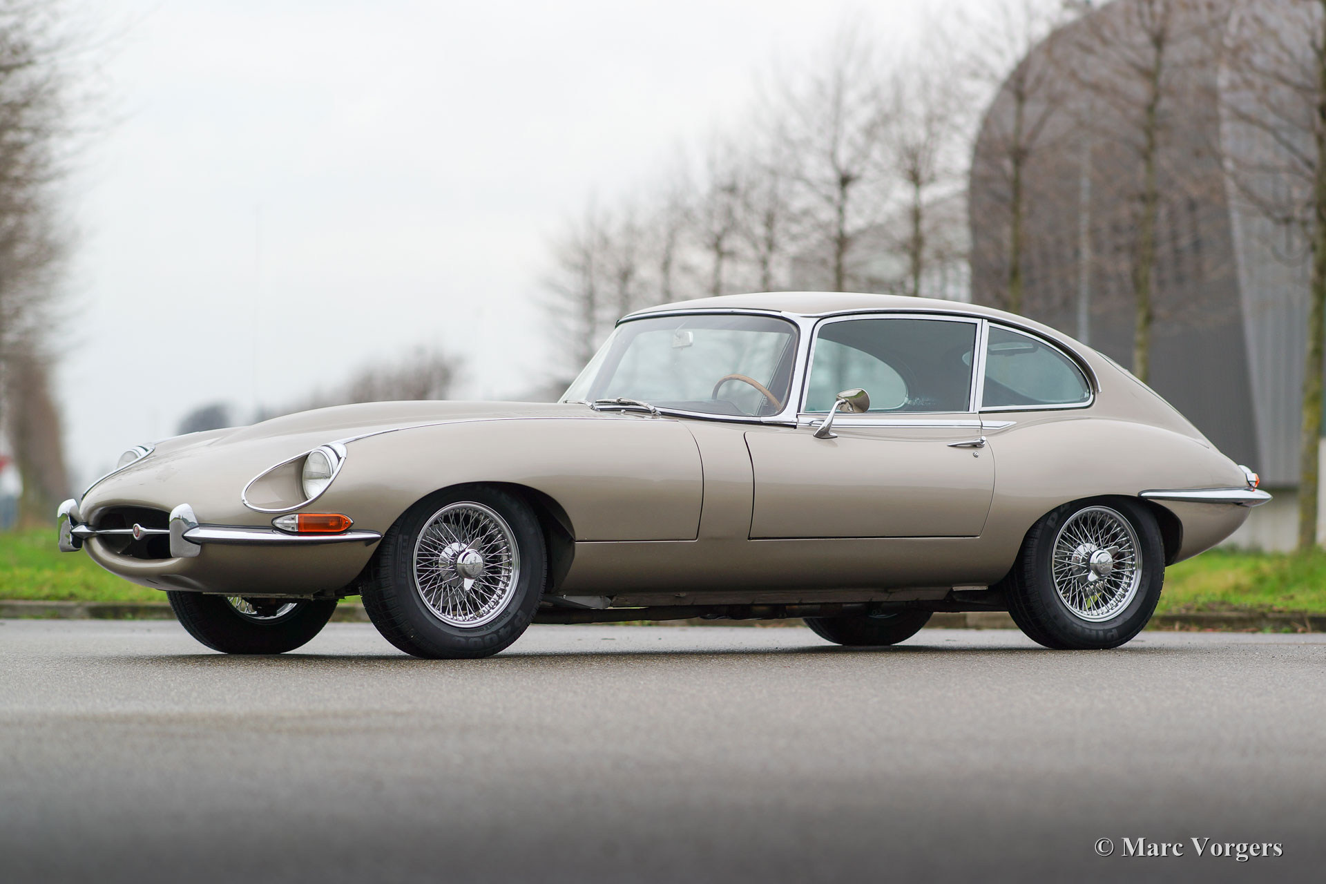 Jaguar E-Type 4.2 Liter 2 + 2 FHC Serie 1½, Jahr 1967. Fahrgestellnummer 1E508XX, Motornummer 7E5310X-X; ‘Matching numbers‘. Farbe ‘Golden Sand‘ Metallic mit einer dunkelroten Lederausstattung. Dieses schöne Jaguar E-type FHC (Fixed Head Coupé) ist eine eher seltene Serie 1½ Modell. Dieses Modell wurde ab Ende 1967 bis Ende 1968 gebaut. Durch das Serie 1½ Modell machte der Jaguar E-type den Übergang von der Reihe 1 bis Reihe 2. Dieses Modell ist äußerlich gleich an der Serie 1 mit Ausnahme der offenen Scheinwerfer, die sich dieses seltene Modell deutlich unterscheiden. Dieser Jaguar E-Type ist in sehr gutem Zustand mit ein paar Gebrauchsspuren wie einige winzige Beulen. Der Jaguar ist sehr gut gepflegt. Vor kurzem wurde der Zylinderkopf überholt und wurde das Auto mit einem Aluminium-Kühler ausgestattet. Das Auto verfügt über einen manuelles Schaltgetriebe, Chrom Speichen Räder, Pirelli 205 / 70-15 Reifen, ein‚‘high torque‘ Anlasser, eine Edelstahl-Abgasanlage und ein klassisches Radio. Dieser Jaguar E-type Fährt absolut perfekt!