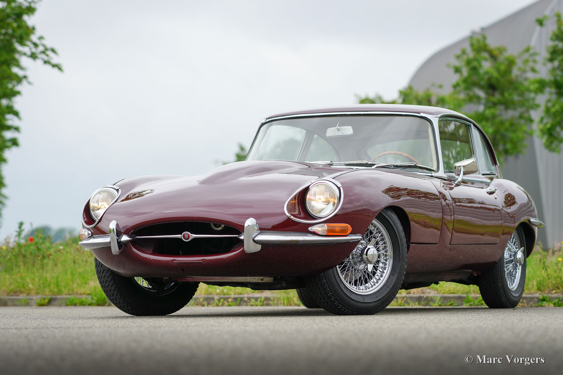 Jaguar E-Type 4.2 Liter FHC 2 + 2-Serie 1½, Jahr 1967. Farbe Maroon rot mit einer beigen Lederausstattung und beige Teppich. Dieser fabelhafte Jaguar E-Type wurde im Jahr 1995, aus Kalifornien (USA) in die Niederlande importiert. Anschließend wurde das Auto umfangreich und ‘body-off‘ wiederhergestellt vom nackten Metall aus. Die Restaurierung dauerte fünf Jahre und natürlich wurden auch der Motor, das Getriebe, die Bremsen, das Fahrgestell usw. vollständig überarbeitet. Der Innenraum wurde brandneue Lederpolsterung und Teppich gegeben. Dieser schöne Jaguar E-Type ist in einem sehr guten bis hervorragenden Zustand und das Auto fährt perfekt. Das Auto verfügt über der leistungsstarken 4,2-Liter-Motor ausgestattet mit drei SU-Vergasern, ein automatisches Getriebe (mit schnell ansprechenden Kick-down) und Chrom-Speichen Rädern. Die Serie 1½ E-Typ ist ein seltenes Modell. Das Modell sieht genauso aus wie die Serie 1 mit Ausnahme der offenen Stirnlampen. Unter der Haut enthält das Auto schon die Serie 2 Verbesserungen. Das Beste aus beiden Welten!