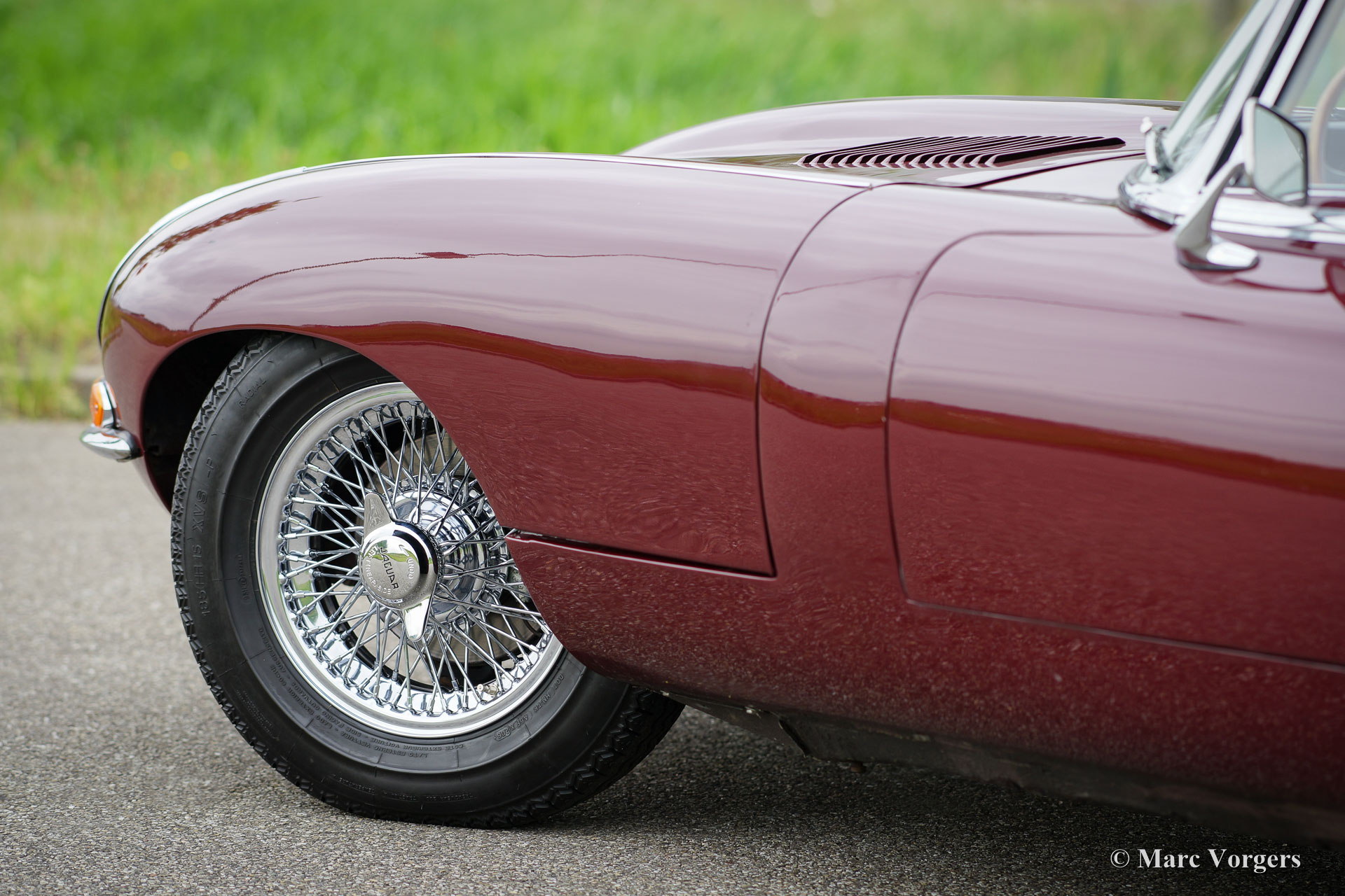 The design of the E-Type series as it was introduced in 1961 is of almost unearthly beauty. Look at all the refined details: the bonnet, the headlights, the back lights, the recess for the wheel housing and the back side, and you will realize that you are looking at absolute, timeless beauty in automobile design.
