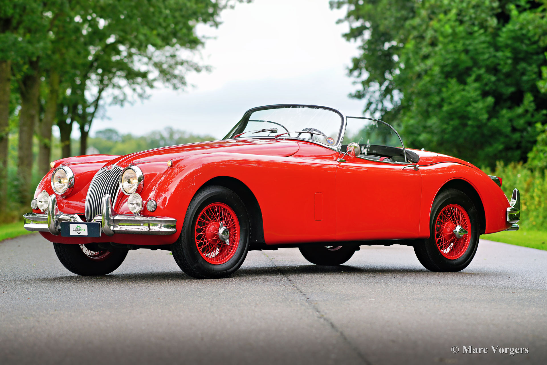 Jaguar XK 150 3,4 Liter OTS (Roadster), Jahr 1959. Farbe rot (Carmen red) kombiniert mit einer schwarzen Lederausstattung mit schwarzem Teppich. Schwarzes Verdeck und Persenning. Dieser prächtige Jaguar XK 150 OTS (Open Two Seater, in den USA auch Roadster genannt) wurde in den Vereinigten Staaten neu verkauft. Das Auto wurde 1986 in die Niederlande importiert und 2001 vom letzten Besitzer gekauft. Die (Wartungs-)Historie ist ab 2009 vollständig dokumentiert. Ein Heritage-Zertifikat ist vorhanden und die Informationen besagen, dass dies ein Jaguar mit „Matching Numbers“ ist! Das Auto ist in einem sehr guten Zustand und alles ist auf dem neuesten Stand. Die Karosserie zeigt eine perfekte Passung der Paneele, eine schöne Lackierung und wunderbare Chromteile. Der Sechszylinder-XK-Motor wurde 2014 von einem Spezialisten in den Niederlanden Komplett überholt. 2016 wurde eine elektrische Servolenkung von EZ eingebaut. Die 215 PS werden über ein Viergang-Schaltgetriebe mit Overdrive auf die Hinterräder übertragen. Dieser XK 150 Roadster fährt perfekt, dies ist eines der allerbesten Exemplare, die wir je gefahren sind! Das Auto zeigt alle Originaldetails und verfügt über wünschenswerte Extras wie das mittlere Armaturenbrett in Nuss Holz, 16-Zoll-Speichenräder mit Vredestein Sprint Classic-Reifen, ein Paar Lucas SFT576-Nebel-/Kurvenscheinwerfer an der Vorderseite, Servobremsen, elektronische Zündung, einen elektrischen Kühlerlüfter, rote Sicherheitsgurte und ein „Retro“-Radio mit Navigationssystem. Dies ist ein sehr begehrter Jaguar XK 150 OTS (Roadster) in einem wunderbaren Zustand, ein fantastisches klassisches Fahrerauto, das einem stolzen neuen Besitzer jede Menge Fahrspaß bringen wird. Der Jaguar XK 150 3,4 Liter OTS ist ein seltenes Auto, es wurden nur 1339 Exemplare gebaut.
