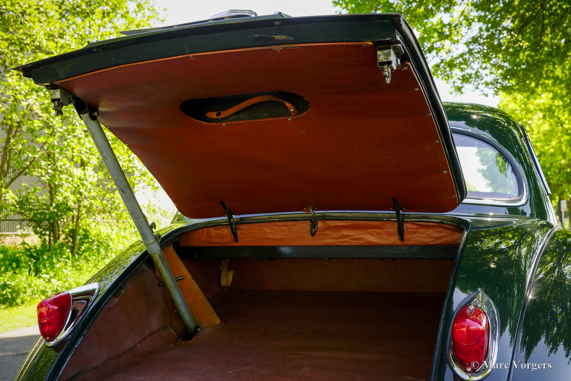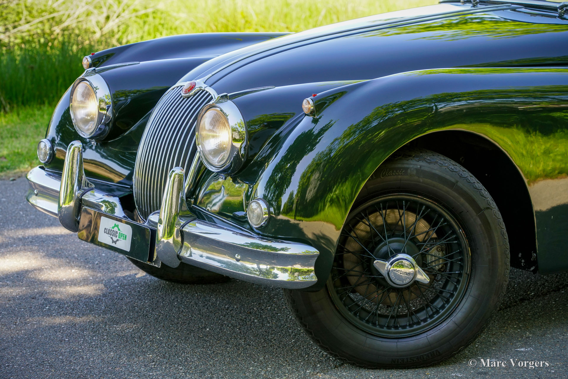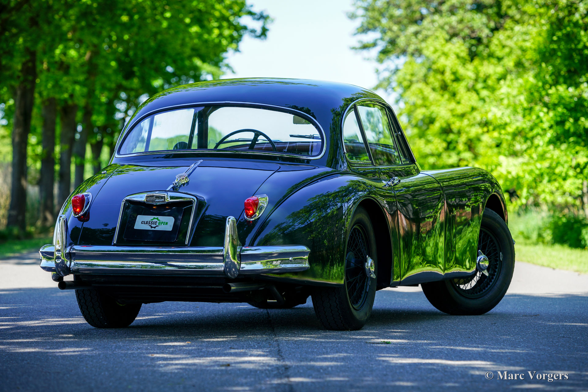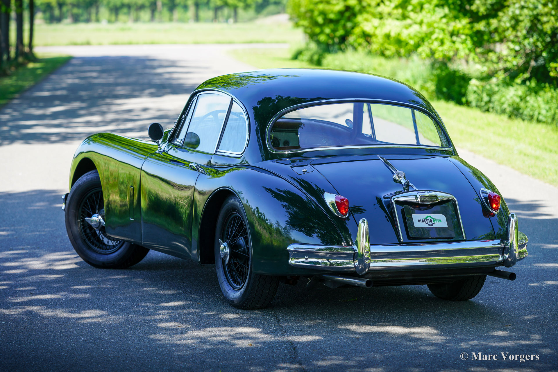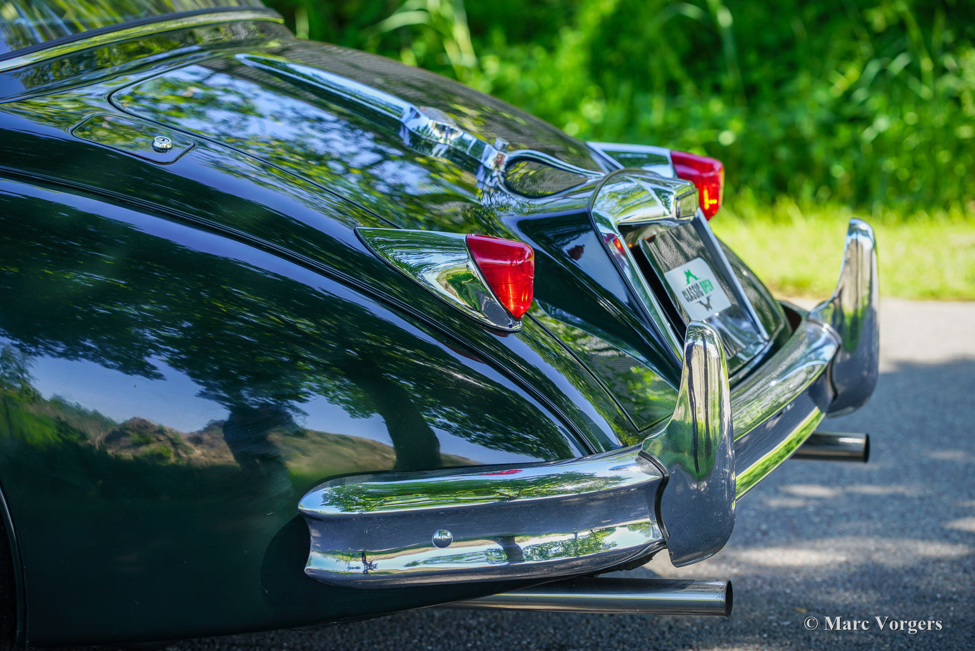 Jaguar XK150 3,4 Liter FHC, Jahr 1958. Der Motor ist original ab Werk. Auch die Außen- und Innenfarben sind original ab Werk. „Matching numbers & colours“, ein Jaguar Heritage-Zertifikat bestätigt dies. Das Auto sieht in der originalen Farbe Dark British Racing Green in Kombination mit einer braunen Lederausstattung großartig aus. Dieses fantastische Jaguar XK 150 3,4 Liter Fixed Head Coupé (FHC) wurde neu in New York, USA, verkauft. Im Jahr 2018 wurde das Auto aus Florida, USA, in die Niederlande importiert. Dies ist ein besonderes Auto, ein nie restauriertes Exemplar in gutem bis sehr gutem Originalzustand! Der gesamte Lack innerhalb der Türen, der Motorhaube und dem Kofferraum ist noch original, irgendwann wurde das Äußere in der Originalfarbe neu lackiert. Die 67 Jahre alte Innenausstattung ist völlig original und weist Gebrauchs- und Altersspuren auf. Mechanisch wurde das Auto immer perfekt gewartet und bei Bedarf repariert. Der Tacho zeigt 72.500 Meilen an. Motor, Viergang-Moss-Getriebe, Overdrive, Antrieb, Fahrwerk und Bremsen funktionieren einwandfrei. Der Lack wurde vor einigen Jahren tief poliert. Die Mechanik wurde umfassend gewartet. Der Jaguar XK 150 ist ein reinrassiger klassischer Supersportwagen. Der Reihensechszylindermotor, der auch in den legendären Jaguar C- und D-Type Le Mans-Rennwagen zum Einsatz kam, lieferte im XK 150 beeindruckende 210 PS und 290 Nm Drehmoment. Wie die Rennwagen war auch der XK 150 mit Dunlop-Scheibenbremsen an allen vier Rädern ausgestattet. Dieses prächtige Original ist ein seltener Fund, da die meisten Fahrzeuge aus den 1950er-Jahren nicht mehr existieren oder in der Vergangenheit vollständig restauriert wurden. Unter dem Motto „Original ist nur einmal“ bieten wir diesen prächtigen und einzigartigen XK 150 FHC einem Jaguar-Enthusiasten/Sammler an, der Wert auf Originalität legt.
