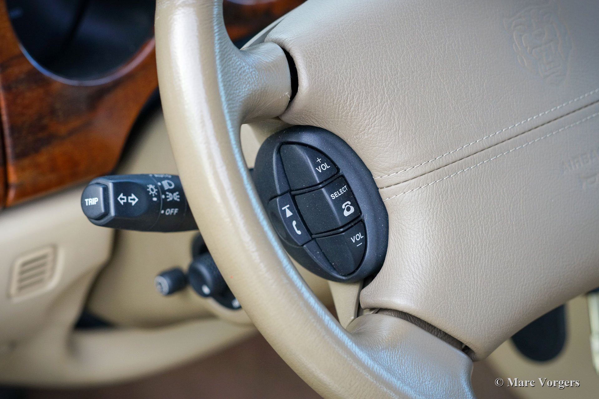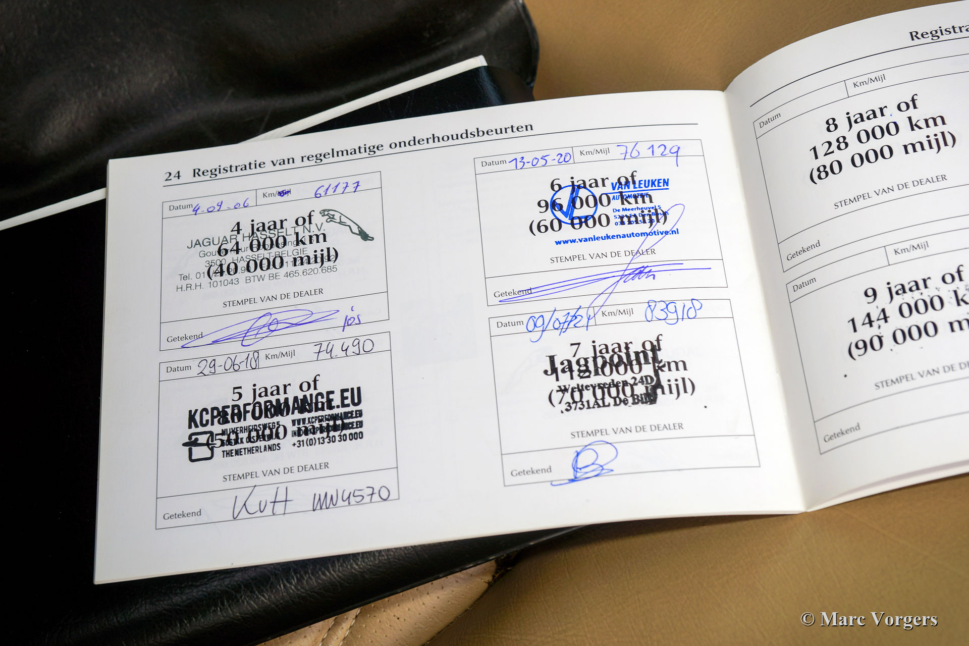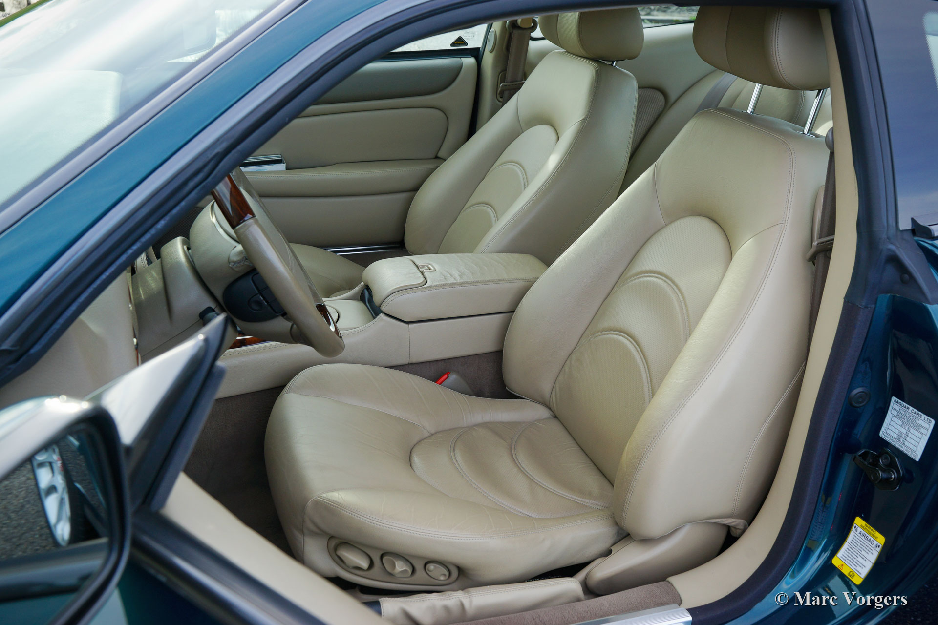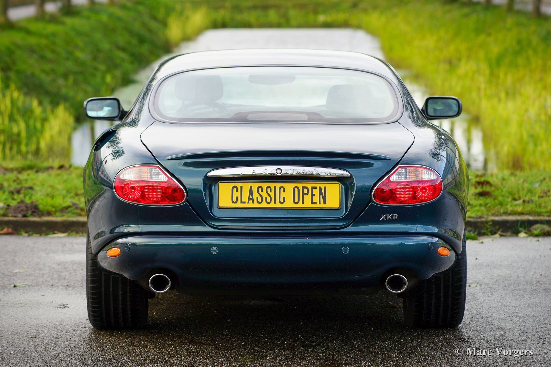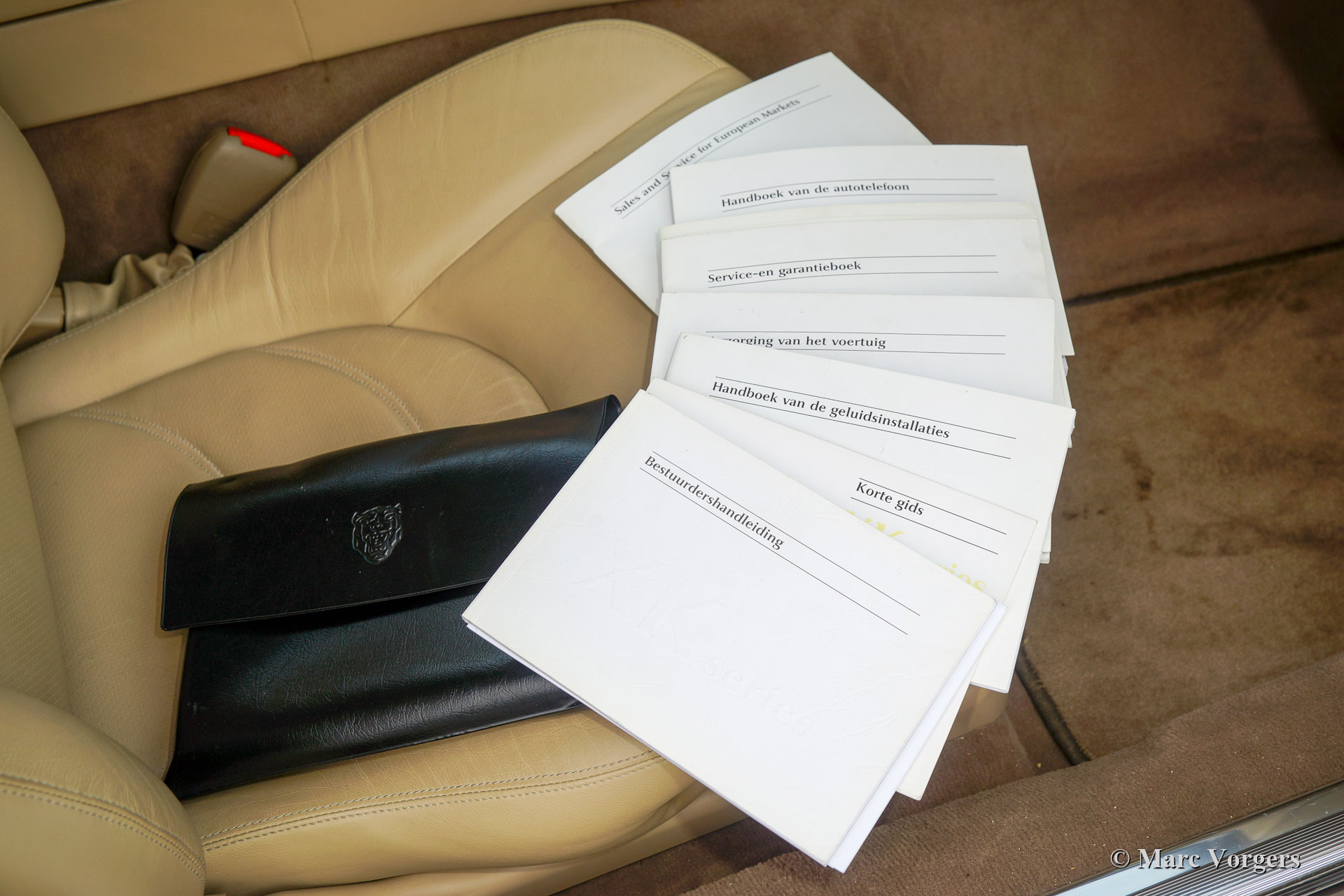 Jaguar XKR, Jahr 2001. Farbe Emerald Green (Metallic) kombiniert mit einer beigen Lederausstattung. Dieser wunderschöne Jaguar XKR ist in einem ausgezeichneten Originalzustand und das Auto hat von neuem nur 85.000 Kilometer gefahren! Der Jaguar XKR wurde 1998 auf dem Genfer Autosalon präsentiert. Mit dem XKR kehrte Jaguar in die Liga der schnellsten Sportwagen der Welt zurück. Die Kompressorversion des XK8 war nur an den Motorhaubenlamellen, einem winzigen Spoiler auf dem Kofferraumdeckel, speziellen Leichtmetallrädern (‘Double Five’ 18 Zoll) und dem Wort „supercharged“ auf dem Jaguar-Emblem zu erkennen. Der 4-Liter-V8-Kompressormotor liefert eine beeindruckende Leistung von 370 PS und ein Drehmoment von 525 Nm. Dieses Beispiel mit geringer Laufleistung zeigt nur minimale Spuren des vorherigen Gebrauchs und das Auto wird komplett mit allen originalen (niederländischen) Werksbroschüren geliefert. Ein begehrtes Sammlerauto und ein fantastisches Fahrerauto!