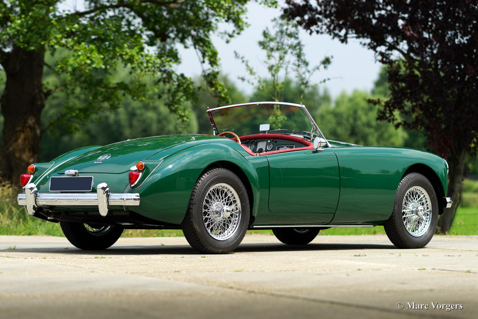 The year 1955 saw the introduction of the MGA. With this design the MG broke new grounds. After its predecessors MG TD and MG TF, which were largely based on the pre-war MG TB, it was a roadster with a very modern sporty design. Like its predecessors, the MGA was a great success and, like before, the greater part was sold in America. Until 1959, the MGA was equipped with a 1459 cc four-cylinder engine. From that year, the car was fitted with a 1588 cc four-cylinder. A 1622 cc four-cylinder engine replaced the 1588 cc. engine in 1961. The early MGA versions had very good drum brakes until 1959, but after that year, the MG A was equipped with disc brakes on the front wheels. The year 1962 saw the production of the MGA, the A 1600 Mk II. The MGB replaced this very popular British sports car, and was to develop the success of the MG A even further.