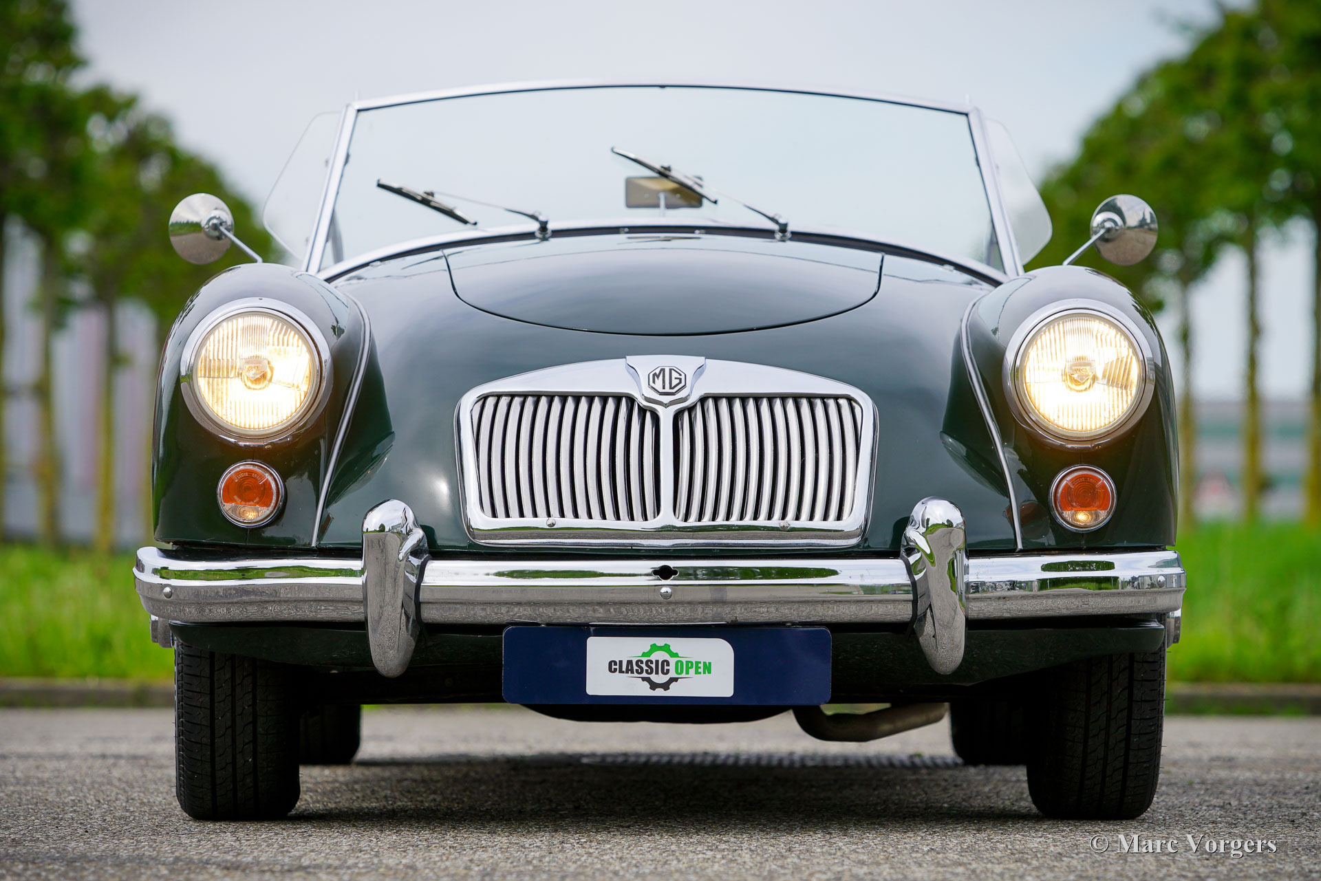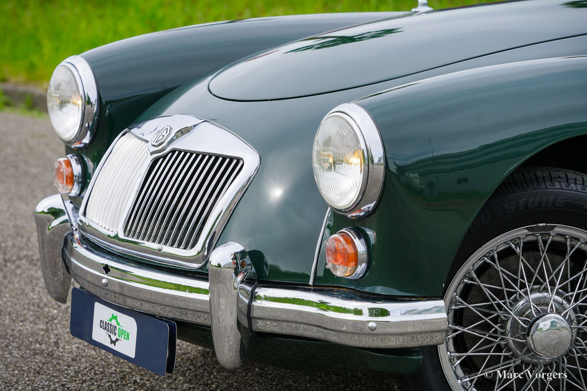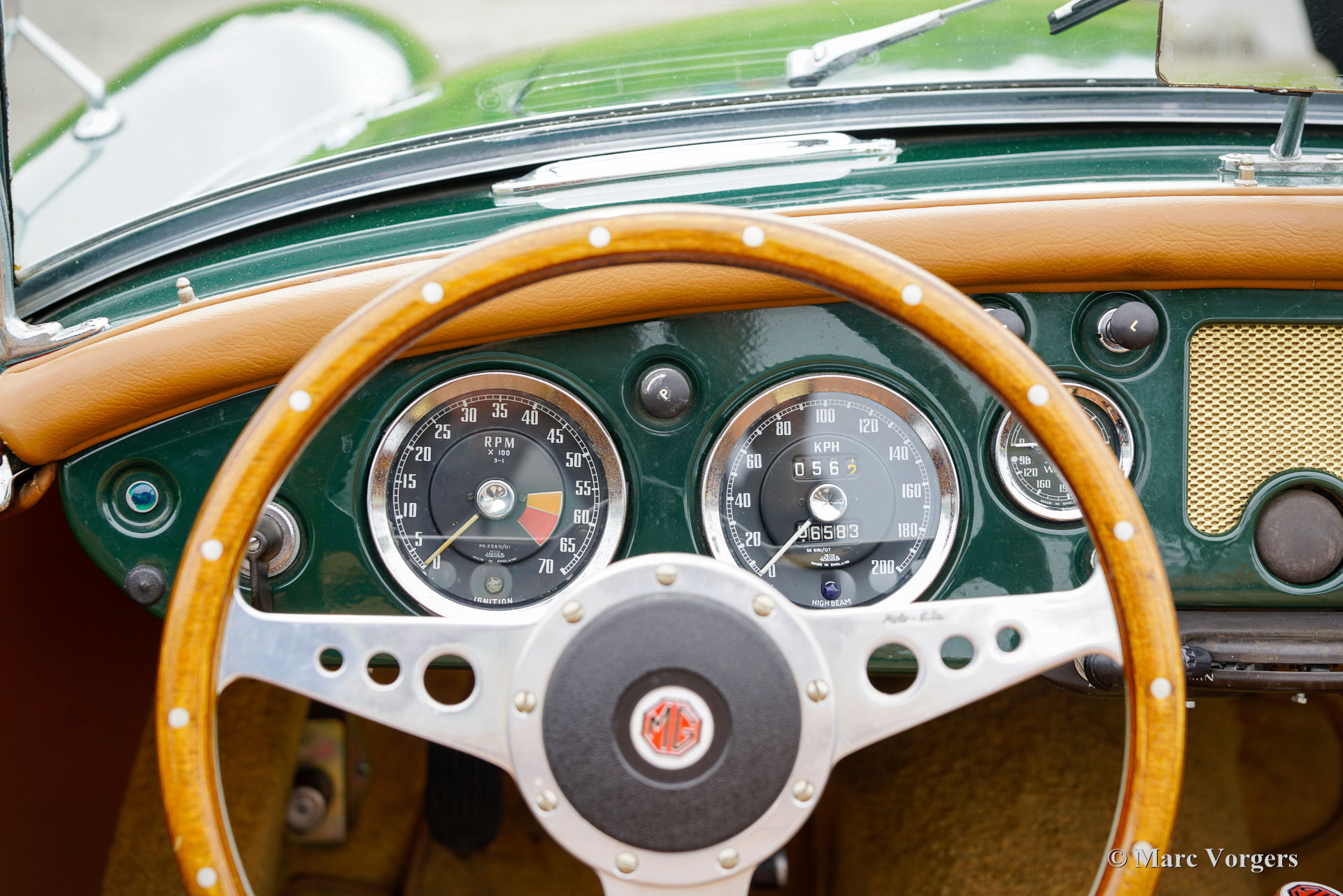 The year 1955 saw the introduction of the MGA. With this design the MG broke new grounds. After its predecessors MG TD and MG TF, which were largely based on the pre-war MG TB, it was a roadster with a very modern sporty design. Like its predecessors, the MGA was a great success and, like before, the greater part was sold in America. Until 1959, the MGA was equipped with a 1459 cc four-cylinder engine. From that year, the car was fitted with a 1588 cc four-cylinder. A 1622 cc four-cylinder engine replaced the 1588 cc. engine in 1961. The early MGA versions had very good drum brakes until 1959, but after that year, the MG A was equipped with disc brakes on the front wheels. The year 1962 saw the production of the MGA, the A 1600 Mk II. The MGB replaced this very popular British sports car, and was to develop the success of the MG A even further.