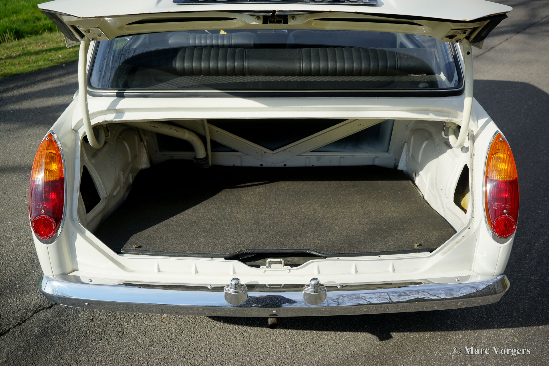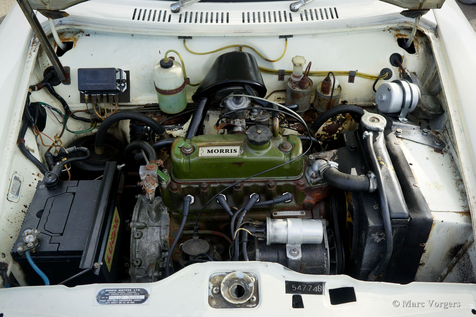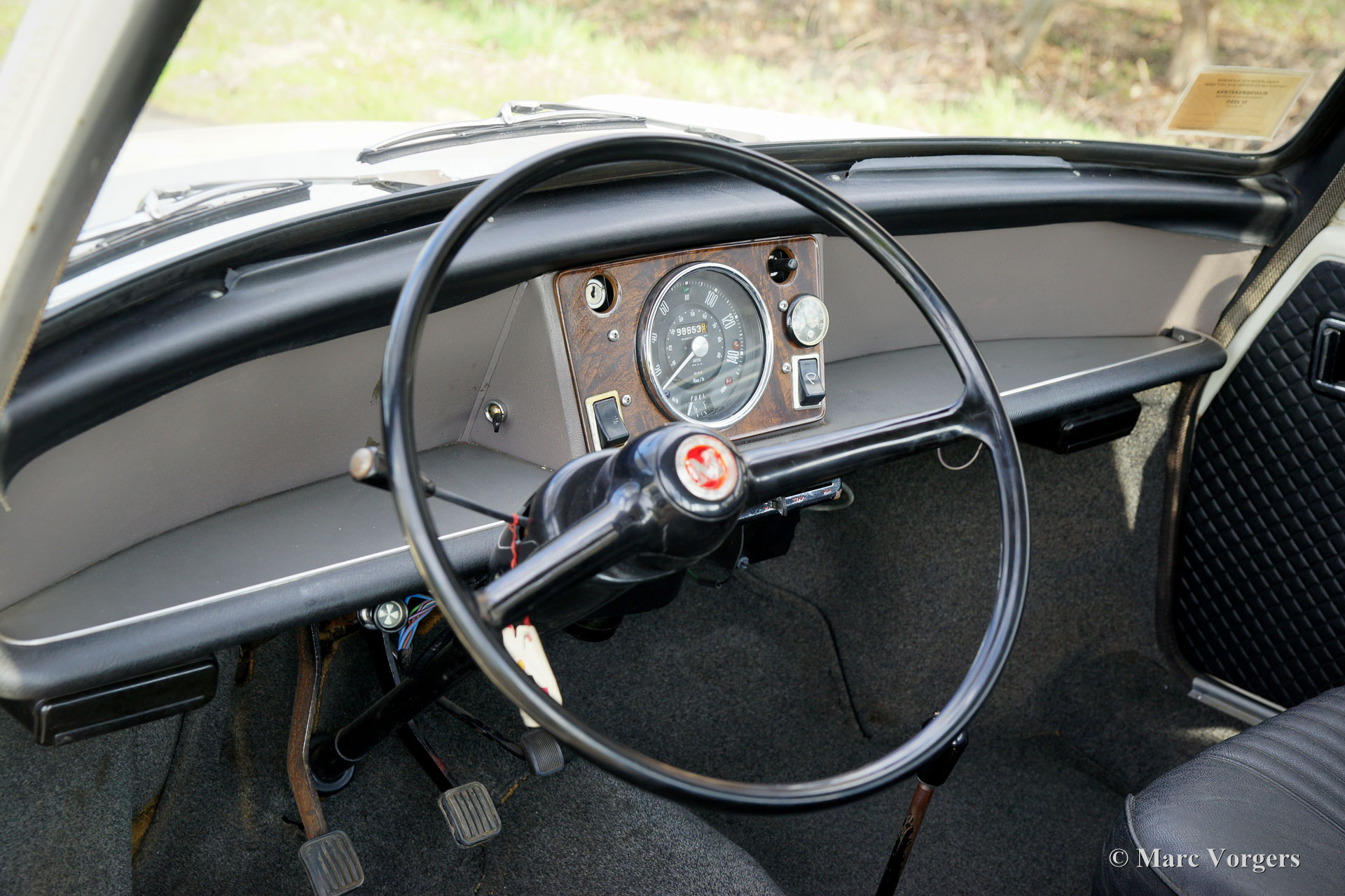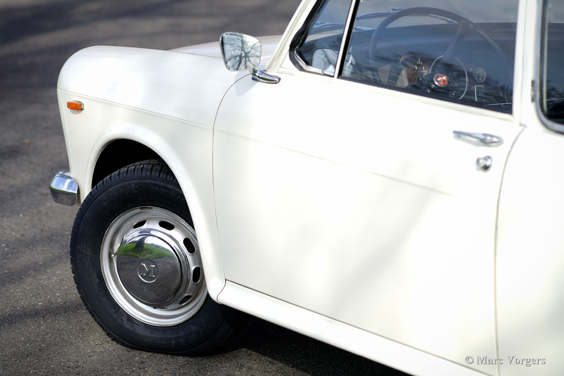Morris 1100, Jahr 1970. Farbe Weiß kombiniert mit schwarzem Kunstleder-Interieur und grauem Teppich. Dieser Morris 1100 wurde in den Niederlanden neu verkauft. Das Auto stammt vom zweiten Besitzer, der den Morris seit 1982 schätzt! Gleich nach dem Kauf im Jahr 1982 erhielt der Wagen eine neue Lackierung in der Originalfarbe. Der 40 Jahre alte Lack ist immer noch in einem sehr guten Zustand und die Karosserie ist vollkommen intakt. Der Morris hat knapp 100.000 Kilometer gefahren. Das Auto fährt perfekt, der Motor läuft wunderbar und das Getriebe schaltet wie es soll. Die innovative „Hydrolastic“-Federung funktioniert hervorragend und verleiht dem Auto ein angenehmes Fahrgefühl. Dieser Morris 1100 ist in einem sehr guten und super originalen Zustand! Der Innenraum ist sehr geräumig und bietet Platz für fünf Passagiere. Der Morris 1100 war auch mit anderen Kühlergrills und „Marken“-Abzeichen als Austin Glider, Wolseley, MG und Riley mit dem Codenamen ADO16 erhältlich. Ein frühes Beispiel für „Badge Engineering“, das im modernen Automobilbau die Norm ist. Das Auto hat einen kompletten Service, eine neue Benzinpumpe und vier neue Reifen erhalten. Der Morris 1100 ist ein weiteres Innenraumwunder, das von Alec Issigonis, dem Vater des legendären Mini, entworfen wurde.