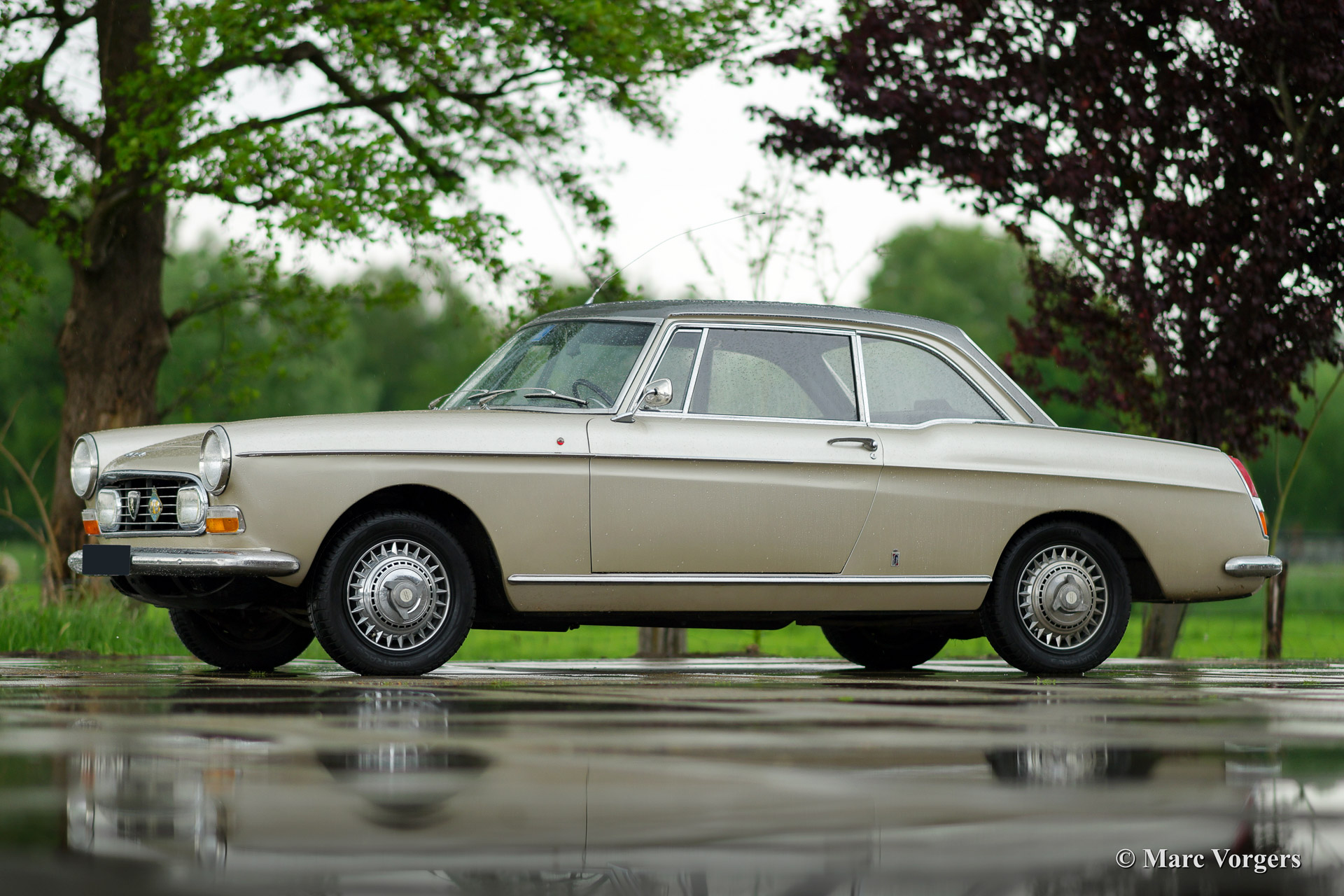 Peugeot 404 404 Pininfarina Coupé, year 1966. Colour beige metallic with a black interior. This very elegant Peugeot is one of the most striking post war Peugeot models of which 3616 specimen have been built. The automobile is in very good condition and the car shows beautiful original details like the dashboard with Jaeger gauges and the remarkable wheel covers with 'faux' wheel nuts. The car was given new paintwork in the past and the car is very well maintained. The driving experience is very comfortable and easy going. The engine delivers 80 brake horsepower which is directed to the road thru a four speed gearbox operated by a steering column mounted shift lever.
