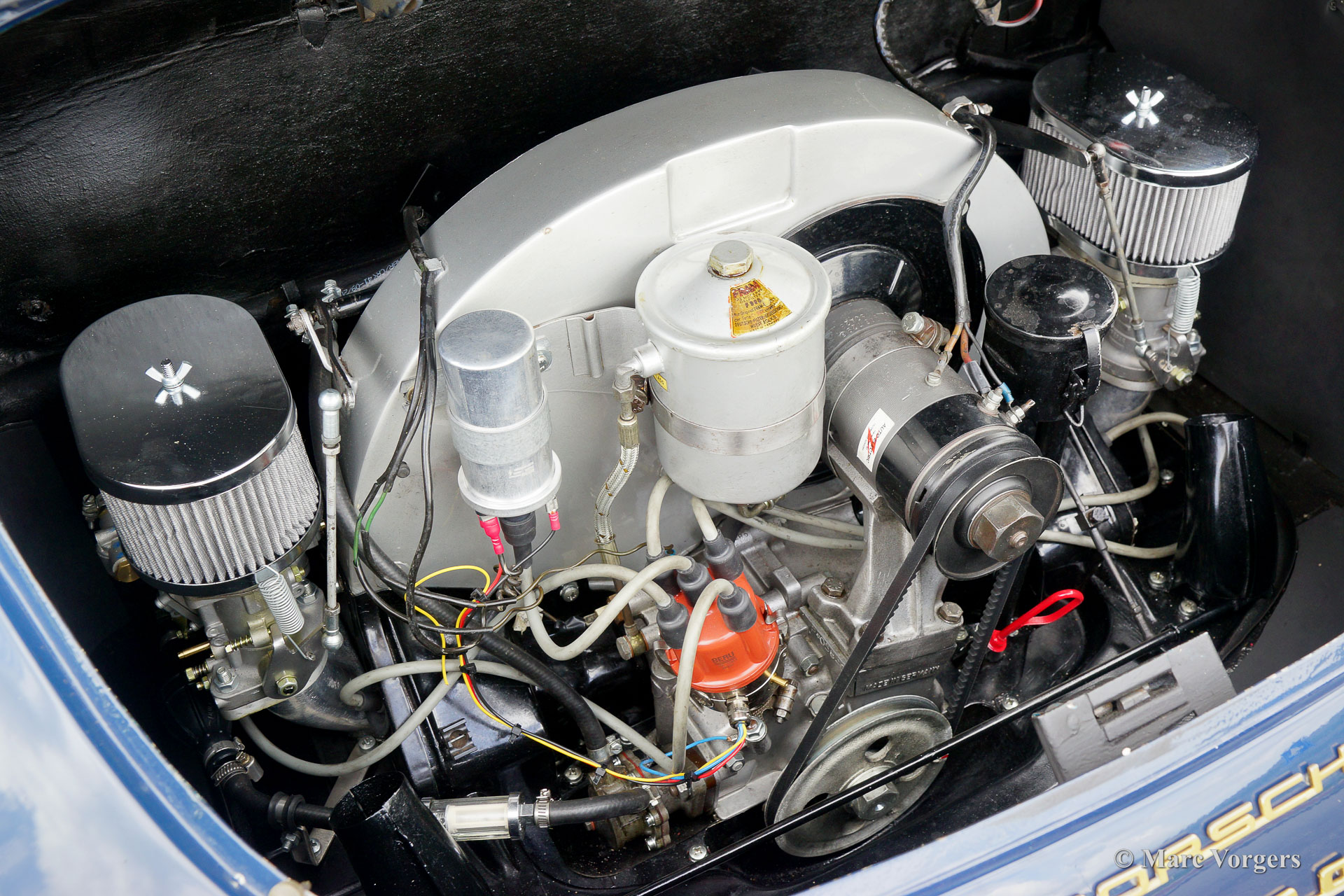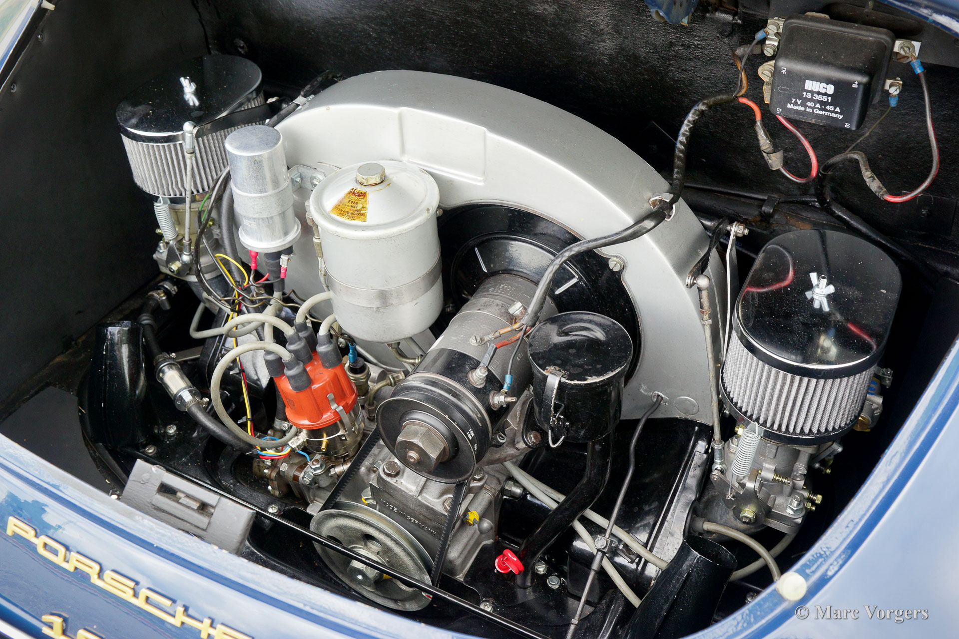 Porsche 356 1600 Super (B T6) Coupé, Jahr 1963. Farbe blau kombiniert mit einer roten Lederausstattung und anthrazitfarbenem Teppich. Dieses prächtige Porsche 356 Coupé präsentiert sich in einer wunderschönen Farbgebung und das Auto zeigt alle originalen Details. Wenn Sie sich auf den Fahrersitz setzen, werden Sie von der Schönheit des originalen Lenkrads, dem wunderschönen Armaturenbrett und dem Blaupunkt Bremen Autoradio verwöhnt. Unter der vorderen Kofferraumklappe finden Sie das Ersatzrad, den originalen Wagenheber und eine wartungsfreundliche Optima-Batterie. Im aufgeräumten Maschinenraum kommt der luftgekühlte Vierzylinder-Boxermotor schön zur Geltung. Dieses wundervolle Porsche 356 1600 Super Coupé ist in einem sehr guten bis exzellenten Zustand und das Auto fährt perfekt. Bei einem Tachostand von 57.000 Kilometer wurde der Motor überholt, jetzt zeigt der Tacho 59.000 Km an. Kürzlich durchgeführter Service und Updates: neue Getriebelager eingebaut, neuer Benzintank und E10-beständige Schläuche montiert, verbesserte Schalldämmung eingebaut, Heizungsbetrieb verbessert, neue Weber-Vergaser eingebaut, elektronische Zündung eingebaut, Bremsen überholt (Geber- und Nehmerzylinder), Radlagern erneuert, neuer Auspuff montiert und Koni-Stoßdämpfer montiert. Die Vergaser und die Zündung wurden auf einem Leistungsprüfstand feinjustiert. Dieser wundervolle Porsche 356 ist voll auf dem neuesten Stand und bereit, von einem stolzen neuen Besitzer in vollen Zügen genossen zu werden!
