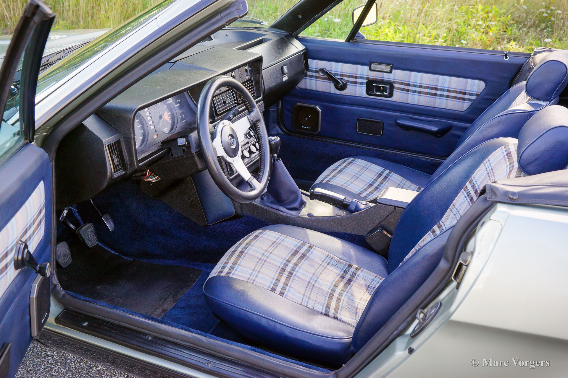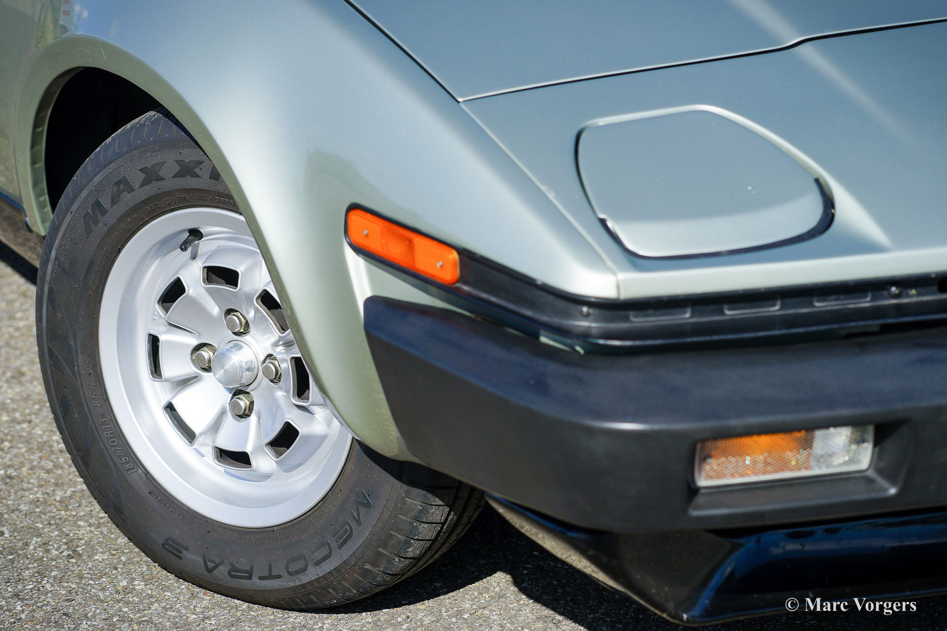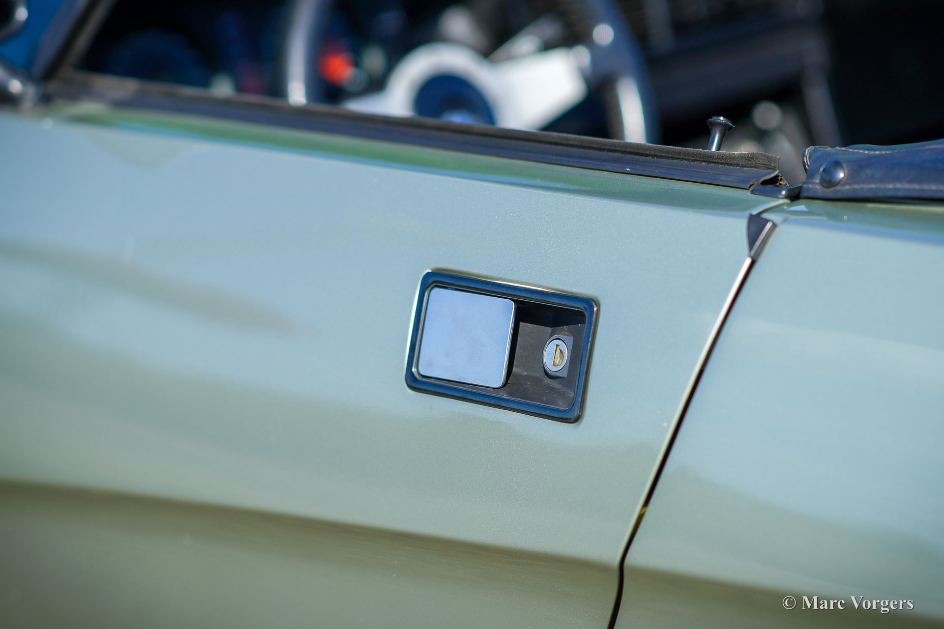 Triumph TR 8, Jahr 1980. Farbe ‘Cashmere Gold’ metallic (helles Grün) kombiniert mit einem blauen Kunstleder-Interieur und blauem Teppich. Die Mittelbahnen der Sitze und die Mitte der Türverkleidungen sind mit kariertem Stoff bezogen. Verdeck aus schwarzem Mohair, Verdeck Abdeckung aus schwarzem Vinyl. Dieser großartige Triumph TR 8 wurde in den USA neu verkauft, das Auto wurde 1989 in den Niederlanden zugelassen. Seit 1992 hatte das Auto drei Besitzer. Dieser Triumph TR 8 ist in einem sehr guten Zustand und das Auto fährt und klingt großartig. Die originale Innenausstattung ist wunderschön und der Motorraum ist wunderschön detailliert. Der 3,5-Liter-Rover-V8-Motor ist getunt und mit einem neuen Edelbrock-Vergaser ausgestattet. Der Wagen wurde auf einem Prüfstand eingestellt und eine Leistung von 225 PS ermittelt. Das Auto ist rundherum mit neuen Federn und Stoßdämpfern ausgestattet. Es wurde eine moderne elektronische Zündung sowie neue 185/70-13-Reifen eingebaut. Die originalen Alufelgen sind pulverbeschichtet. Dieser schicke Triumph TR 8 ist mit einem Fünfgang-Schaltgetriebe, einem Sportlenkrad, einem Philips-Radio und einer doppelten Auspuffanlage ausgestattet. Dies ist ein sehr schönes und gutes Exemplar!
