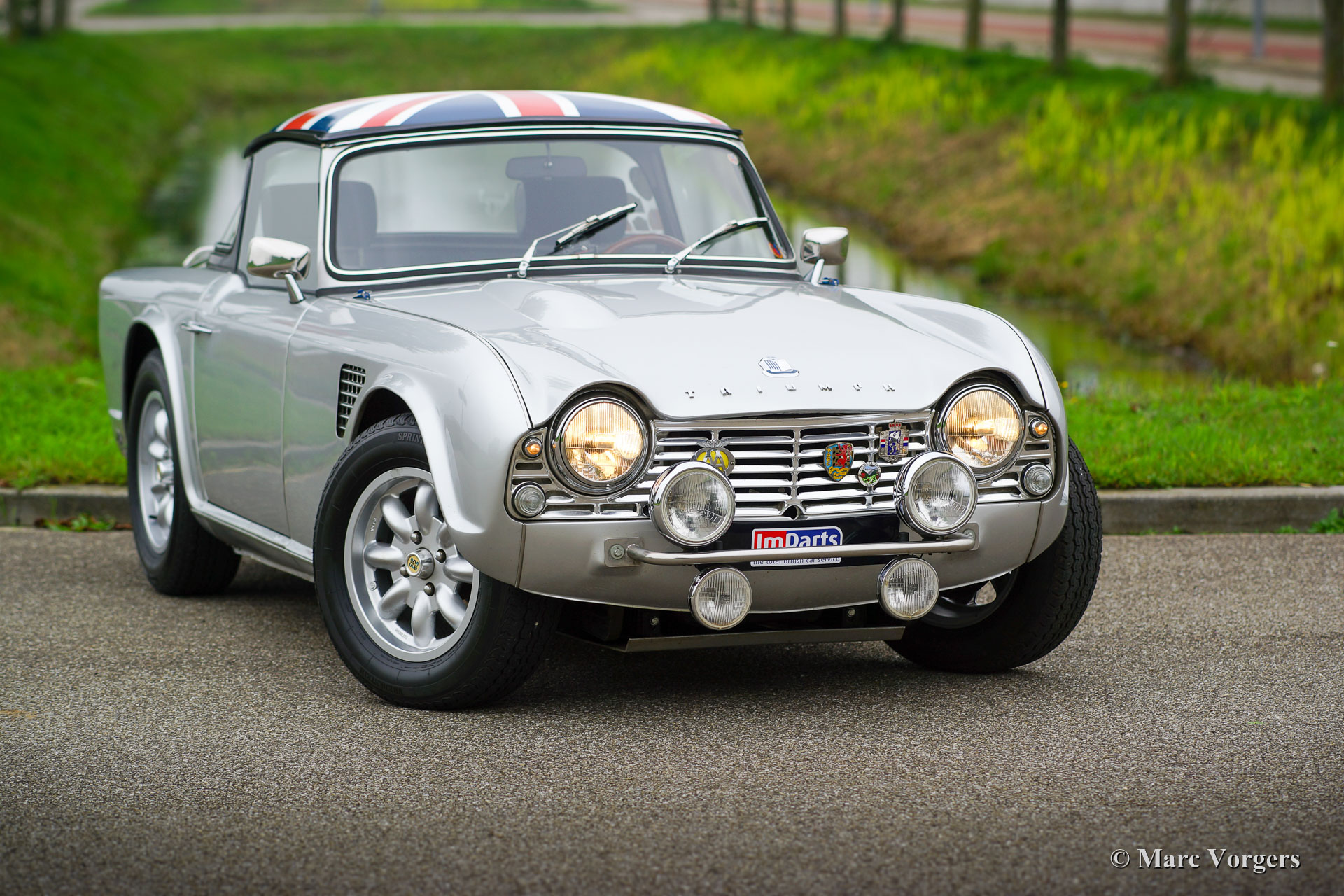 Triumph TR4 Rallye-Wagen, Jahr 1963. Farbe silbermetallic kombiniert mit einem schwarzen Interieur. Dieser fantastische Triumph TR4 wurde vor einigen Jahren wunderschön restauriert und für historische Rallye-Events vorbereitet. Dieser TR4 ist in einem ausgezeichneten Zustand und das Auto fährt perfekt. Das Auto ist mit einem begehrten originalen „Surrey-Top“ ausgestattet, die Dachverkleidung ist mit einem „Union Jack“ versehen. Während des Baus wurde das Auto ausgestattet mit: einer Triumph TR6-Zweikreisbremsanlage mit Bremskraftverstärker, zwei Doppel-Weber-Vergasern, einer Wechselstrom Lichtmaschine und einem elektrischen Kühlgebläse. Darüber hinaus ist dieser TR4 mit folgendem Rallye-Zubehör ausgestattet: Mini-Lite-Leichtmetallfelgen mit 185/70/15-Bereifung, Trip-zähler, Zeitschaltuhr, Kompass und zusätzlichen Fahrscheinwerfern vorne. Dieser TR4 fühlt sich sehr robust an und das Fahrerlebnis ist fantastisch! Der Komfort ist nicht zu fest und das Auto handhabt und lenkt schnell und präzise. Dies ist ein sehr begehrenswerter früher Triumph TR4 und ein großartiges Auto, um an historischen Rallye-Events teilzunehmen!