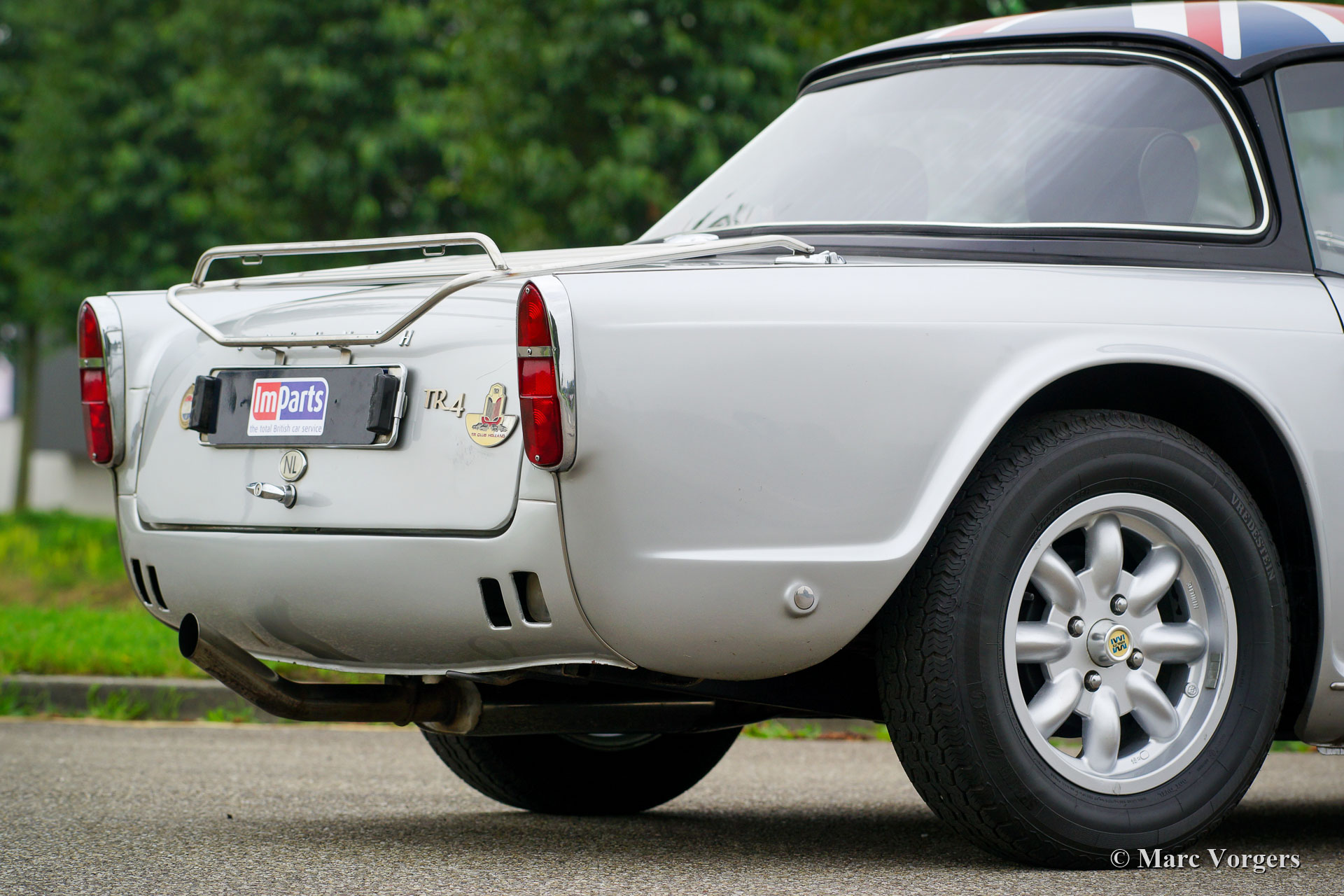 The Triumph TR 4 is a real British roadster; pure and honest. The TR 4 is built with a sturdy separate chassis with independent front suspension and a live rear axle. (IRS versions are equipped with independent rear suspension). The TR4 is equipped with disc brakes at the front and drum brakes at the rear. The bonnet shows a beautiful power bulge which gives space for the two carburettors. The Triumph TR 4 has a very beautiful wooden dashboard that is clear and functional and is equipped with large Smiths clocks. For the TR 4 a very nice "Surrey-top" is available as accessory. The Triumph "Surrey top" inspired Porsche to built the Porsche "Targa" versions. The Triumph TR4 is as all the TR versions a real drivers car.