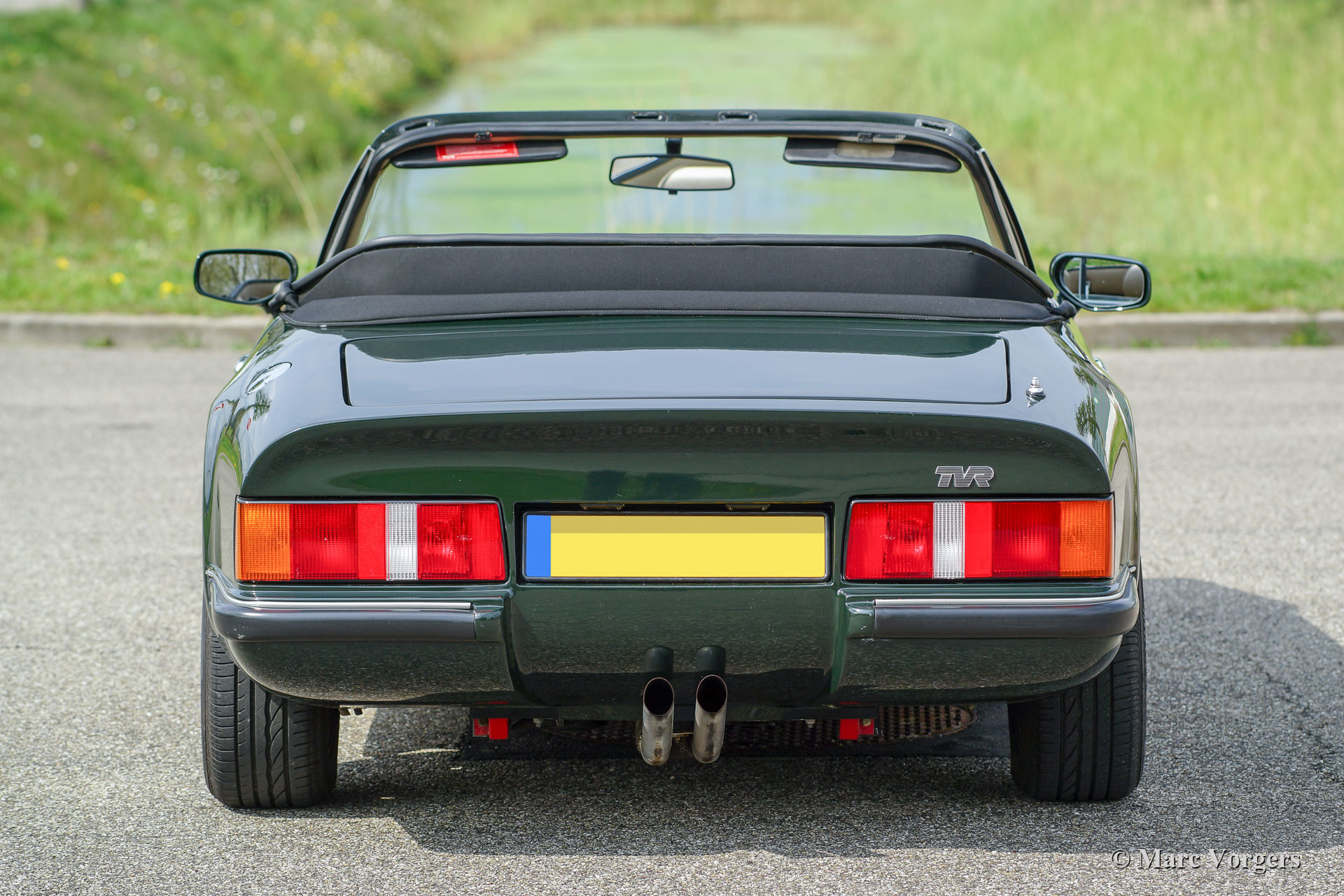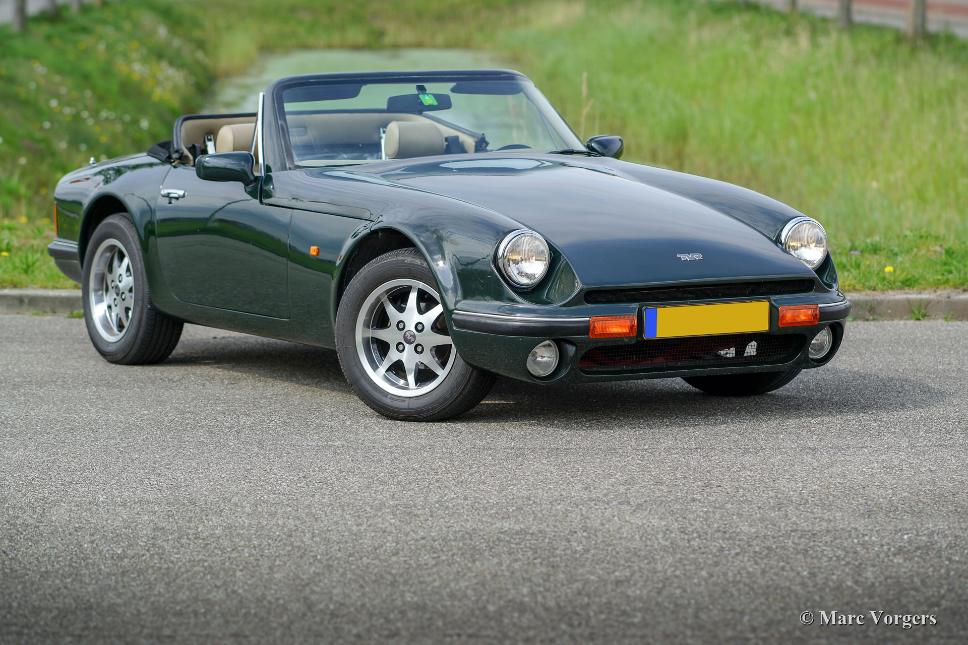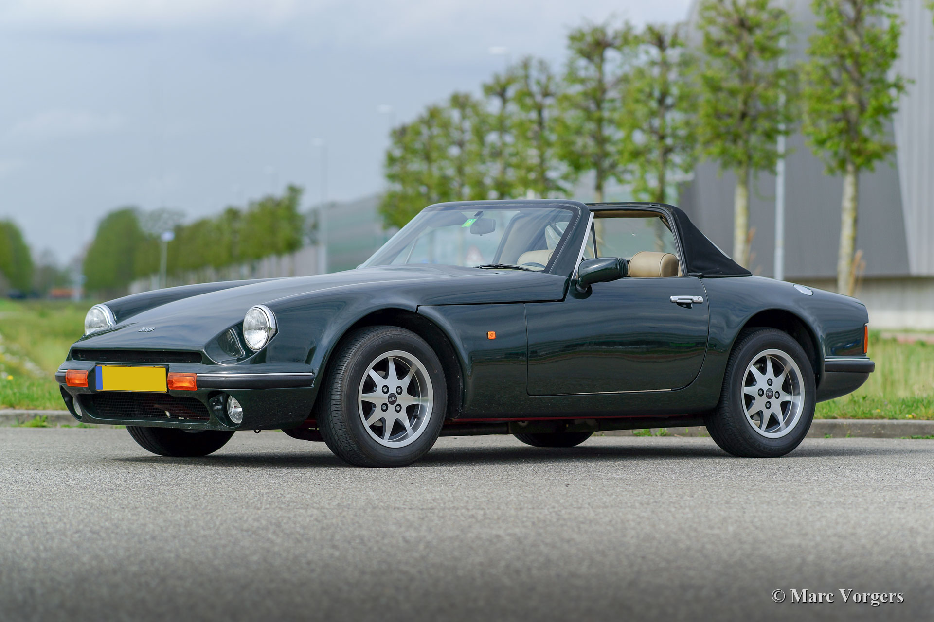 TVR S4C V6, Jahr 1994. Farbe British Racing Green kombiniert mit einem beigen Lederinterieur. Dies ist eine seltene TVR, es wurden nur 34 Fahrzeuge dieses Modells gebaut, von denen nur 4 Fahrzeuge mit Linkslenkung ausgestattet waren. Das Auto wurde in der Schweiz neu verkauft, im Jahr 2016 wurde das Auto in die Niederlande importiert. Von neuem ist das Auto nur 78.000 Kilometer gefahren und das Auto wurde von vier Eigentümern geschätzt. Dieser TVR S4C verfügt über einen 2,9-Liter-Ford-V6-Benzineinspritzmotor, der mit einem manuell betriebenen 5-Gang-Getriebe gekoppelt ist. Der S4C V6 verfügt über alle Spezifikationen des TVR V8 S mit Scheiben-Bremse rundum und die breite Karosserie. Die (Service) Historie ist vollständig bekannt und dokumentiert.
