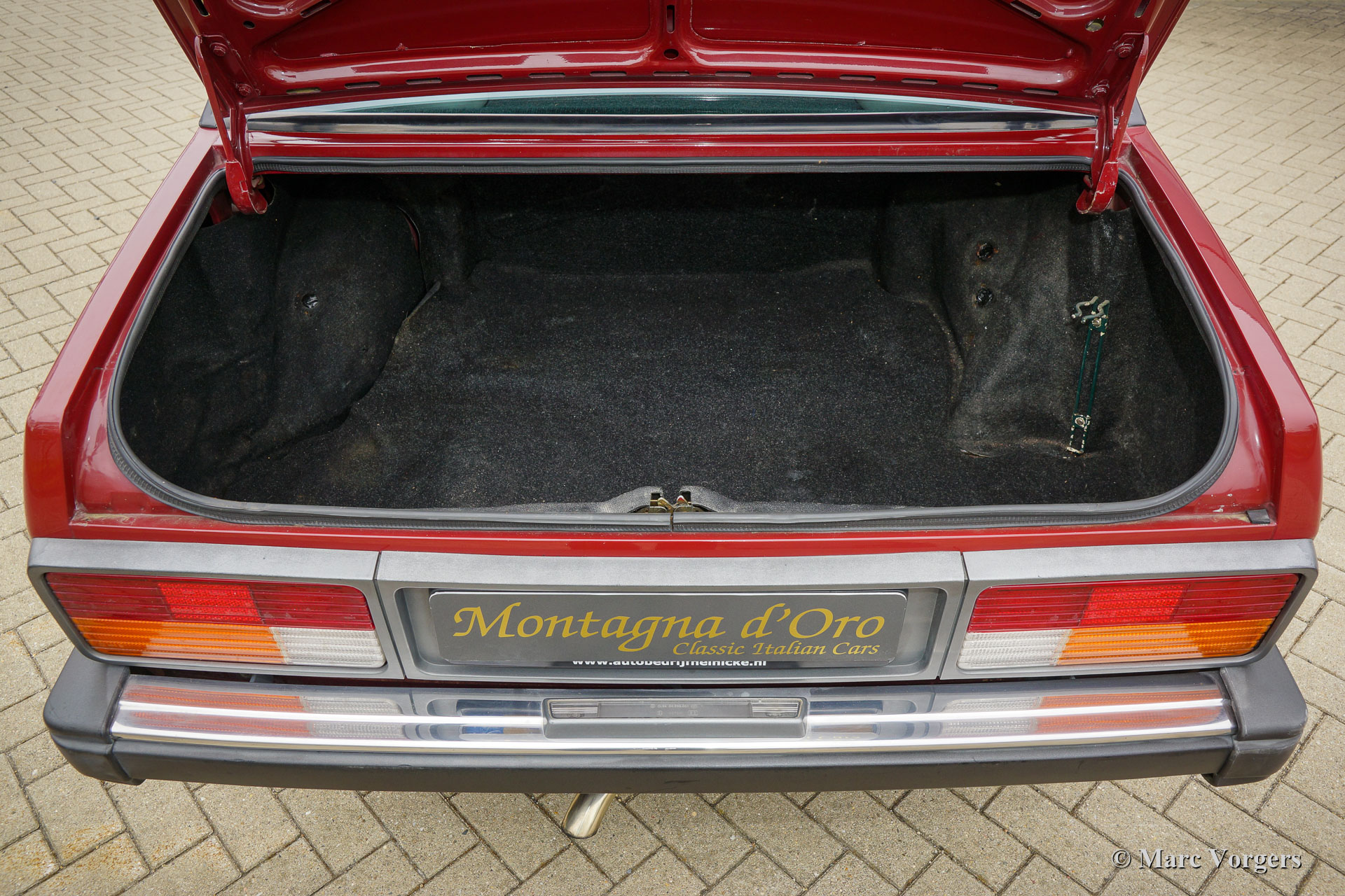 Alfa Romeo Alfetta 1.8 Berlina, Jahr 1983 (Erstregistrierung 30-6-1983). Farbe Rosso Veneziano 536. Dieser schöne Alfa Romeo Alfetta wurde neu in Italien verkauft. Das Auto wurde kürzlich vom ersten Besitzer, Herrn Giuseppe aus Ragusa, gekauft. Dieser Alfetta 1.8 Berlina befindet sich in einem fantastischen und vollständig originalen Zustand und das Auto ist von Neuem nur 69,706 Kilometer gefahren. Der Alfa Romeo Alfetta ist ein sportlicher klassischer Berlina mit mechanischen Details eines Sportwagens… Ein Aluminium-Vierzylindermotor mit zwei obenliegenden Nockenwellen, ein 5-Gang-Getriebe „Transaxle“ direkt vor der Hinterradaufhängung für 50-50 Gewicht Verteilung, Scheibenbremsen rundum und eine De-Dion-Hinterachse. Das Auto fährt, lenkt und bremst perfekt! Das Auto ist in ausgezeichnetem Originalzustand! Die perfekte Karosserie zeigt ihre ursprüngliche Farbe und das makellose Interieur zeigt fast keine Gebrauchsspuren! Diese wundervolle Alfa Romeo Alfetta 1.8 Berlina wird mit den Originalbüchern und zwei Schlüsselsätzen geliefert. Ein seltener Fund für den Alfa Romeo-Enthusiasten und / oder Sammler!