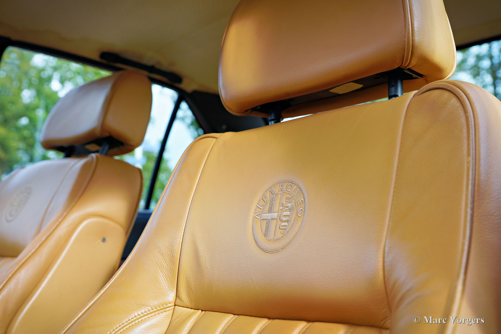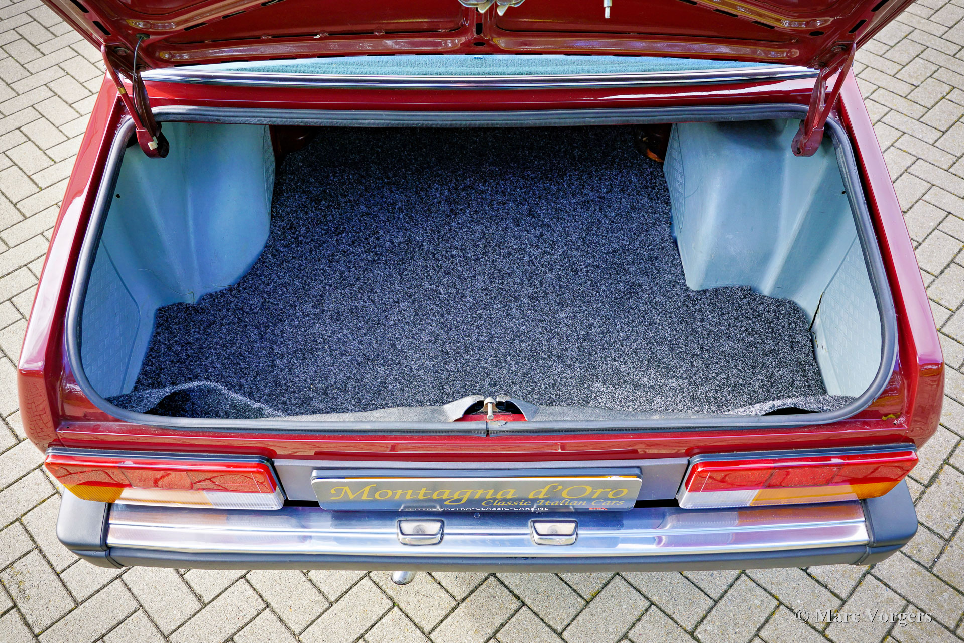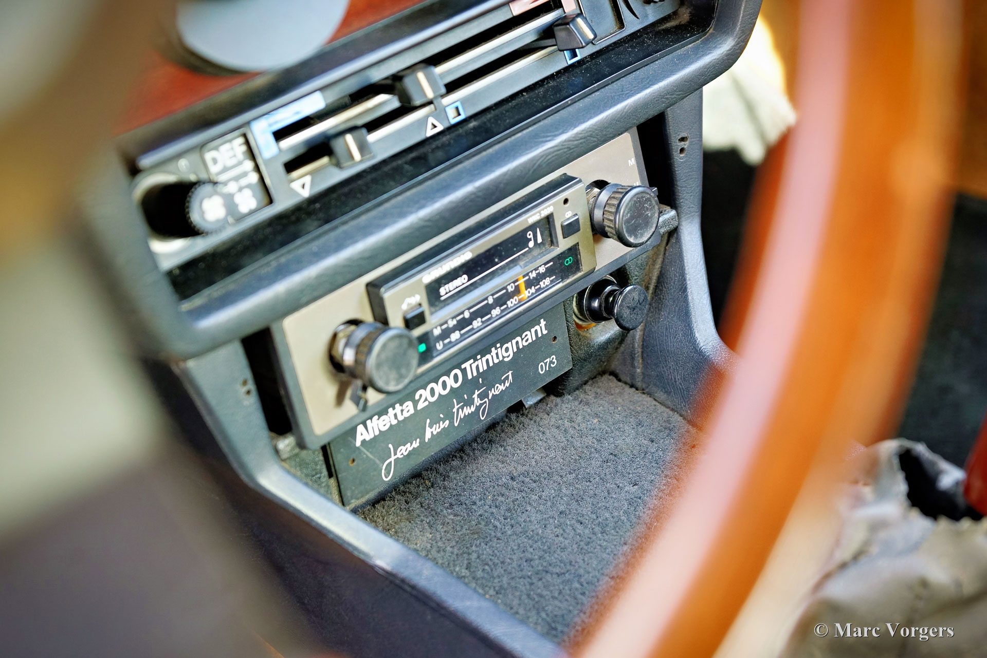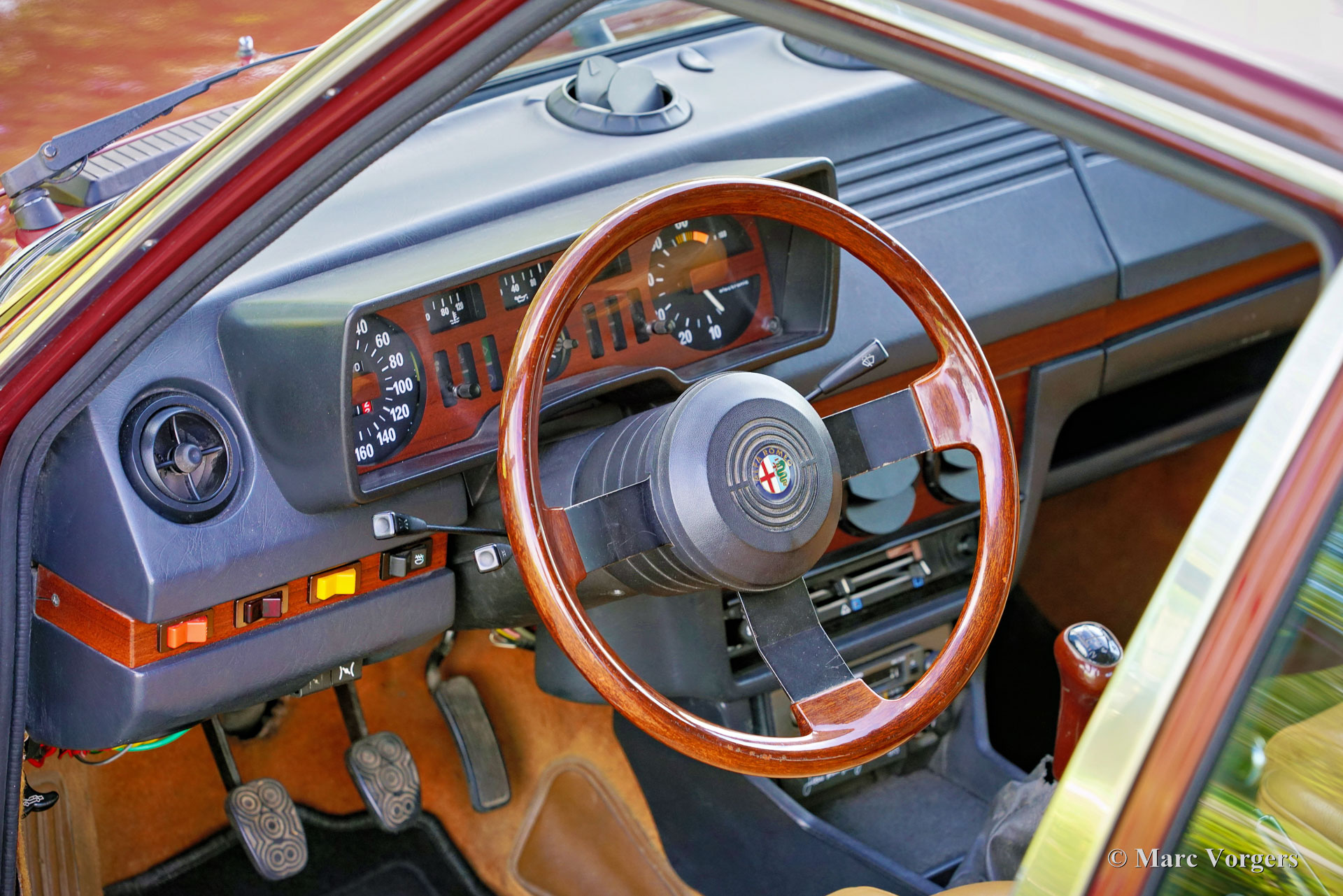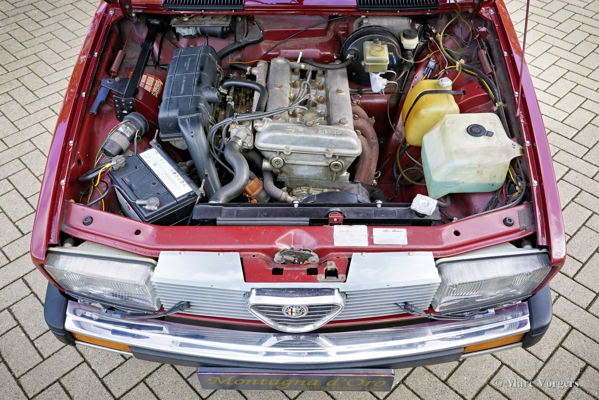 Alfa Romeo Alfetta 2000 „Trintignant“, Baujahr 1984. Farbe Dunkelrot (Rosso Veneziano AR 537) kombiniert mit hellbrauner Lederausstattung, hellbraunem Teppich und schwarzen Schutzmatten. Dieser Alfa Romeo Alfetta 2000 „Trintignant“ ist eine spezielle limitierte Auflage, von der nur 100 Fahrzeuge gebaut wurden. Dieses Auto hat die Nummer 073, wie auf einer Plakette auf der Mittelkonsole angegeben ist. Jean Louis Trintignant war ein französischer Schauspieler und Rallyefahrer. In den 1980er Jahren gab er einer Werbekampagne seinen Namen, die für seine Aussage „Alfa Romeo hat recht, manche Autos haben noch eine Seele“ berühmt wurde. Diese begehrte Alfetta wurde in den Jahren 2020-2021 professionell restauriert und das Auto ist in einem hervorragenden Zustand! Während der Restaurierung wurden die originalen Vordersitze und die Rückbank gegen Ledersitze aus einem Alfa Romeo 156 ausgetauscht. Der Tacho zeigt derzeit 32.778 Kilometer an. Die Alfa Romeo Alfetta ist eine der ausgewogensten und am besten zu fahrenden sportlichen 4-türigen Limousinen der 1970er und 1980er Jahre. Das Layout mit Frontmotor und Transaxle-Getriebe in der Nähe der Hinterachse sorgt dafür, dass die Alfetta eine nahezu ideale Gewichtsverteilung hat. Der Vollaluminiummotor mit zwei obenliegenden Nockenwellen, das Fünfganggetriebe und die De-Dion-Hinterachse vervollständigen den sportlichen Hintergrund der Alfetta. Diese limitierte Auflage „Trintignant“ ist ein ganz besonderes Exemplar in wunderbarem Zustand!