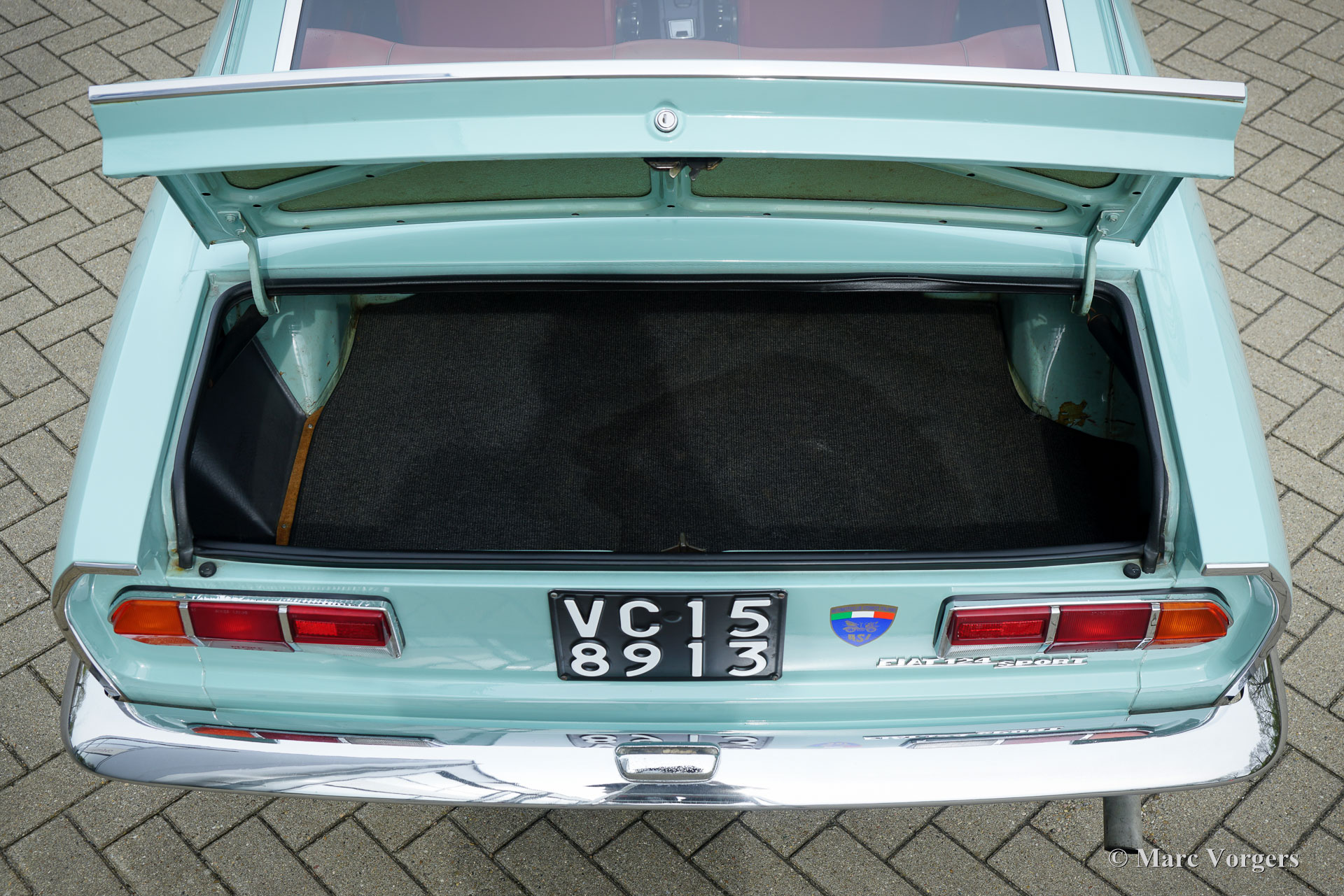 Fiat 124 Sport Coupé, Jahr 1969 (Erstzulassung 5. März 1969). Fahrgestellnummer Fiat124AC*0085652*, Motornummer 124AC 4198994. Farbe Hellblau kombiniert mit einem roten Kunstleder-Interieur. Dieses wunderschöne Fiat 124 Sport Coupé der ersten (AC)-Serie wurde kürzlich vom letzten Besitzer in Mongrando (BI) in Italien gekauft. Das Auto wurde neu an Herrn Rivaldo Bozzoue in Vercelli (VC), Italien, verkauft. Das Auto trägt immer noch das italienische Kennzeichen VC158913. Dieser wunderschöne Fiat 124 ist eine herrliche Zeitkapsel! Ein super originales Auto in sehr gutem Originalzustand mit allen originalen Werksdetails! Der Tachostand beträgt 41.801 Kilometer. Der Name Sport Coupé verspricht eine überdurchschnittliche Leistung und Fiat lieferte diese mit dem 124 Sport Coupé. Das Auto verfügt über einen 1438-cm³-Vierzylindermotor mit zwei obenliegenden Nockenwellen und einer Leistung von 90 DIN-PS. Mit einem Fünfganggetriebe, einem Gewicht von 960 kg und einer Höchstgeschwindigkeit von 170 km/h war der Fiat 124 in den 1960er Jahren ein sportliches und spritziges Sport Coupé! Die großartig aussehende Karosserieform wurde vom Fiat Styling Center entworfen. Dieses sehr begehrenswerte und äußerst originale Fiat 124 Sport Coupé wird mit einem neuen Auspuff, neuen Reifen und einen umfangreichen Wartung-Service abgeliefert. Diese Fiat-Zeitkapsel wird eine großartige Ergänzung für jede Fiat-Sammlung sein und von einem echten Enthusiasten mit viel Spaß geschätzt, gefahren und genossen werden!