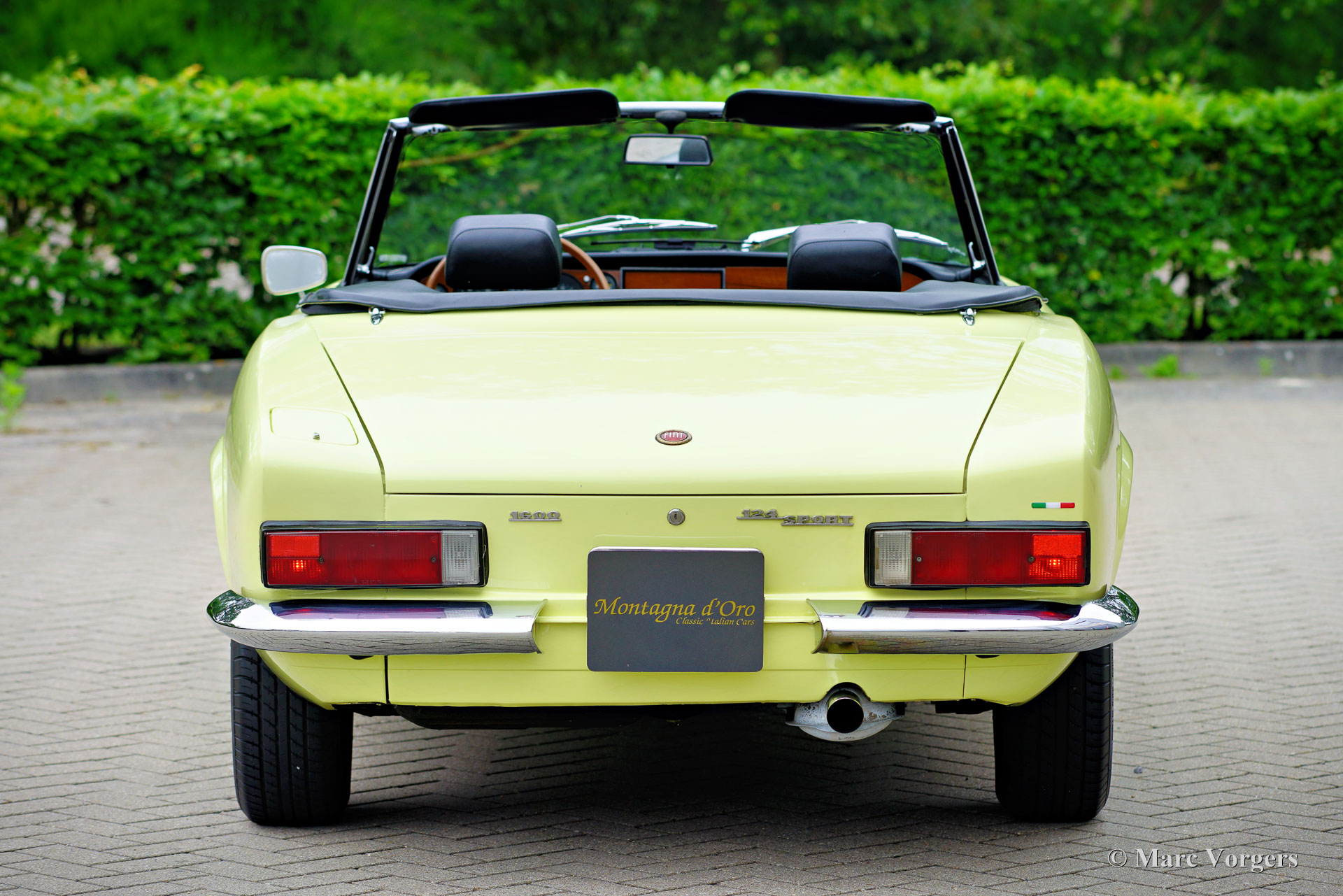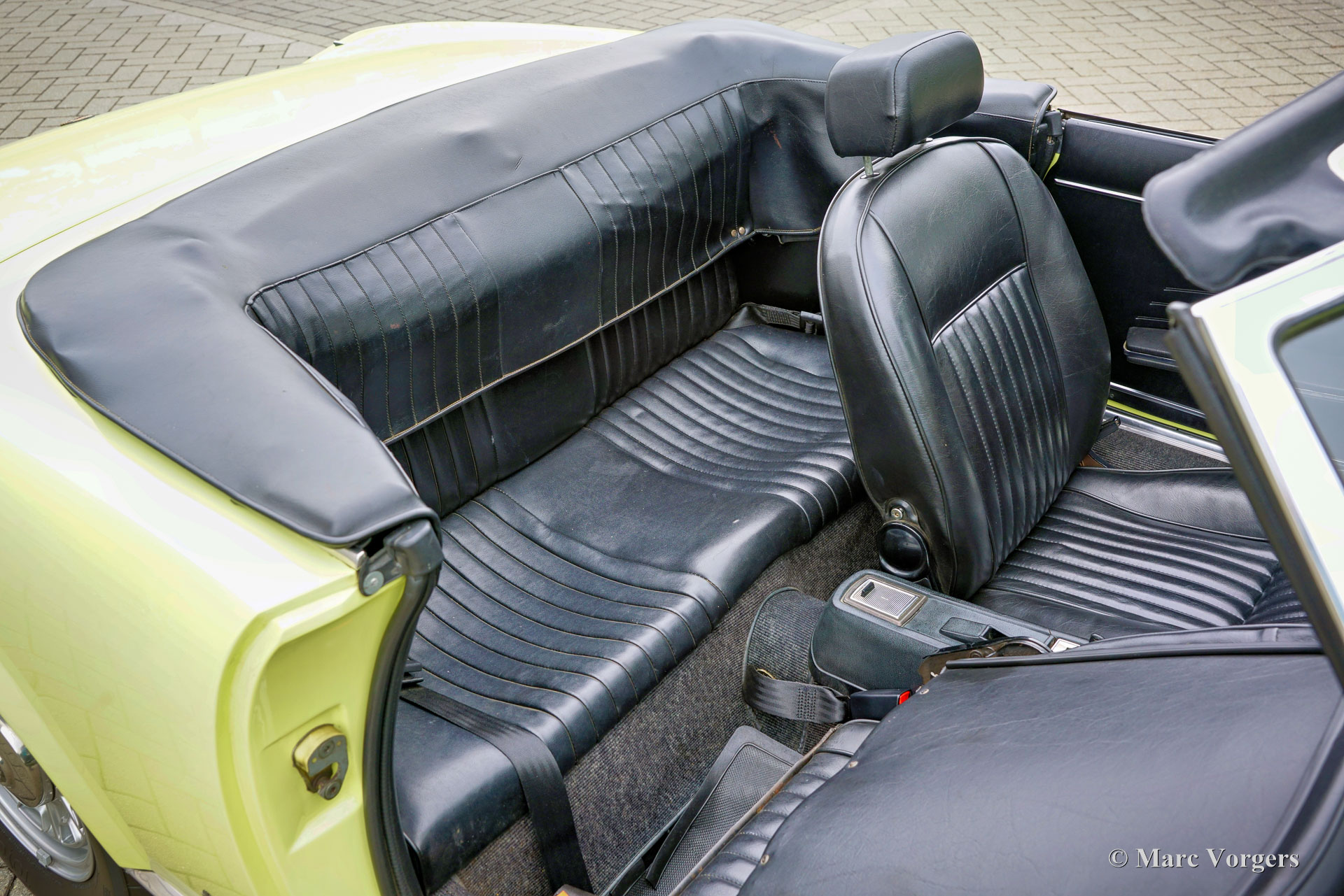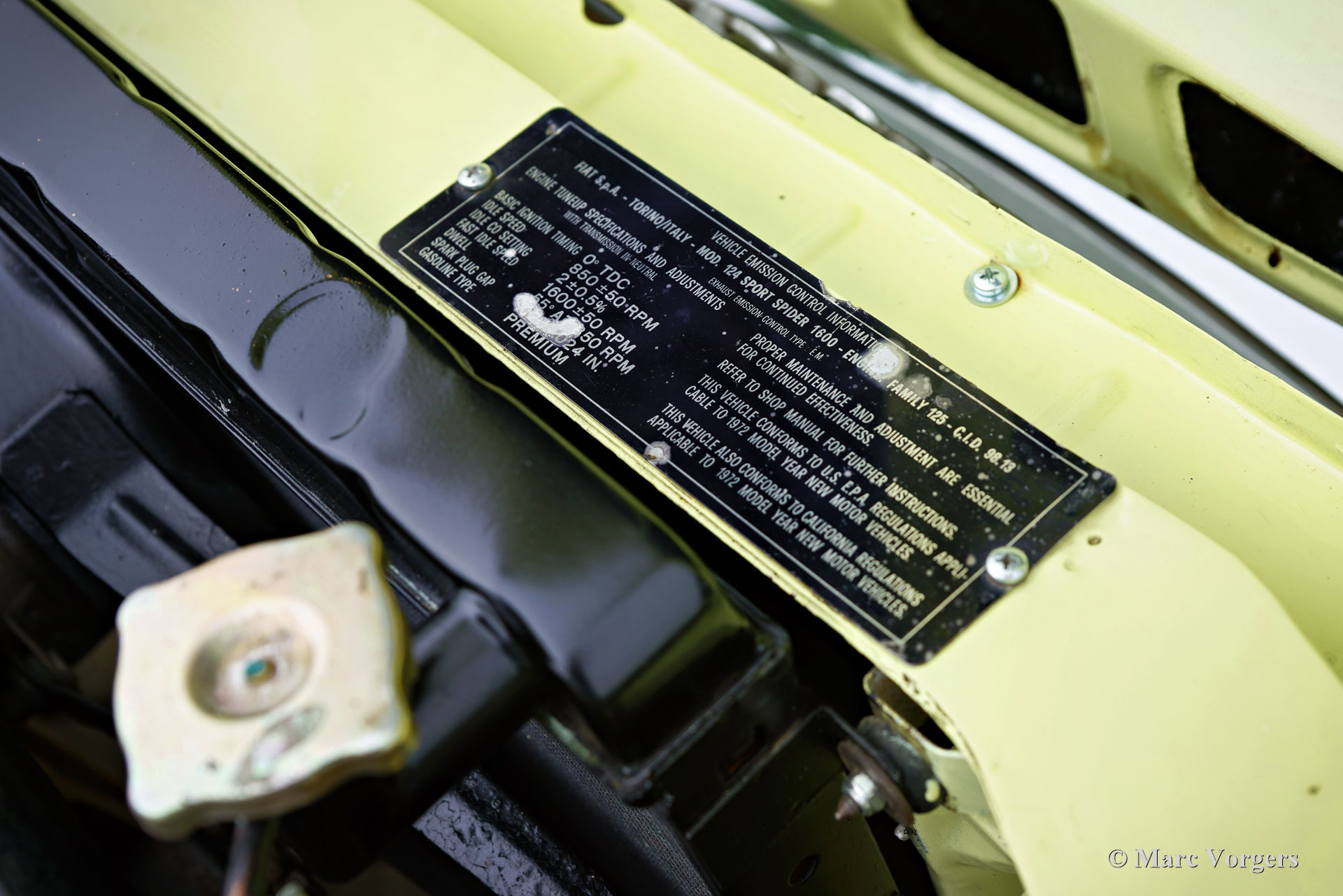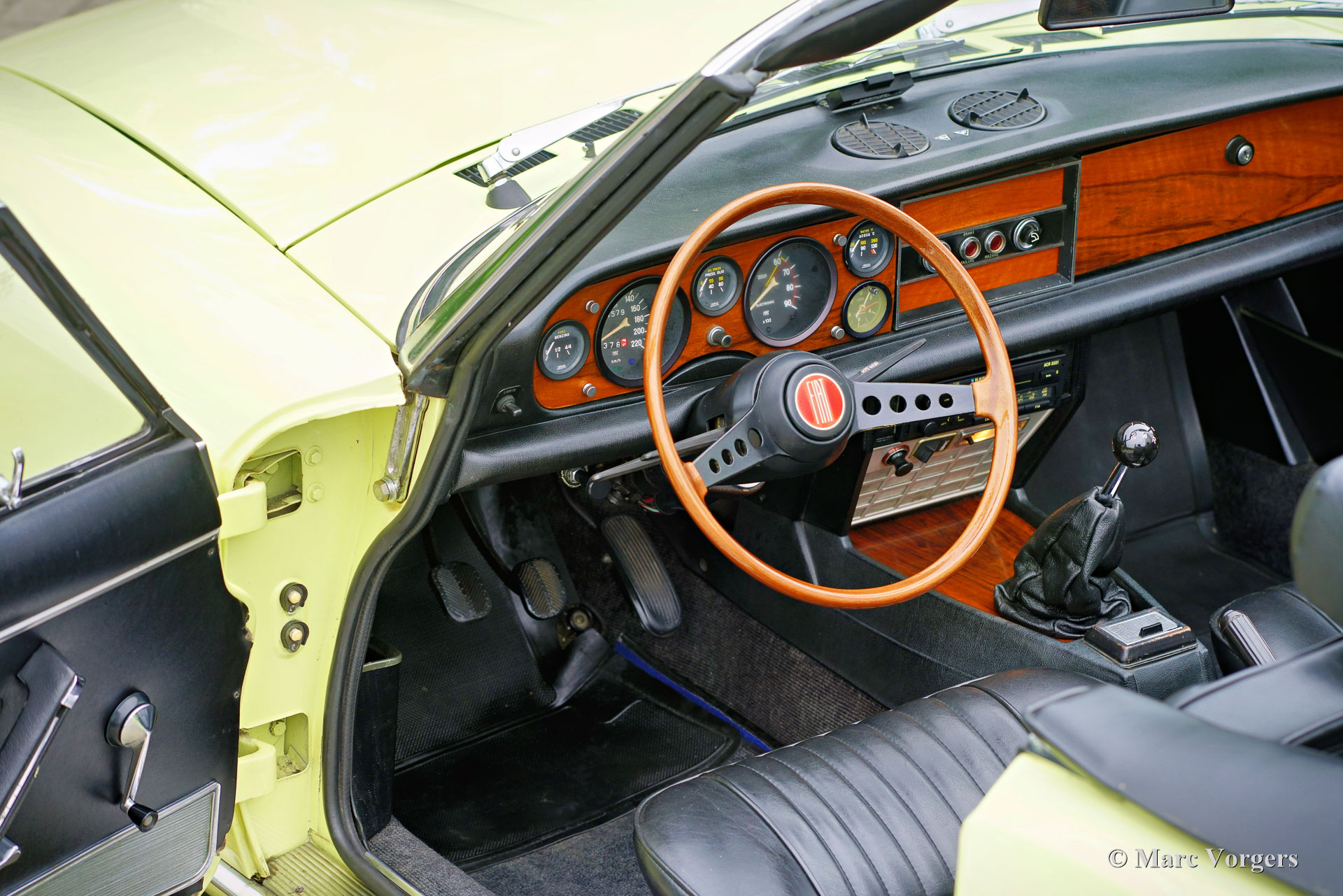 Fiat 124 Sport Spider 1600 (BS1), Jahr 1972. Farbe Gelb (Colorado Yellow 241) kombiniert mit einer schwarzen Kunstlederinnenausstattung mit anthrazitfarbenem Teppich. Das Verdeck ist aus schwarzem Mohair Stoff, die Verdeck Abdeckung ist aus schwarzem Vinyl. Dieser wunderschöne Fiat 124 Sport Spider wurde neu in den USA verkauft und im Juni 1993 in die Niederlande importiert. Die vollständige amerikanische Historie inklusive Wartungsrechnungen ist bis 1992 vorhanden. Nach der Ankunft in den Niederlanden wurde der Fiat auf europäische Spezifikationen umgebaut, unter anderem mit Chromstoßstangen, europäischen Scheinwerfer und einer Tachoanzeige in km/h statt Meilen. Die Rechnungen für den Umbau und einige andere Arbeiten belaufen sich auf 17.000 niederländische Gulden (heute 15.500 € nach indexierter Berechnung). Spätere Wartungsrechnungen sind ebenfalls vorhanden, wir haben selten ein so gut dokumentiertes Auto gesehen! Dieser Fiat 124 Sport Spider ist in einem sehr guten bis ausgezeichneten Zustand und das Auto fährt perfekt. Das Auto verfügt über einen 1592-cm³-Vierzylindermotor mit zwei obenliegenden Nockenwellen und einer Leistungsabgabe von 108 DIN-PS. Mit einem Fünfganggetriebe, einem Gewicht von knapp 1000 kg und einer Höchstgeschwindigkeit von 185 km/h wird sich der Fiat 124 Sport Spider bequem in den modernen Verkehr einmischen. Die großartig aussehende Karosserieform wurde von Pininfarina gezeichnet. Der Innenraum zeigt den Übergang in die 1970er Jahre mit einem der letzten holzfurnierten Armaturenbretter und sportlicher „geschwärzter“ Chromverkleidung (Instrumentenblenden und Lenkradmitte in Mattschwarz), um (Sonnen) Blendung zu vermeiden. Dies war eine neue Erkenntnis, die von Rallye- und Rennwagen übernommen wurde. Dieser wunderschöne Fiat 124 Sport Spider sieht in diesen Farben und mit den originalen Leichtmetallrädern wie ein Bild aus.
