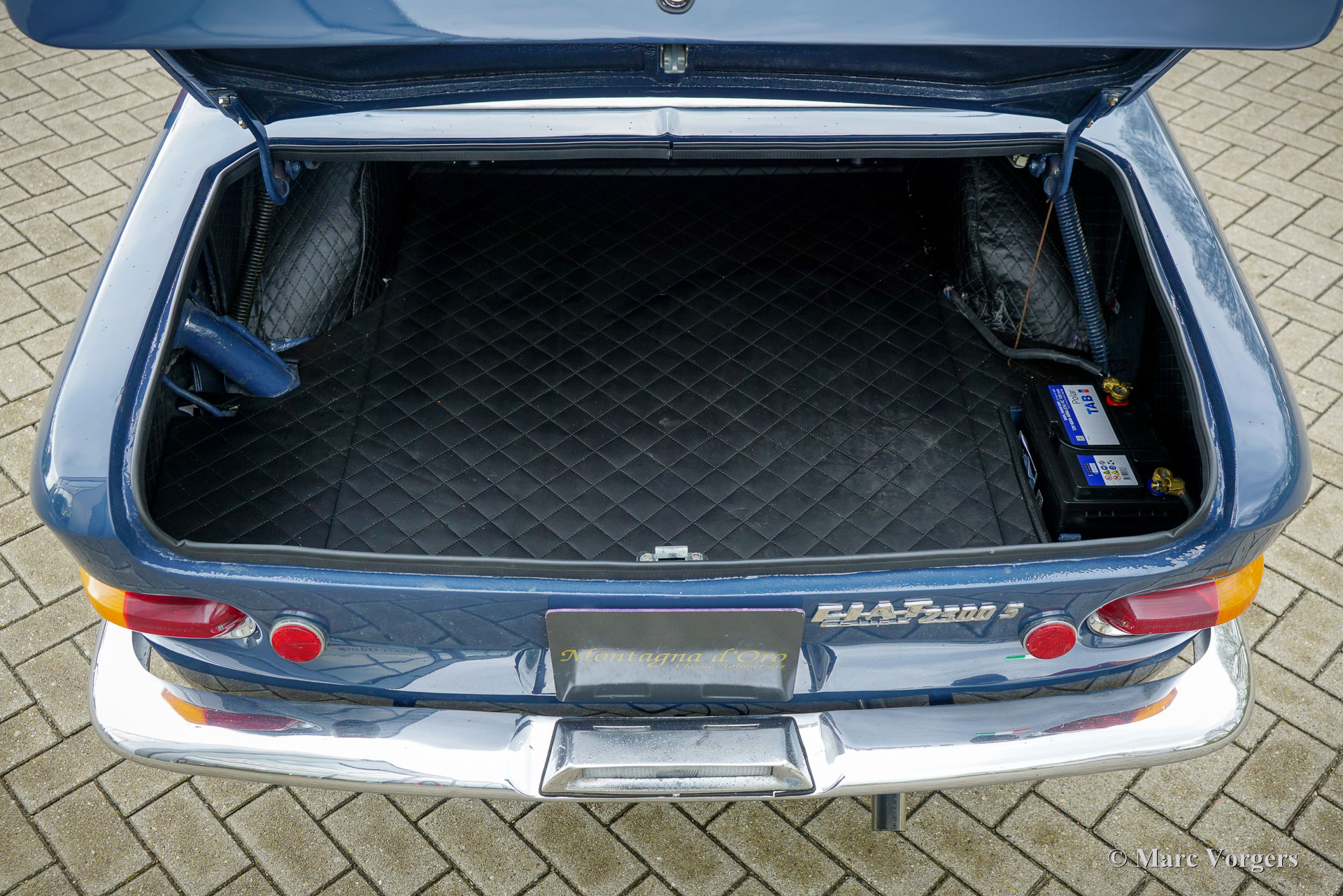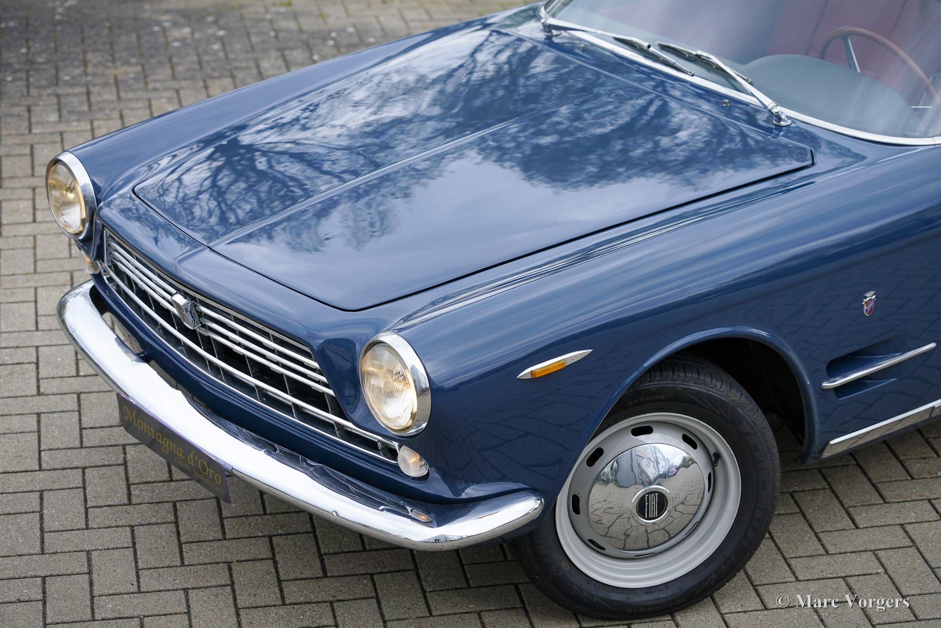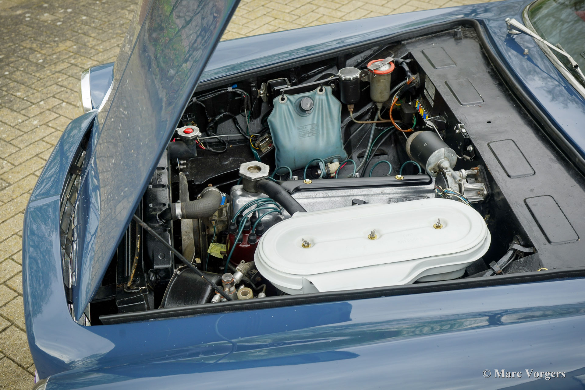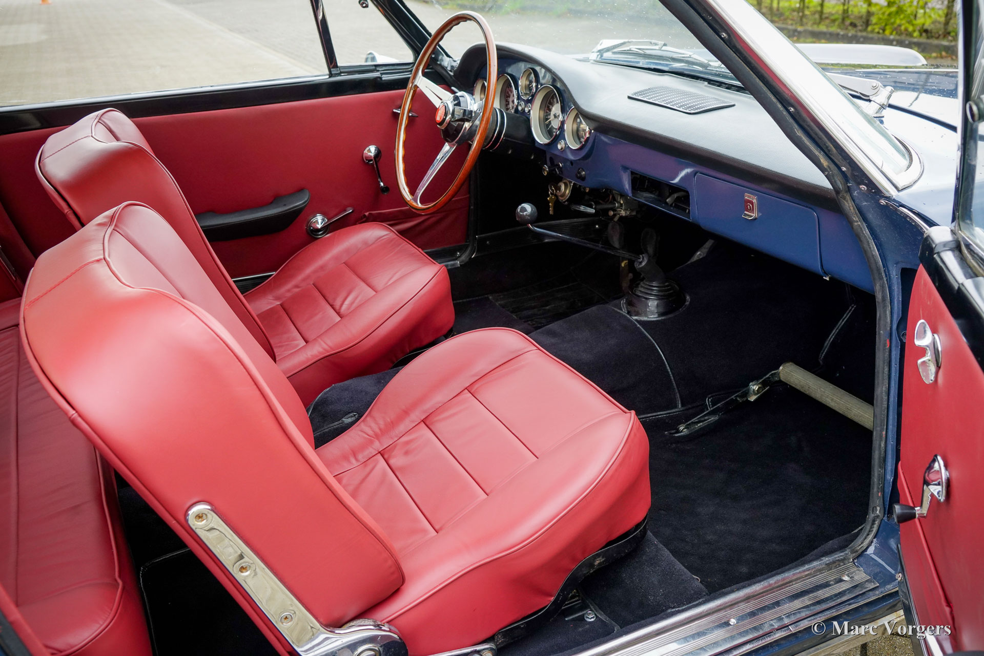 Fiat 2300 S Coupé, Jahr 1963 (Erstzulassung 8. August 1963). Fahrgestellnummer 114BS102607, Motornummer 114BS153622. Farbe Blau kombiniert mit einem roten Lederausstattung und schwarzem Teppich. Wir haben dieses wundervolle Fiat 2300 S Coupé kürzlich von einem in Luxemburg lebenden Italiener gekauft. Der Wagen wird derzeit im Einlieferungszustand gezeigt, ein schönes Exemplar, das von uns in einen sehr guten und vollständigen Zustand gebracht wird. Der Tachostand beträgt derzeit 92,834 Kilometer. Der Lack auf der Motorhaube muss überarbeitet werden und wir sind auf der Suche nach zwei Chromleisten, die im Kühlergrill und am rechten vorderen Kotflügel fehlen. Der Innenraum wurde kürzlich sehr schön mit rotem Leder neu gepolstert! Der Sechszylindermotor läuft wunderbar und alle anderen mechanischen Komponenten funktionieren einwandfrei. Die spektakuläre Form des Fiat 2300 S Coupé wurde vom italienischen Karosseriebauer Ghia entworfen. 1960 präsentierte Ghia auf dem Turiner Autosalon ein Sportcoupé auf Basis eines Fiat 2100-Chassis. Ein Jahr später wurde dieses Modell offiziell im Fiat-Programm aufgenommen. Es wurden zwei Modelle präsentiert: der 2300 und der 2300 S. Der S verfügte über einen stärkeren Sechszylindermotor mit 136 PS anstelle der 105 PS im 2300. Mit einer Höchstgeschwindigkeit von 190 km/h, Scheibenbremsen rundum, und mit einem Fünfganggetriebe war der Fiat 2300 S in den 1960er Jahren ein hervorragender „Gentleman-Express“! Das Auto wird vorabgehend der Übergabe an einen stolzen neuen Besitzer umfassend gewartet.