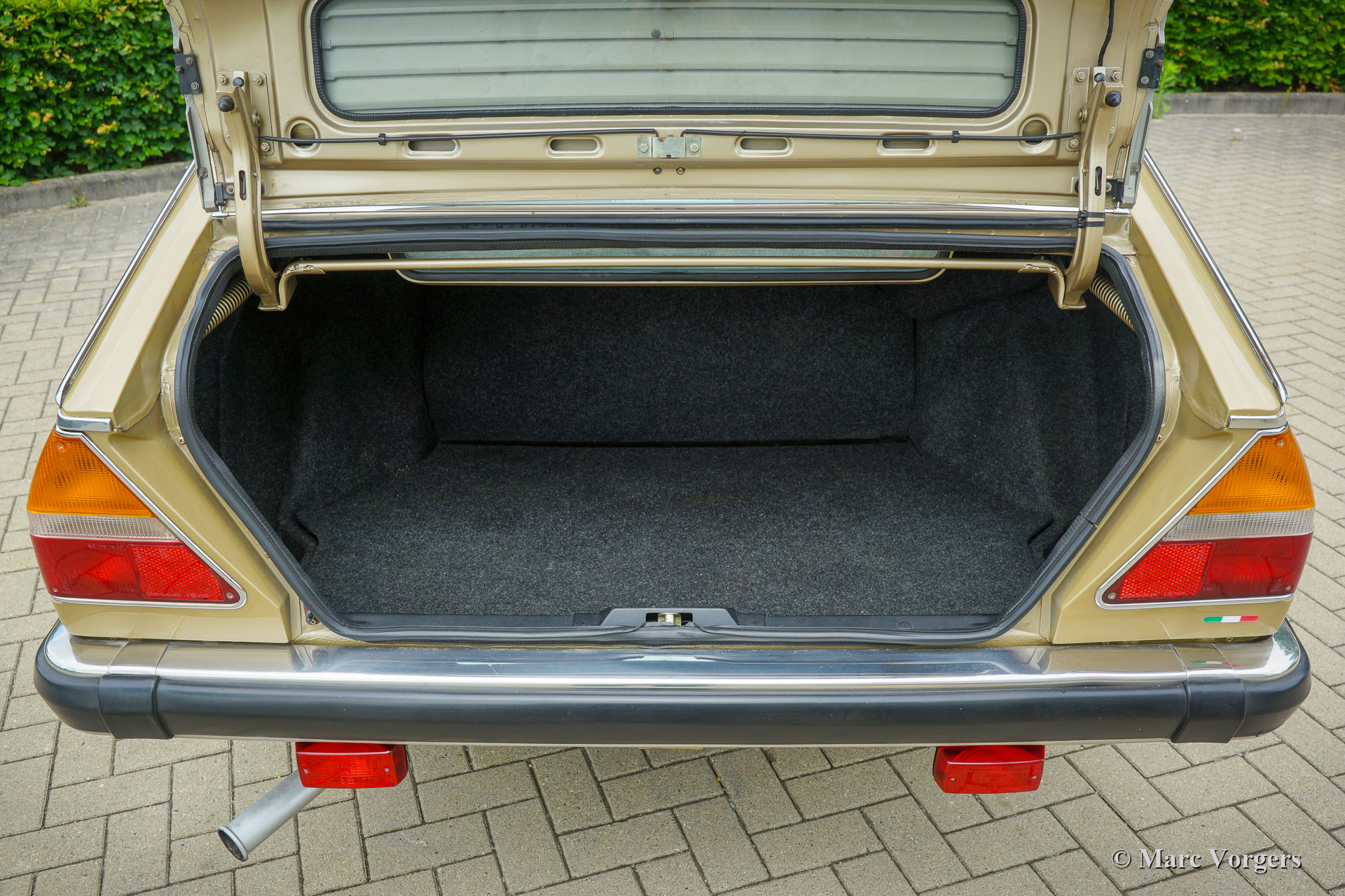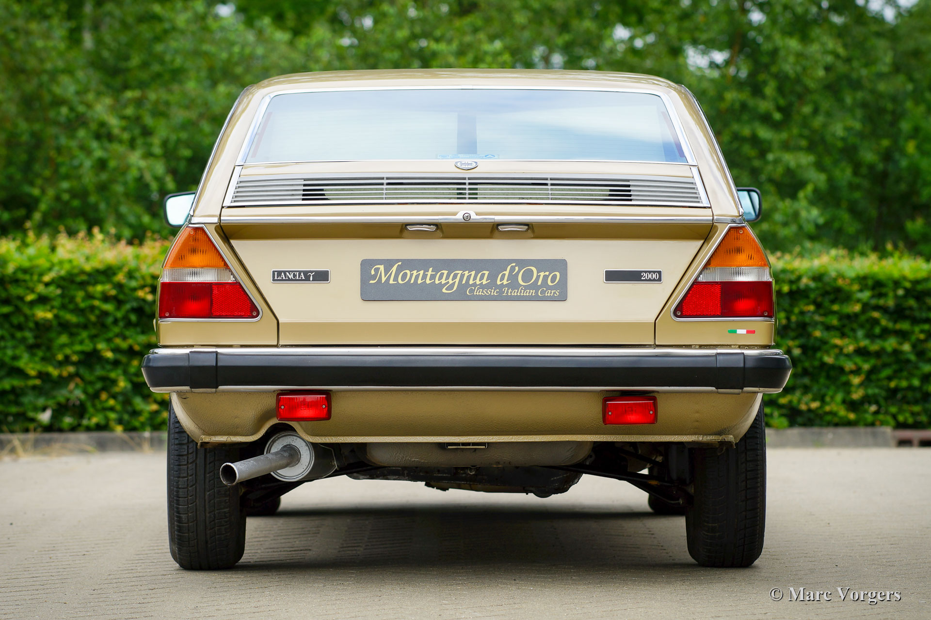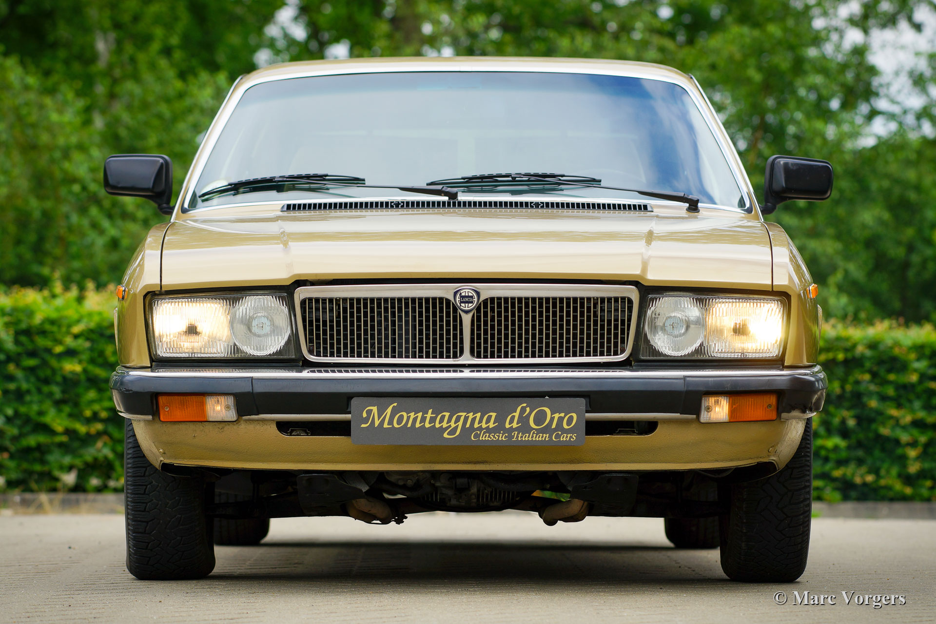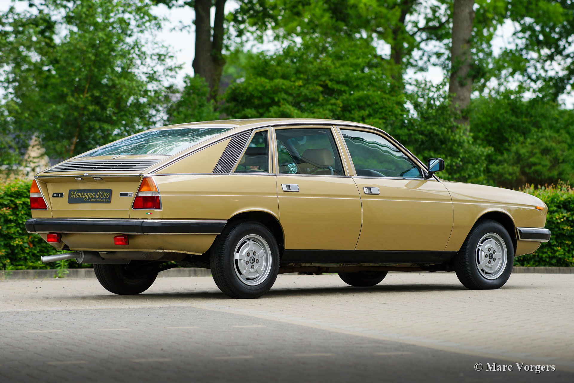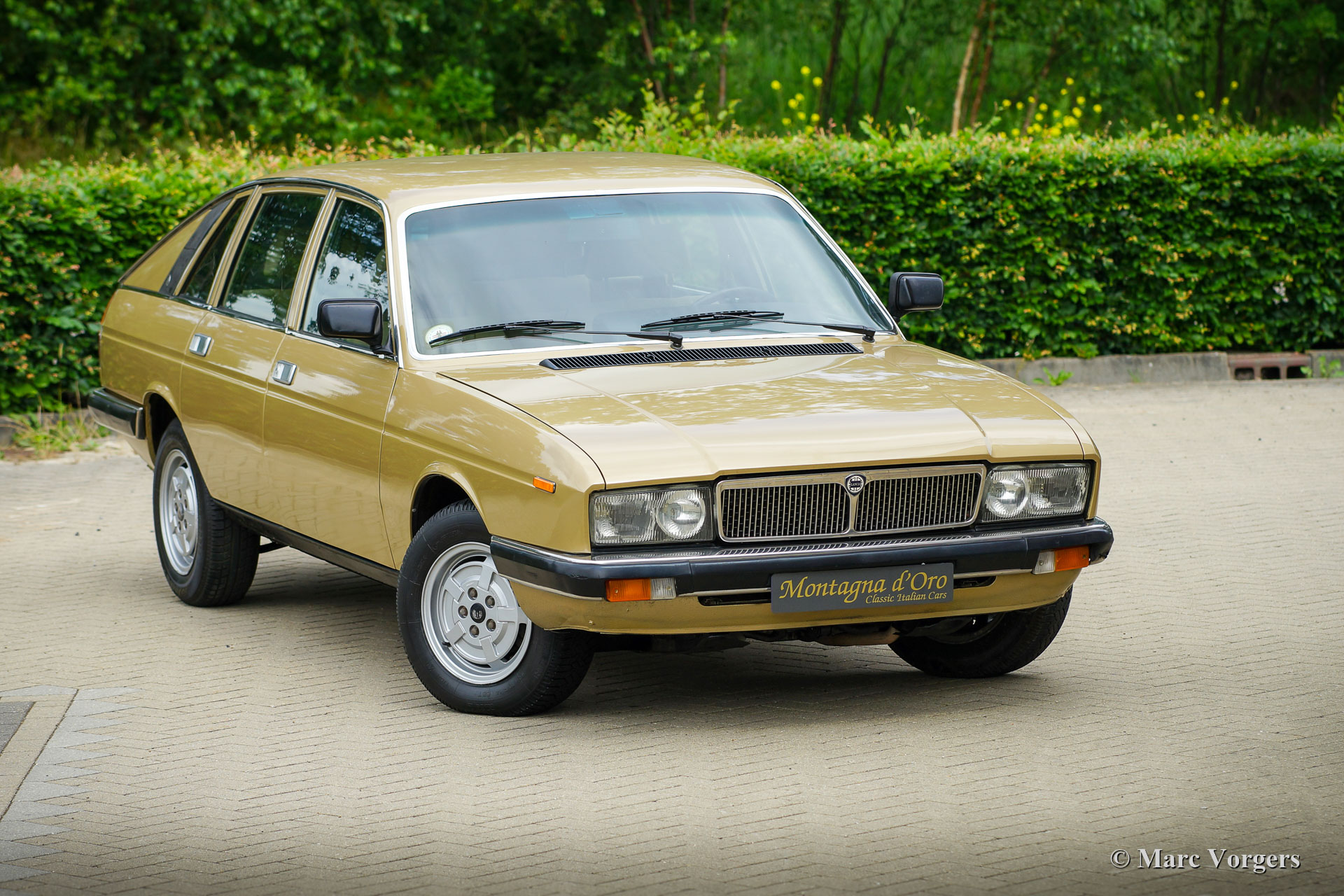 Lancia Gamma 2000 Berlina, Jahr 1981. Fahrgestellnummer ZLA830A32000066XX, Motornummer 830A2000*0112XX* Farbe Goldmetallic (Oro Metallizato) kombiniert mit einem beigen Stoffinterieur und dunkelbraunem Teppich. Der Lancia Gamma Berlina der 2. Serie (1980-1984) mit dem 2-Liter-Boxermotor wurde nur in Italien verkauft, ein seltenes Modell von dem nur 2465 Exemplare gebaut wurden. Das Auto wurde von Pininfarina entworfen und technisch war alles am Gamma das Beste vom Besten. Der Gamma verfügt über Einzelradaufhängung, Vierrad-Scheibenbremsen und ein Fünfgang-Getriebe. Dieses wunderbare Exemplar wurde am 21. März 1981 von der Lancia-Vertretung in Lecce, Italien, neu an Francesco und Anna Marzo geliefert. Herr Marzo war Arzt im örtlichen Krankenhaus, und das Auto wurde an Wochenenden und für längere Fahrten verwendet. Herr Marzo verstarb im Jahr 1997. Von diesem Moment an wurde der Lancia in der Garage aufbewahrt. Mrs. Marzo konnte sich nicht vom Lancia verabschieden. Nach ihrem Tod, über zwanzig Jahre später, wurde das Auto von der Familie verkauft. Unser Ansprechpartner fand den Lancia in vollem Originalzustand und mit knapp über 21.100 Originalkilometern auf dem Tacho. Das Auto erhielt eine perfekte und professionelle Neulackierung und die Rückleuchten Gläser (die einige Risse aufwiesen) wurden erneuert. Die beige Stoffausstattung und der braune Teppich sind noch in perfektem und neuwertigem Zustand! Nach Innenreinigung und Wartung der mechanischen Teile haben wir den Motor wieder zum Leben erweckt. Der Zahnriemen wird beim Verkauf Check-Out-Service erneuert. Der Tachostand zeigt aktuell 21.136 Kilometer an. Dieser Lancia Gamma Berlina befindet sich in einem sehr guten und schönen Originalzustand! Das Auto kommt mit italienischen Papieren. Dieser seltene Lancia Gamma Berlina ist ein wunderschöner Fund für den Lancia-Sammler / -Enthusiasten.