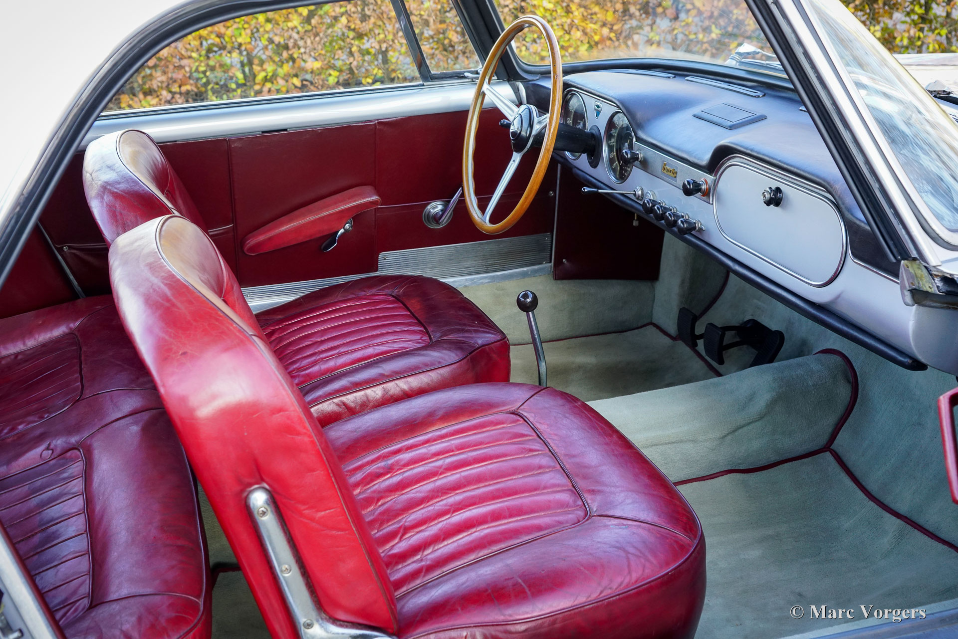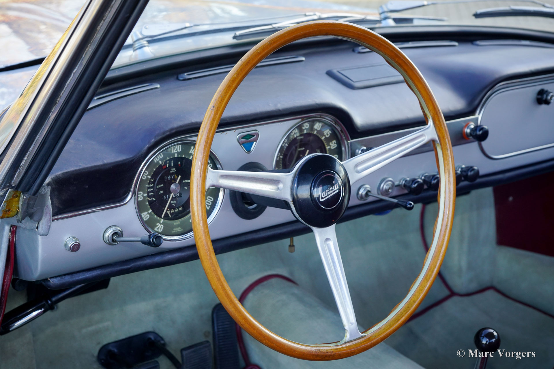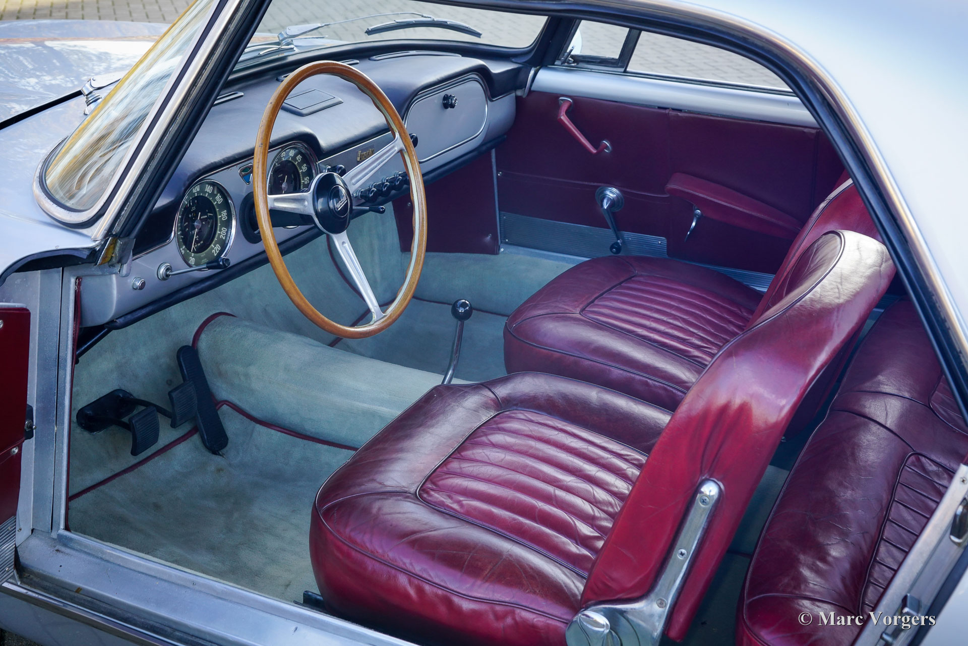 The Flaminia series was at first equipped with a 2500 cc. V6 engine fitted with one double choked Weber carburettor. Shortly thereafter the Flaminia models were fitted with uprated 2800 cc. engines and the most powerful versions were fitted with three double choked Webers. (3C in the Super Sport Zagato). The Flaminia Supersport Zagato was built with a aluminium unitary bodywork construction and the car featured the same technical specialties as the other Flaminia models. The cars featured a "de Dion" rear axle, overhead camshafts, disc brakes all round and a gearbox mounted to the rear axle (Transaxle). The expensive Transaxle construction made it possible to obtain an ideal weight distribution between the front and rear axles resulting in superb roadholding.
