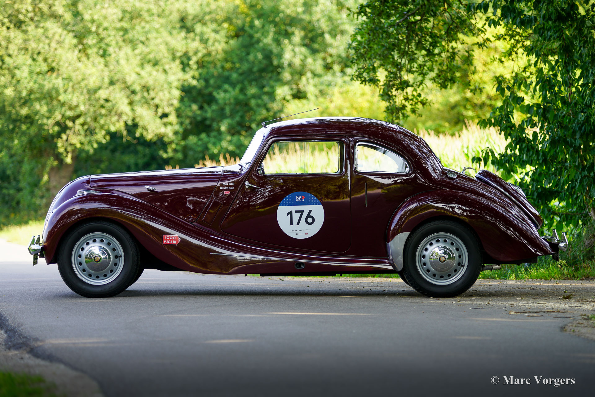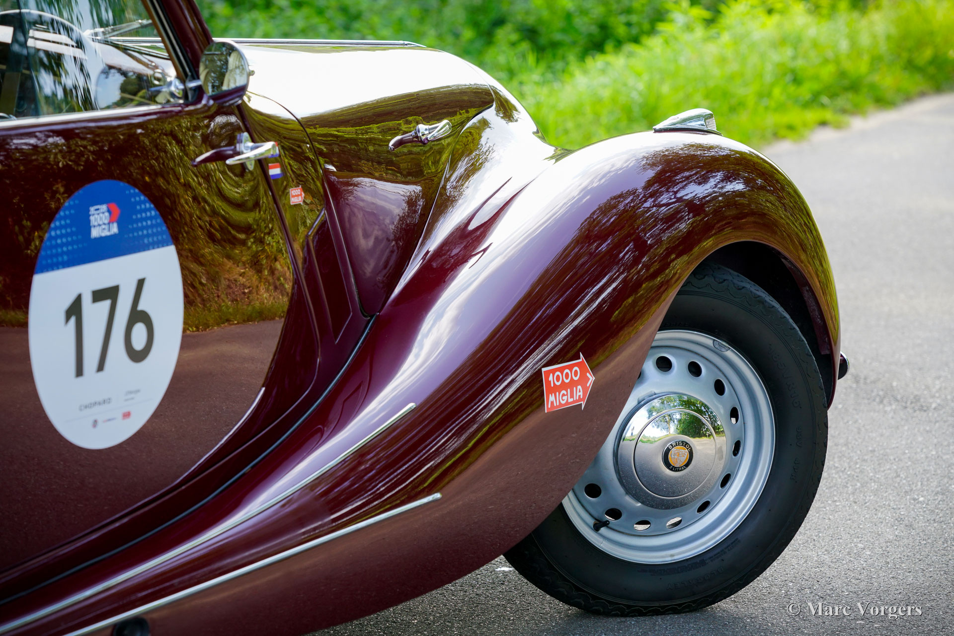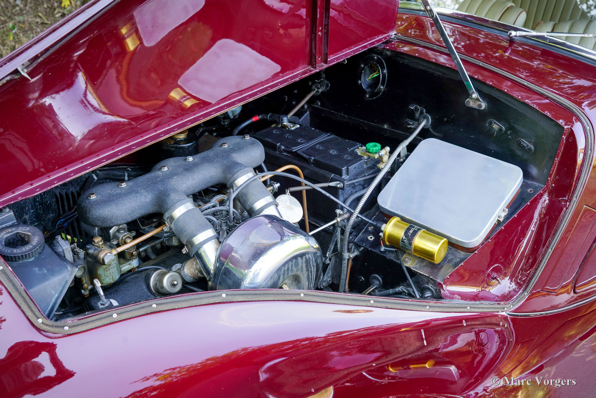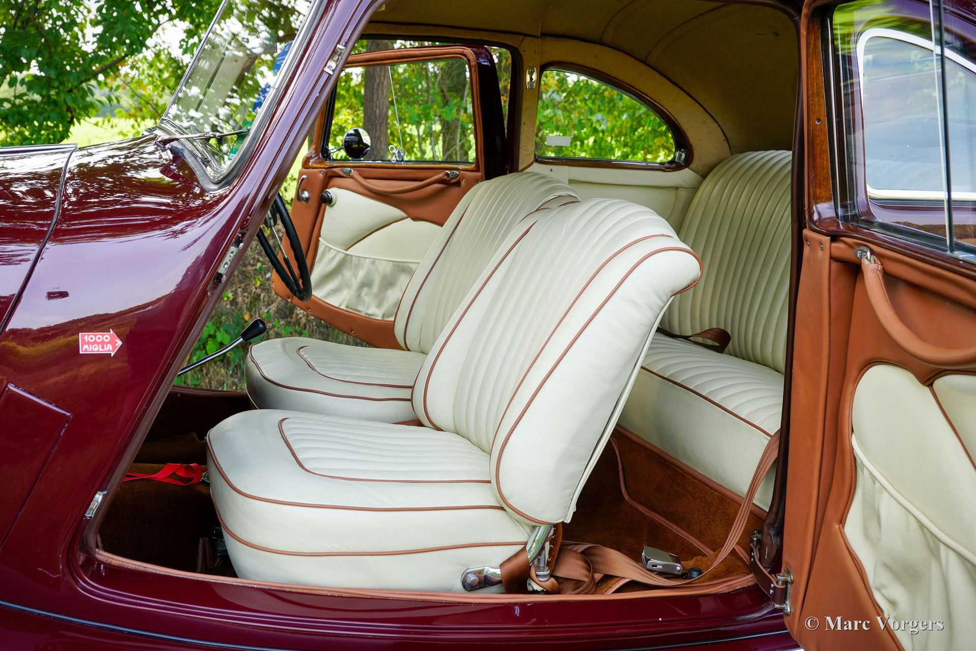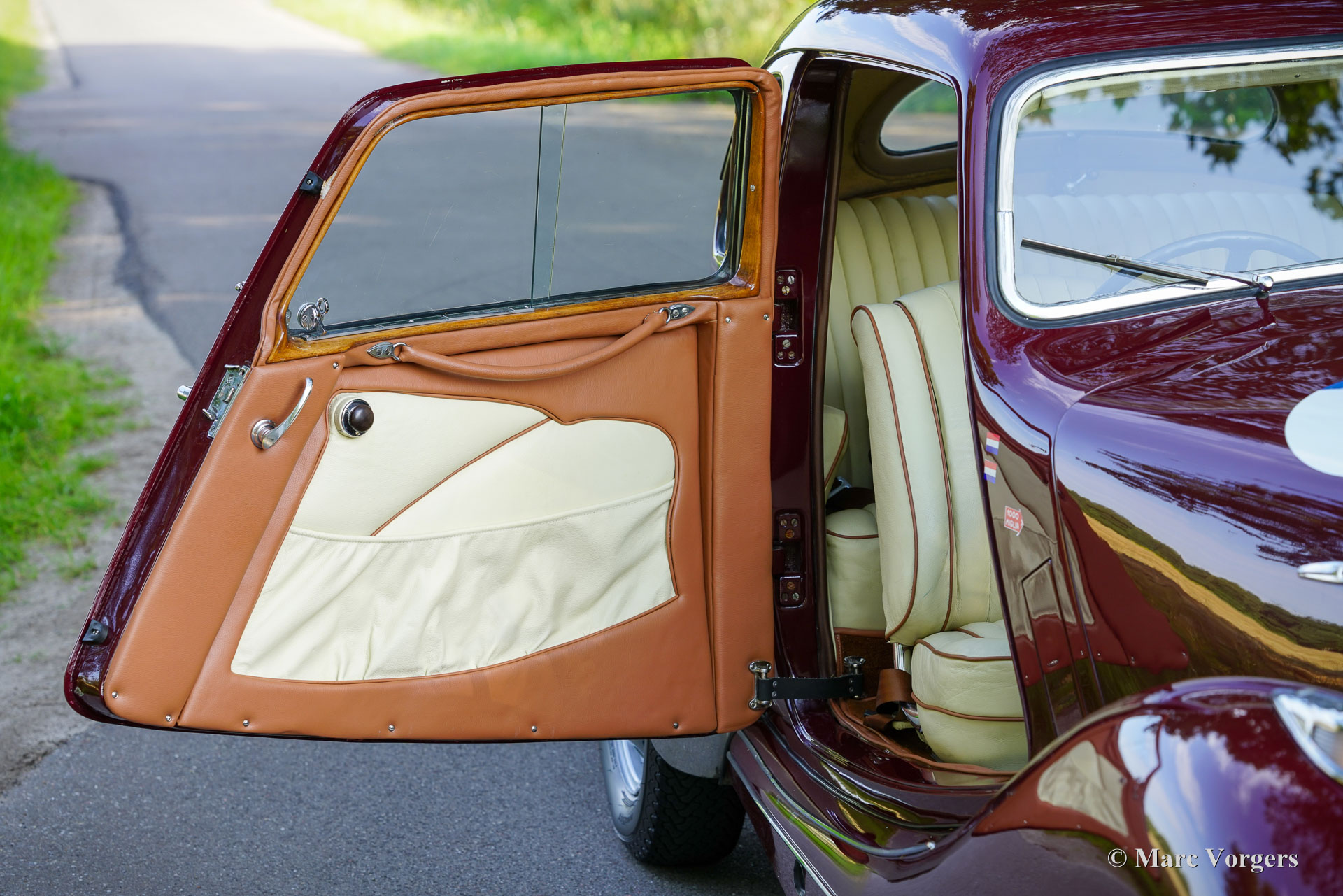 Bristol 400, Jahr 1949. Fahrgestellnummer 400/1/461, Autonummer 400/A/497, Motornummer: 85A/1705. Dies ist ein Auto mit „Matching Numbers“, Karosserie, Motor und Getriebe sind original ab Werk. Dieser Bristol 400 ist in Burgunderrot lackiert, kombiniert mit einer Innenausstattung aus Magnolia-Leder (blassbeige) mit burgunderfarbenen Paspeln und burgunderfarbenem Wollteppich. Als renommierter Flugzeughersteller begann Bristol Aeroplane Co Ltd unmittelbar nach dem Zweiten Weltkrieg mit der Konstruktion seines ersten Automobils. Ihr erstes Modell – der Bristol 400 – kam 1946 auf den Markt. Der 400 war stark von den Designs von BMW aus der Vorkriegszeit inspiriert, der Motor war eine weiterentwickelte Version des hochgelobten Sechszylindermotors BMW 328 aus der Vorkriegszeit. Bristol baute seine Autos in Chargen von jeweils 50–100 Exemplaren. Das Fahrgestell wurde zwischen August und Dezember 1948 gebaut und vorübergehend eingelagert, bevor die Karosserie Ende 1948, Anfang 1949 fertiggestellt wurde. Dieser wunderbare Bristol 400 wurde von der Firma erstmals als „Musterstück für den Autoverkauf“ verwendet. Am 27. Juli 1950 wurde das Auto nach Australien exportiert, wo es im September 1950 in Melbourne ankam. Das Auto wurde von Bristol-Agent D.K. McDonalds an einen Herrn B.R. Walker verkauft, der in Sydney lebte. Das Auto wurde am 14. April 1951 in Australien für den Straßenverkehr zugelassen. Dann wurde das Auto in Grün lackiert, kombiniert mit einer beigen Lederausstattung mit braunen Paspeln. Dann war das Auto mit Extras wie zwei zusätzlichen Sonnenblenden und einer modifizierten Rückbank ausgestattet, die noch immer vorhanden sind. 1954 nahm das Auto an der Queen Elizabeth Royal Tour teil, einem Autokonvoi, der die Königin bei ihrem Besuch in Australien begleitete. In den historischen Unterlagen ist ein Brief mit einer Einladung zum Mittagessen in Anwesenheit der Königin vorhanden. In den folgenden Jahrzehnten wurde das Auto von etwa sieben aufeinanderfolgenden australischen Besitzern geschätzt. Das Auto hat an vielen lokalen Rallyes, Trials und Touren teilgenommen und war im Besitz von abenteuerlustigen Menschen wie dem Kampfpiloten Stuart Leon-Harris of Mosman (Sydney 1967). Die vollständige Historie des Autos ist vorhanden und sie erzählt eine wunderbare Geschichte all der Abenteuer, die dieses fantastische Bristol erlebt hat. In den 1970er Jahren wurde das Auto in Einzelteilen zur Überholung in der Garage eingelagert. 1986 wurde das Auto verkauft und im Auftrag des neuen Besitzers restauriert und neu aufgebaut. Fotos aus den 1990er Jahren zeigen das Auto in der aktuellen Außen- und Innenfarbgebung. 2011 wurde das Bristol an einen Herrn Hill in Somerset, Großbritannien, verkauft. Es wurde eine behutsame Restaurierung durchgeführt und der Motor feinabgestimmt. Fotos aus dieser Zeit sind ebenfalls vorhanden. Im Jahr 2022 wurde das Auto von einem Niederländer erworben, der es in die Niederlande importierte. Über 40.000 € wurden investiert, um das Auto für die Teilnahme an der legendären 1000 Miglia 2024 mechanisch und optisch auf den neuesten Stand zu bringen. Unter anderem wurden Motor und Vergaser überholt und die Elektrik erneuert. Dieser prächtige Bristol 400 hat erfolgreich an der 1000 Miglia 2024 und 2025 teilgenommen und wurde gerade von S2 Classic Cars gewartet. Dieses fantastische Automobil befindet sich in einem hervorragenden Zustand und verfügt über eine beeindruckende Historie. Dieser Bristol 400 könnte Ihre Eintrittskarte zur 1000 Miglia 2026 sein! Das Auto kann in jedes Land importiert und zugelassen werden und verfügt über einen FIVA-Ausweis und eine 1000 Miglia-Registrierung: https://login.registro1000miglia.it/en/view_registry_car/4334
