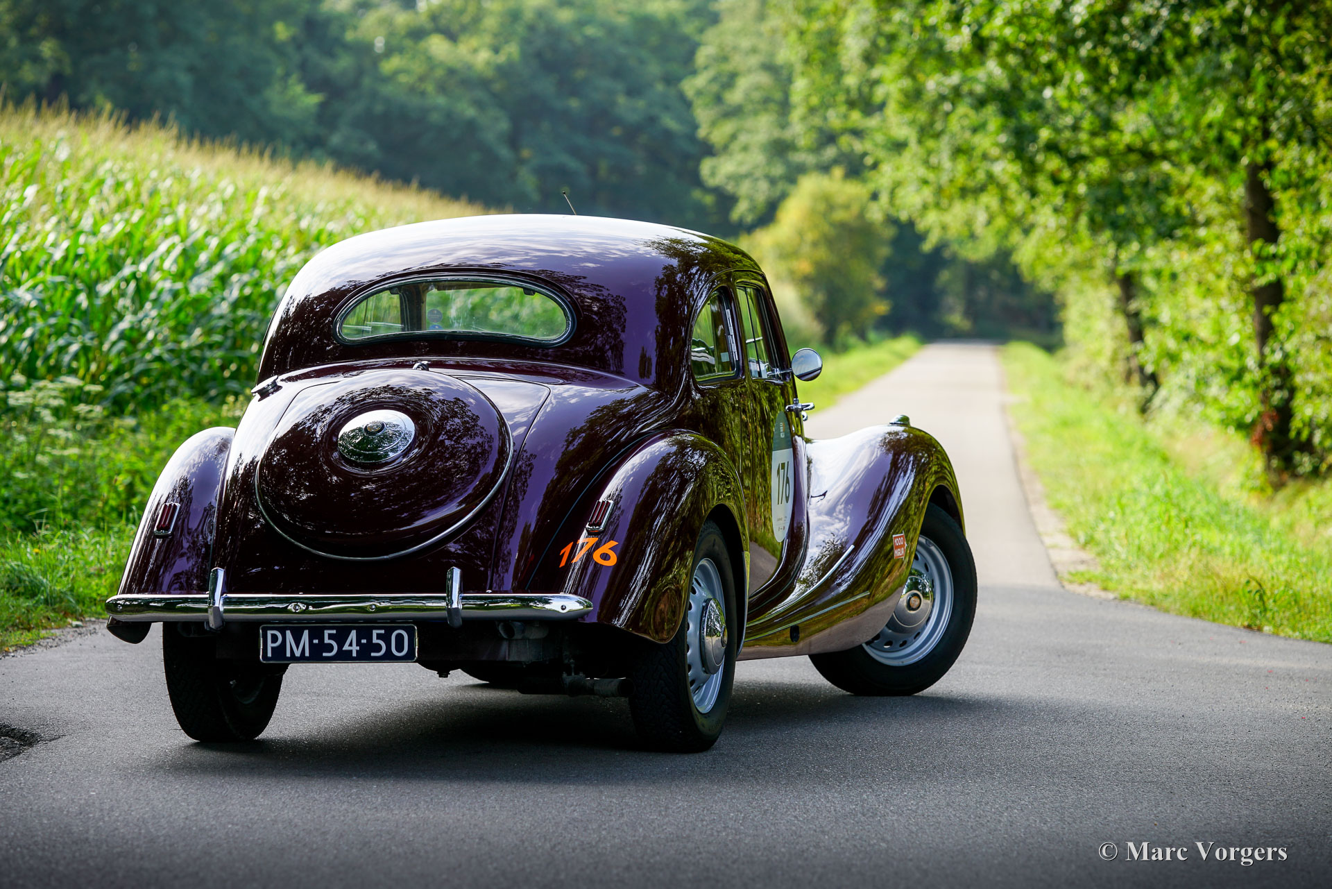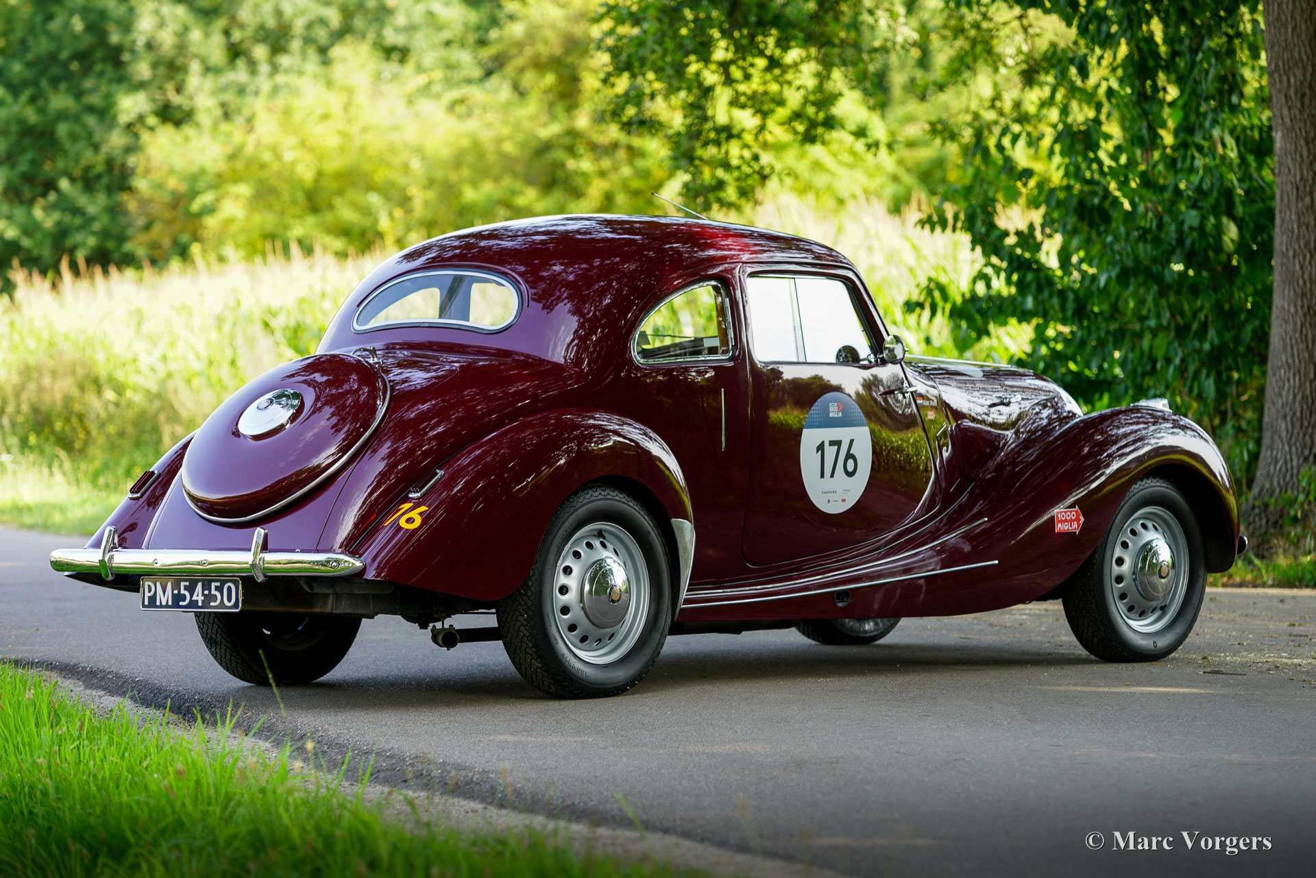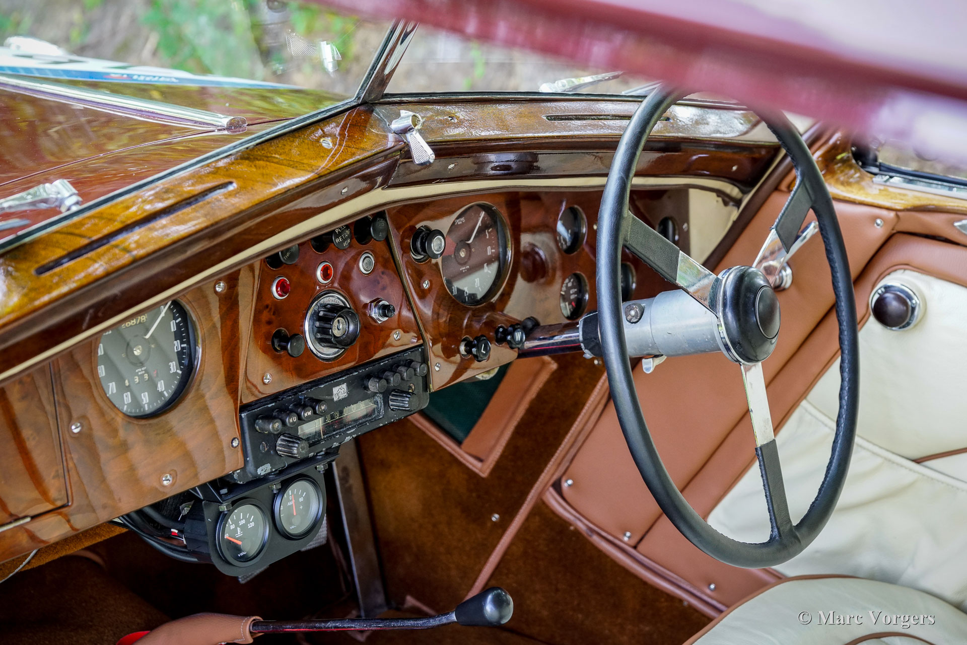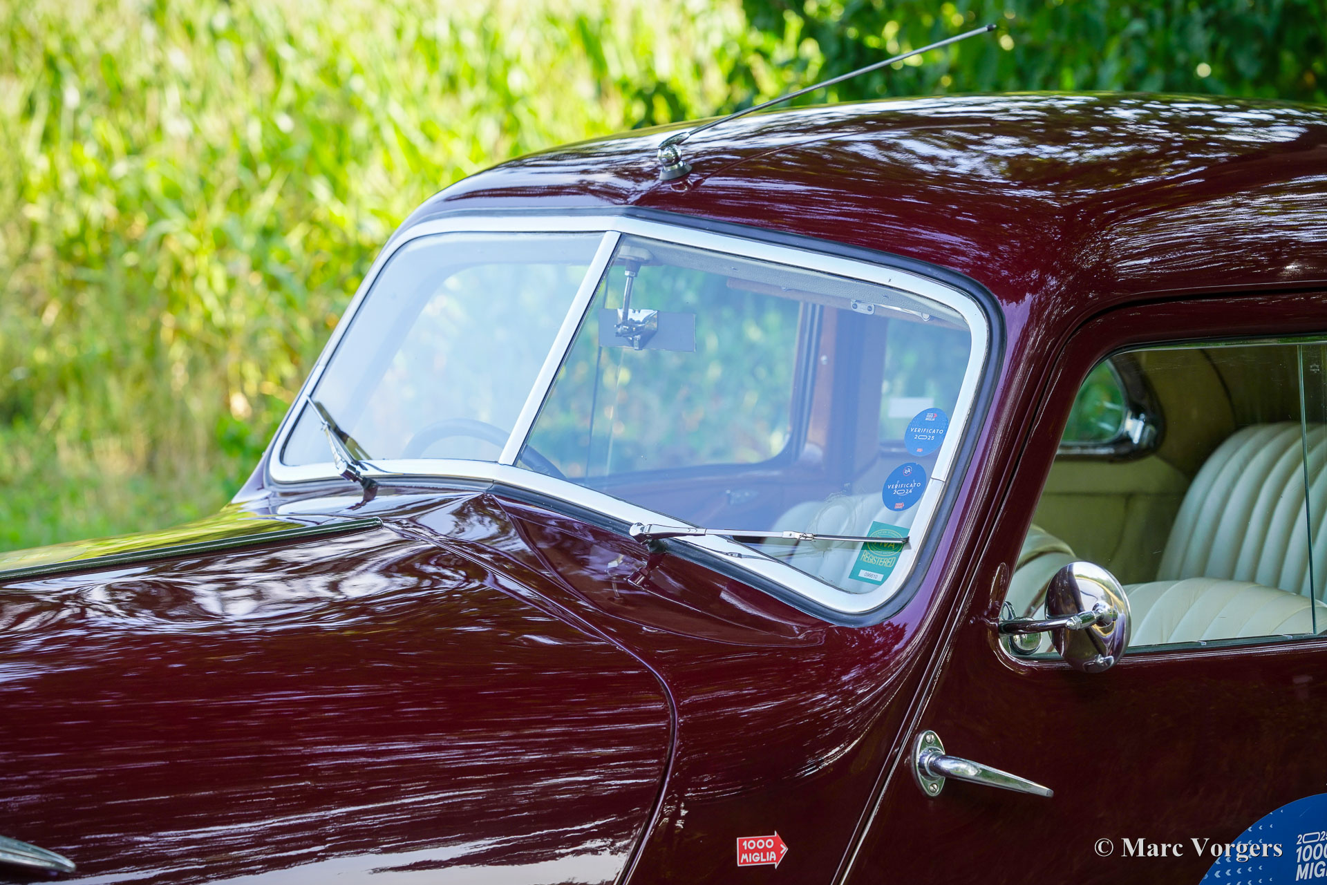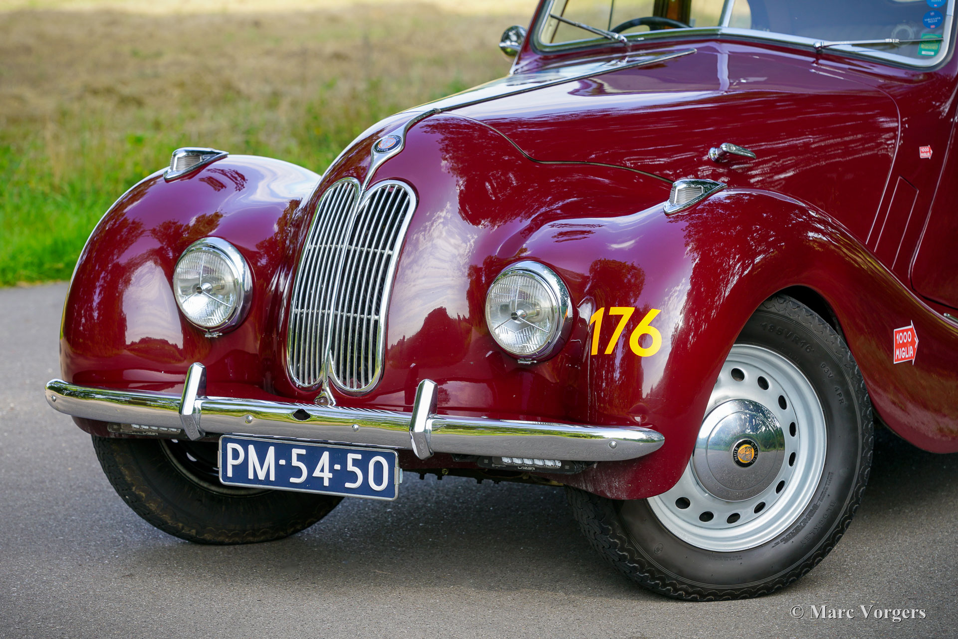 Bristol 400, Jahr 1949. Fahrgestellnummer 400/1/461, Autonummer 400/A/497, Motornummer: 85A/1705. Dies ist ein Auto mit „Matching Numbers“, Karosserie, Motor und Getriebe sind original ab Werk. Dieser Bristol 400 ist in Burgunderrot lackiert, kombiniert mit einer Innenausstattung aus Magnolia-Leder (blassbeige) mit burgunderfarbenen Paspeln und burgunderfarbenem Wollteppich. Als renommierter Flugzeughersteller begann Bristol Aeroplane Co Ltd unmittelbar nach dem Zweiten Weltkrieg mit der Konstruktion seines ersten Automobils. Ihr erstes Modell – der Bristol 400 – kam 1946 auf den Markt. Der 400 war stark von den Designs von BMW aus der Vorkriegszeit inspiriert, der Motor war eine weiterentwickelte Version des hochgelobten Sechszylindermotors BMW 328 aus der Vorkriegszeit. Bristol baute seine Autos in Chargen von jeweils 50–100 Exemplaren. Das Fahrgestell wurde zwischen August und Dezember 1948 gebaut und vorübergehend eingelagert, bevor die Karosserie Ende 1948, Anfang 1949 fertiggestellt wurde. Dieser wunderbare Bristol 400 wurde von der Firma erstmals als „Musterstück für den Autoverkauf“ verwendet. Am 27. Juli 1950 wurde das Auto nach Australien exportiert, wo es im September 1950 in Melbourne ankam. Das Auto wurde von Bristol-Agent D.K. McDonalds an einen Herrn B.R. Walker verkauft, der in Sydney lebte. Das Auto wurde am 14. April 1951 in Australien für den Straßenverkehr zugelassen. Dann wurde das Auto in Grün lackiert, kombiniert mit einer beigen Lederausstattung mit braunen Paspeln. Dann war das Auto mit Extras wie zwei zusätzlichen Sonnenblenden und einer modifizierten Rückbank ausgestattet, die noch immer vorhanden sind. 1954 nahm das Auto an der Queen Elizabeth Royal Tour teil, einem Autokonvoi, der die Königin bei ihrem Besuch in Australien begleitete. In den historischen Unterlagen ist ein Brief mit einer Einladung zum Mittagessen in Anwesenheit der Königin vorhanden. In den folgenden Jahrzehnten wurde das Auto von etwa sieben aufeinanderfolgenden australischen Besitzern geschätzt. Das Auto hat an vielen lokalen Rallyes, Trials und Touren teilgenommen und war im Besitz von abenteuerlustigen Menschen wie dem Kampfpiloten Stuart Leon-Harris of Mosman (Sydney 1967). Die vollständige Historie des Autos ist vorhanden und sie erzählt eine wunderbare Geschichte all der Abenteuer, die dieses fantastische Bristol erlebt hat. In den 1970er Jahren wurde das Auto in Einzelteilen zur Überholung in der Garage eingelagert. 1986 wurde das Auto verkauft und im Auftrag des neuen Besitzers restauriert und neu aufgebaut. Fotos aus den 1990er Jahren zeigen das Auto in der aktuellen Außen- und Innenfarbgebung. 2011 wurde das Bristol an einen Herrn Hill in Somerset, Großbritannien, verkauft. Es wurde eine behutsame Restaurierung durchgeführt und der Motor feinabgestimmt. Fotos aus dieser Zeit sind ebenfalls vorhanden. Im Jahr 2022 wurde das Auto von einem Niederländer erworben, der es in die Niederlande importierte. Über 40.000 € wurden investiert, um das Auto für die Teilnahme an der legendären 1000 Miglia 2024 mechanisch und optisch auf den neuesten Stand zu bringen. Unter anderem wurden Motor und Vergaser überholt und die Elektrik erneuert. Dieser prächtige Bristol 400 hat erfolgreich an der 1000 Miglia 2024 und 2025 teilgenommen und wurde gerade von S2 Classic Cars gewartet. Dieses fantastische Automobil befindet sich in einem hervorragenden Zustand und verfügt über eine beeindruckende Historie. Dieser Bristol 400 könnte Ihre Eintrittskarte zur 1000 Miglia 2026 sein! Das Auto kann in jedes Land importiert und zugelassen werden und verfügt über einen FIVA-Ausweis und eine 1000 Miglia-Registrierung: https://login.registro1000miglia.it/en/view_registry_car/4334