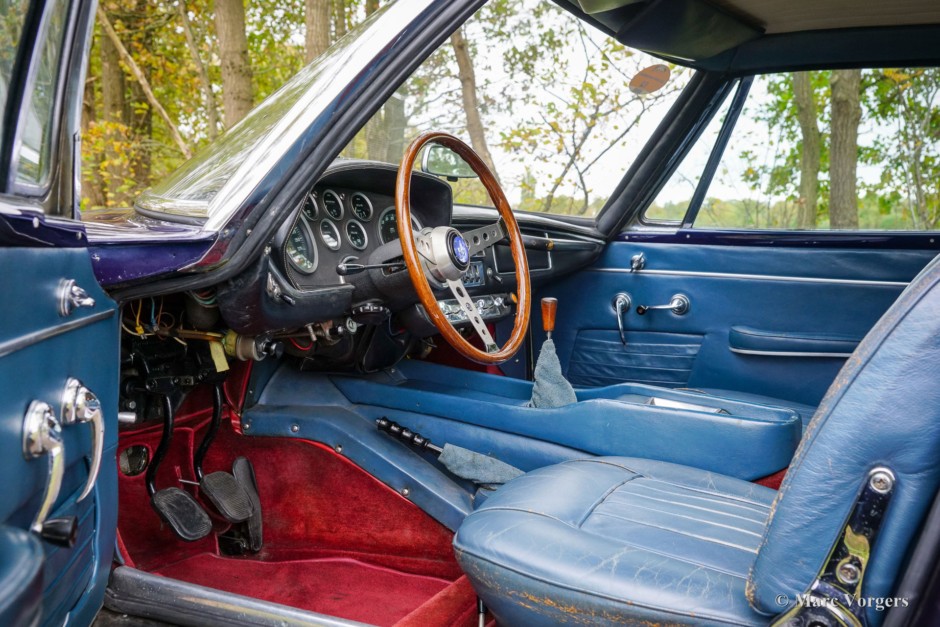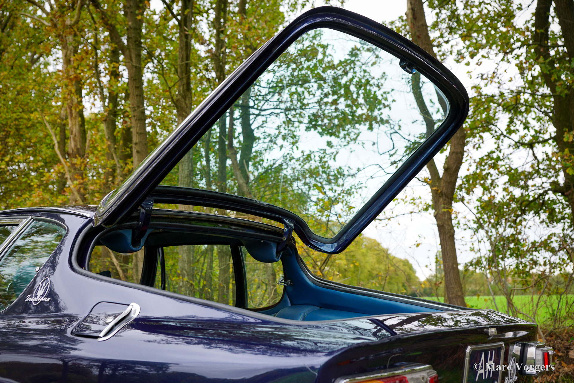 Maserati Mistral Coupé 4 Liter Einspritzung, Baujahr 1966. Fahrgestellnummer AM109/A1/724. Dieses Fahrzeug ist nummerngleich (Matching Numbers), Motor, Getriebe und Hinterachse sind original und gehören an Werk zum Chassis und der Karosserie. Die Karosseriefarbe ist Dunkelblaumetallic (Blu Pervinca 106AR357), kombiniert mit einer blauen Lederausstattung und rotem Teppich. Dieser wundervolle Maserati wurde am 9. Mai 1966 gebaut und anschließend an seinen Erstbesitzer in Verona, Italien, ausgeliefert. Von Italien gelangte der Wagen nach Deutschland zu Herrn Hans Haemer, der ihn 1982 an den Vater des heutigen Besitzers verkaufte. Die Familie besitzt und pflegt dieses besondere Auto nun seit 43 Jahren! Das Maserati Mistral Coupé wurde 1963 vorgestellt und in einer Auflage von nur 844 Exemplaren gefertigt. Alle Fahrzeuge waren mit 3,5-, 3,7- und 4,0-Liter-Reihensechszylindermotoren mit Doppelzündung (und zwei Zündkerzen pro Zylinder) sowie mechanischer Lucas-Benzineinspritzung ausgestattet. Ab 1966 war optional der 265 PS starke 4,0-Liter-Motor erhältlich. Das herausragende GT-Design von Pietro Frua bestach durch die gelungene Kombination aus fließenden, geschwungenen und kantigen Karosserielinien sowie einer großen, verglasten Heckklappe, die dem Wagen ein sportliches und zugleich praktisches Erscheinungsbild verliehen. Dieses Topmodell, das Mistral Coupé mit 4 Litern Hubraum, verließ das Werk in Silbermetallic (Argento Auteuil) mit der noch erhaltenen Originalausstattung. Beim Kauf im Jahr 1982 war der Wagen hellblau lackiert, später wurde die Farbe in Dunkelblau (Blu Pervinca) geändert. In den 1990er-Jahren wurde das Fahrzeug umfassend restauriert und überholt. Der Wagen wurde neu lackiert in seinen aktuellen Lack in Blu Pervinca, der an den hinteren Seiten und am Heck jetzt einige Risse aufweist. 2022 wurde der Zylinderkopf erneut überholt. Neue Ventile und Ventilfedern wurden eingebaut und die Einspritzdüsen erneuert. Zusätzlich wurden neue (einstellbare) Stoßdämpfer installiert. Dieser Maserati Mistral der Spitzenklasse ist ein fahrbereites Auto in gutem bis sehr gutem Zustand und fährt, lenkt und klingt fantastisch! Der Wagen ist mit silber lackierten Borrani-Drahtspeichenrädern ausgestattet, ein gleiches Reserverad befindet sich im Kofferraum. Mit ‚Matching Numbers‘ und einem noch immer wunderschönen, vollständig originalen Interieur ist dieser Maserati Mistral eine fantastische Zeitkapsel. Ein bedeutendes Stück italienischer Sportwagengeschichte aus langjährigem Familienbesitz, das von einem neuen, passionierten Besitzer mit Benzin im Blut geschätzt und genossen werden kann!
