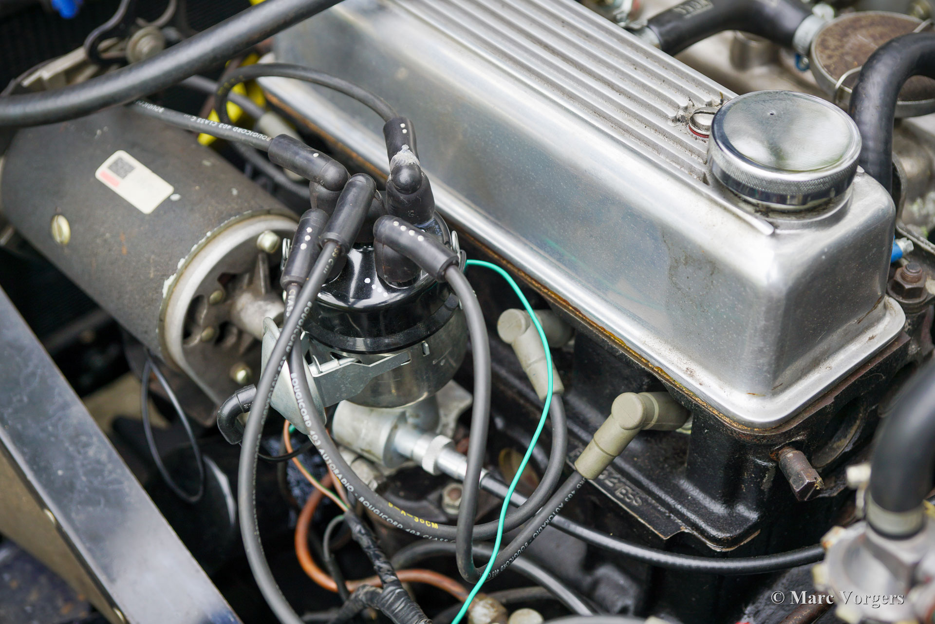 The Triumph Spitfire was equipped with an uprated four cylinder Triumph Herald engine. The engine was covered by a large bonnet enveloping the entire front of the car just like we see with the Jaguar E-type. The Spitfire was designed by the Italian designer Michelotti who had drawn the TR 4 and Triumph Herald too.
