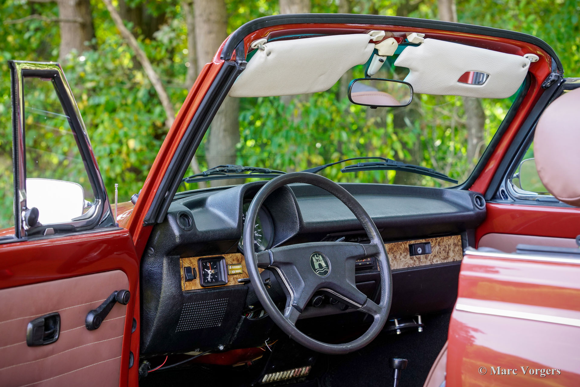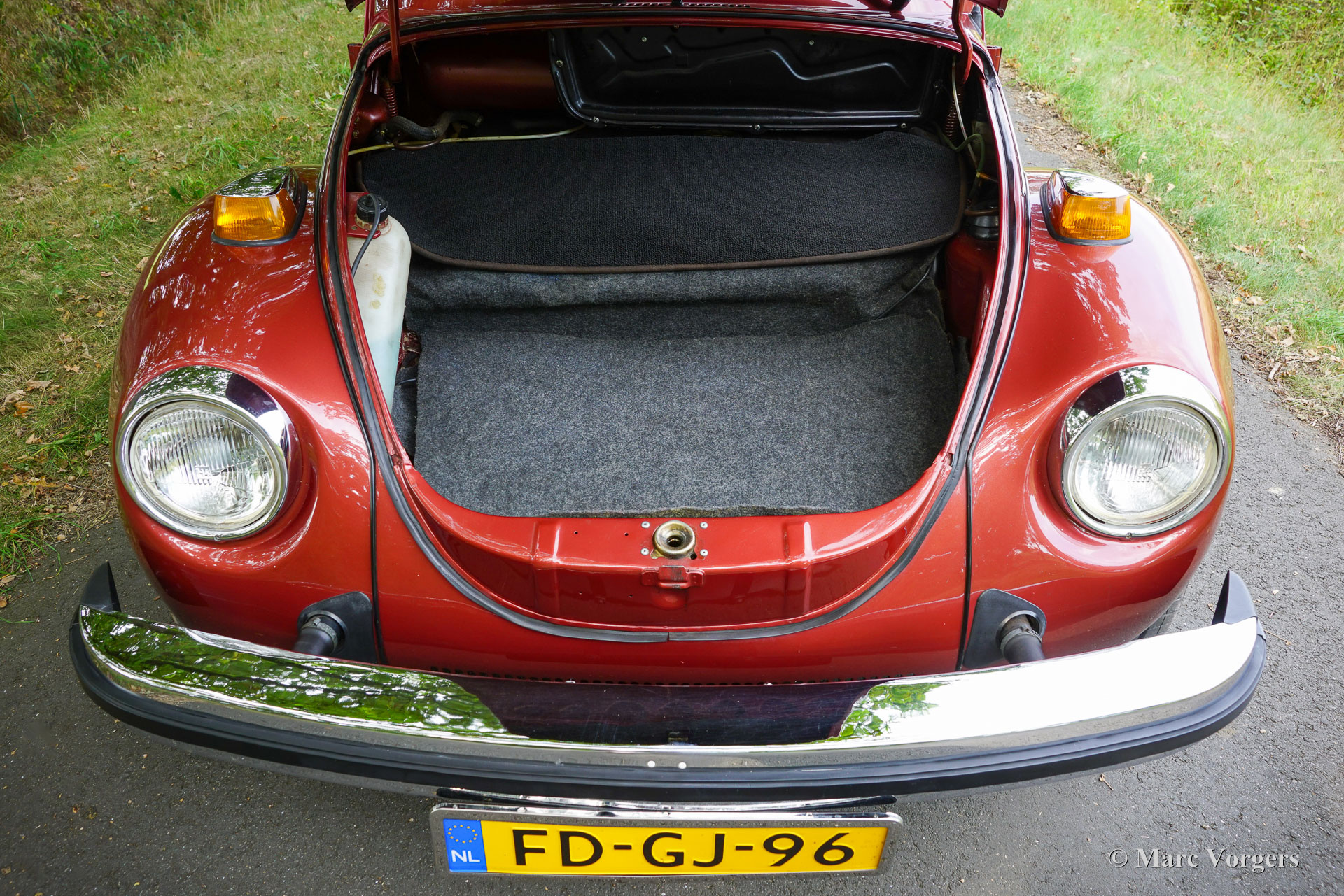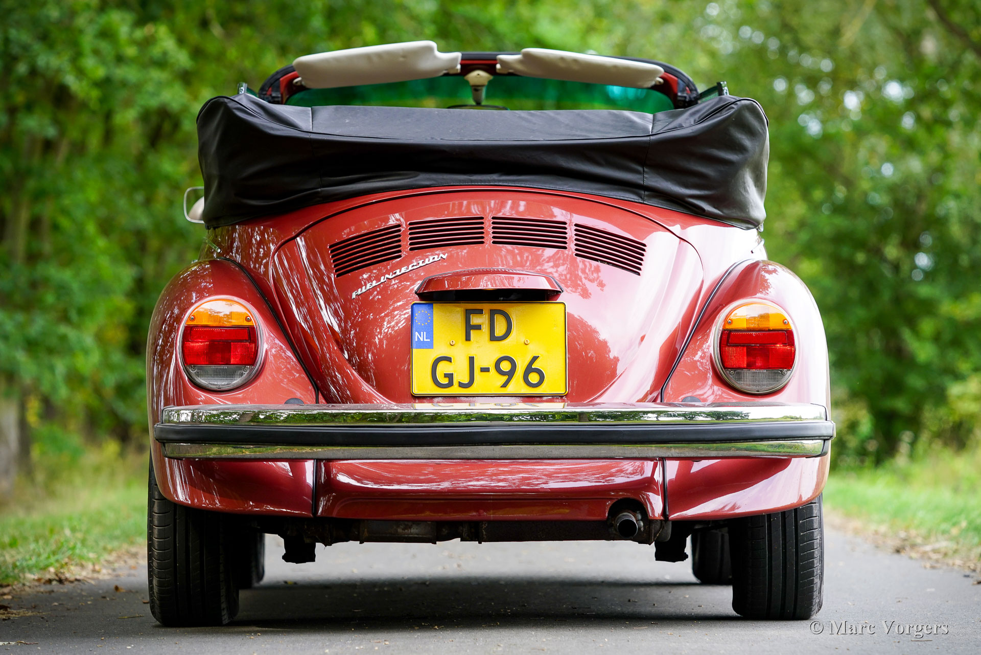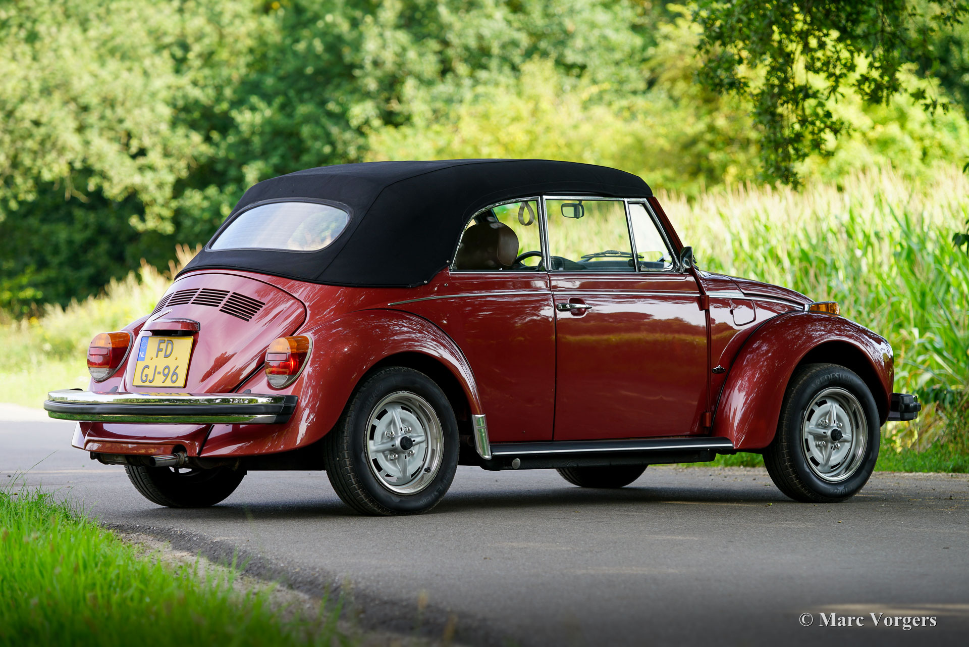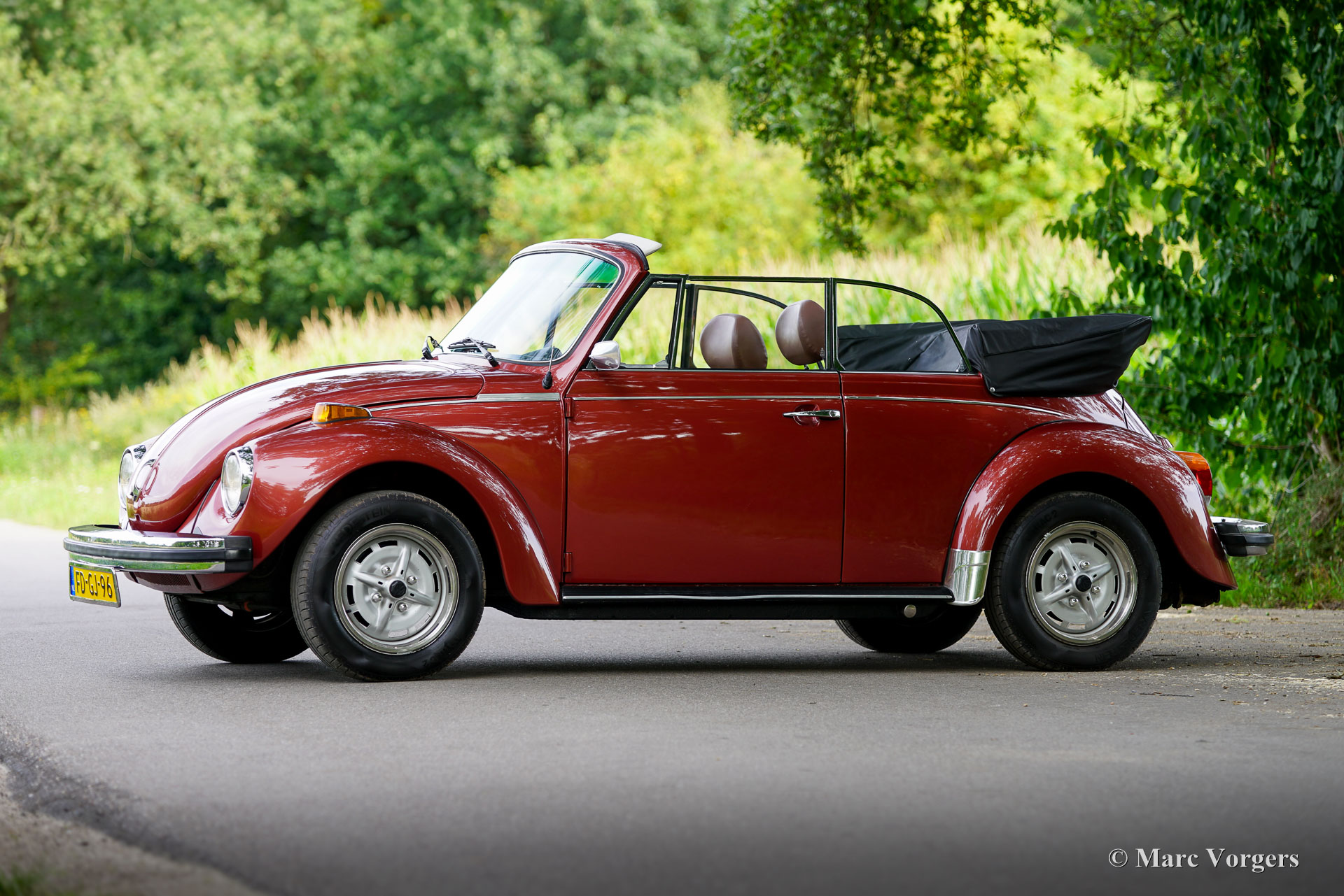 Volkswagen Käfer 1303 LS Cabrio, Jahr 1978. Fahrgestellnummer 1582057102, Motornummer AD692862. Dieser wunderschöne VW Käfer ist in der Originalfarbe Pfirsichrot Metallic (Pfirsichrot LE3Y) lackiert, kombiniert mit einer hellbraunen Kunstlederausstattung und schwarzem Teppich. Das Auto ist mit einem schwarzen Sonnenland-Verdeck und einer schwarzen Verdeck Abdeckung ausgestattet. Dieses VW Käfer 1303 LS Cabrio ist eines von 1100 Exemplaren der „Champagne Edition II“, die 1978 für den US-Markt gebaut wurden. Berichten zufolge erhielt jeder Händler nur zwei Exemplare. Diese Sonderedition ist an der Außenfarbe Pfirsichrot metallic, dem sandfarbenen Verdeck, den cremeweißen Polstern und dem schwarzen Teppich zu erkennen. Bei diesem Exemplar wurden Verdeck und Innenraum durch verschiedene Farben erneuert. Dieses hervorragende Exemplar wurde neu nach Los Angeles, USA, geliefert und dort am 27. Juni 1978 zugelassen. Im Jahr 1992 wurde das Auto in die Niederlande exportiert. In den Niederlanden hatten vier Besitzer Freude an dem Auto. 1. 1992 – 2012, 2. 2012 – 2016, 3. 2016 – 2022, 4. 2022 – 2025. 2025 wurde das Auto der Sammlung von S2 Classic Cars hinzugefügt. Nach der Ankunft in den Niederlanden hatte das Auto noch immer die Originalfarben der Champagne Edition II und war in sehr gutem Zustand. Beim Import in die EU wurden die US-Scheinwerfer gegen europäische Hella H4-Einheiten ausgetauscht. Im Auftrag des ersten niederländischen Besitzers wurde das Auto in der Originalfarbe neu lackiert, der Motor überholt und die Elektrik erneuert. 2018 wurde das alte braune Verdeck durch ein neues schwarzes Sonnenland-Verdeck ersetzt und der cremeweiße Innenraum mit braunem Kunstleder und schwarzem Teppich neu gepolstert. Das Auto wurde im Laufe der Jahre sehr gut gewartet. Im Jahr 2011 zeigte der Tachostand 27.353 Meilen an, das Auto wurde 2016, 2022 und 2025 von VW-Händlern und -Spezialisten gewartet (37.133 Meilen). Dieses wunderbare VW Käfer 1303 LS Cabrio ist in einem sehr guten Zustand und bereit, in vollen Zügen genossen zu werden! Das Auto wird komplett mit einer Historie, einer Volkswagen-Geburtsurkunde (9. Oktober 2024), einem Wertgutachten (8. Oktober 2024), einem Carfax-Dokument und einem Schaltplan geliefert. Außerdem ist ein Blaupunkt-Radio-Kassetten-Stereosystem eingebaut. Dieses Volkswagen Käfer Cabriolet ist ein entzückender Oldtimer, den Sie mit Freunden oder der Familie genießen können und der Platz für vier bis fünf Personen bietet. Dieses Auto wird Sie bei jeder Fahrt freude bringen!