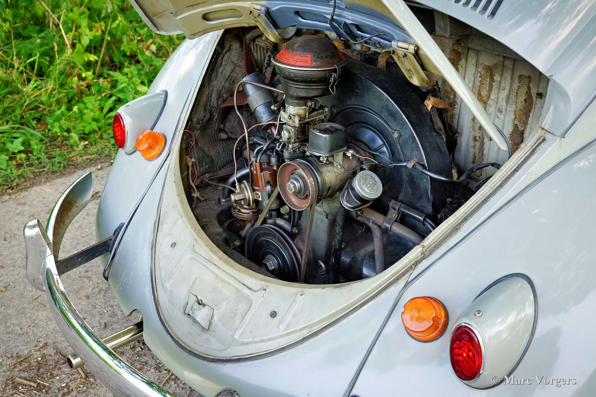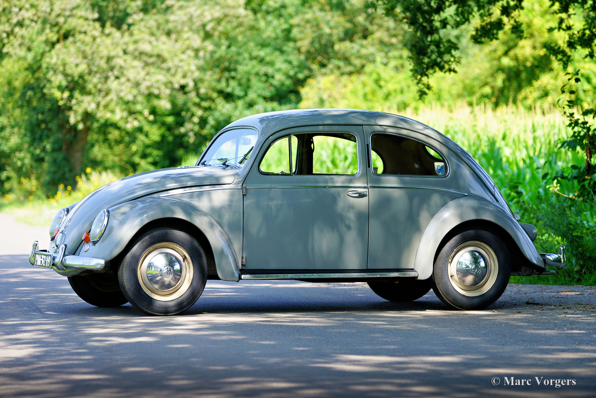 Volkswagen Käfer (ovali), Jahr 1956. Fahrgestellnummer 1066669, Karosserienummer MKA11042, Motornummer 1296694. Farbe Grau kombiniert mit grauer Innenausstattung. Dieser fantastische VW Käfer wurde neu in Victoria, Australien, verkauft, daher die Rechtslenkerposition. Das Auto hatte 61 (!) Jahre lang einen Besitzer in Australien, bis es 2017 in die Niederlande importiert wurde. Der Besitzer nutzte das Auto, um Besorgungen in der Nachbarschaft zu machen, und ließ es nur regelmäßig warten. Dieser Käfer war nie ein „Scheunenfund“, aber er ist ein Original das immer im Einsatz war! Das Auto weist starke Gebrauchs- und Altersspuren auf, der Lack ist abgenutzt, die Polsterung ist abgenutzt und der Teppich ist abgenutzt … Aber die Karosserie und die Mechanik sind rostfrei und voll funktionsfähig! Alle Narben eines Lebens voller harter Arbeit sind deutlich zu sehen, und dafür kann man dem Auto nur Beifall zollen! Dieses wunderbare Originalexemplar sollte nie restauriert, sondern so genossen und geliebt werden, wie es ist. Dieser VW Käfer hat seit dem Neukauf 95.000 Meilen zurückgelegt und fährt sich dank der vielen liebevollen Pflege, die er im Laufe der Jahrzehnte erhalten hat, immer noch wunderbar. Nach dem Import in die Niederlande stellte sich heraus, dass die alten „Semaphoren“ (mechanische Blinker) außer Betrieb genommen werden mussten, um den Straßenverkehrsvorschriften zu entsprechen. Es wurden einfache orangefarbene Blinker eingebaut, die bei Bedarf leicht wieder entfernt werden können. Dieser VW Käfer von 1956 hat eine Überraschung: Das Auto ist berechtigt, an der italienischen 1000 Miglia teilzunehmen! Dieser Volkswagen Käfer hat jede Menge Charakter und bietet jede Menge Fahrspaß. Dies ist eine seltene Gelegenheit, einen völlig originalen VW Käfer mit „Ovalfenster“ zu kaufen.