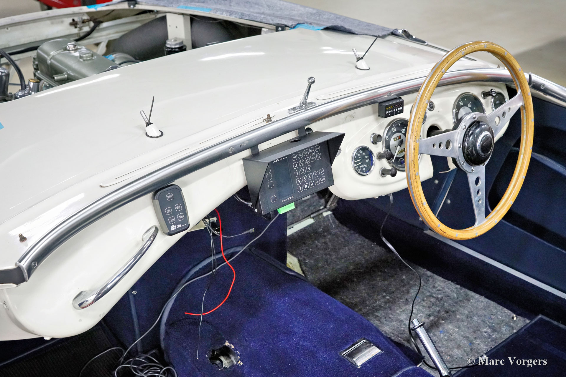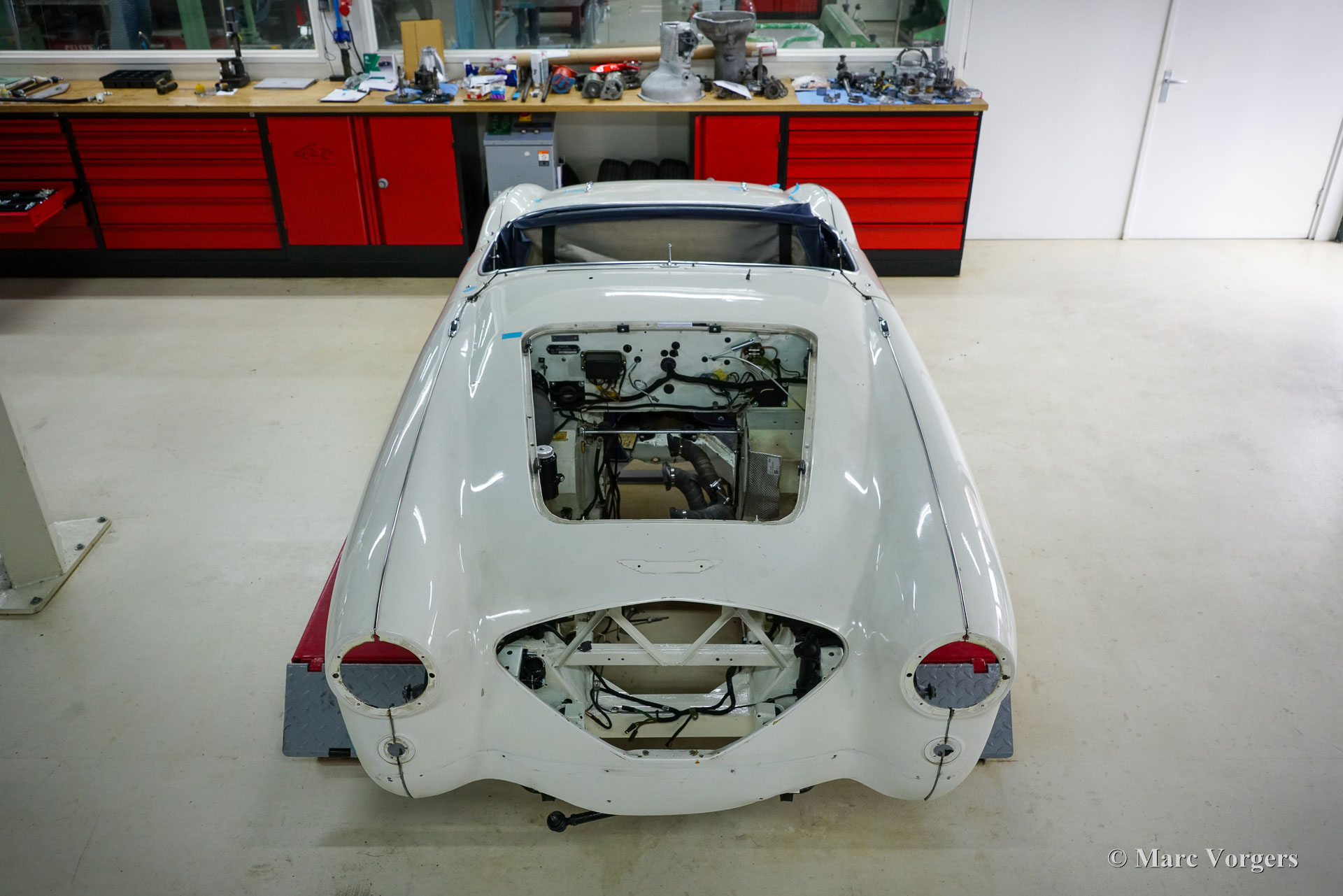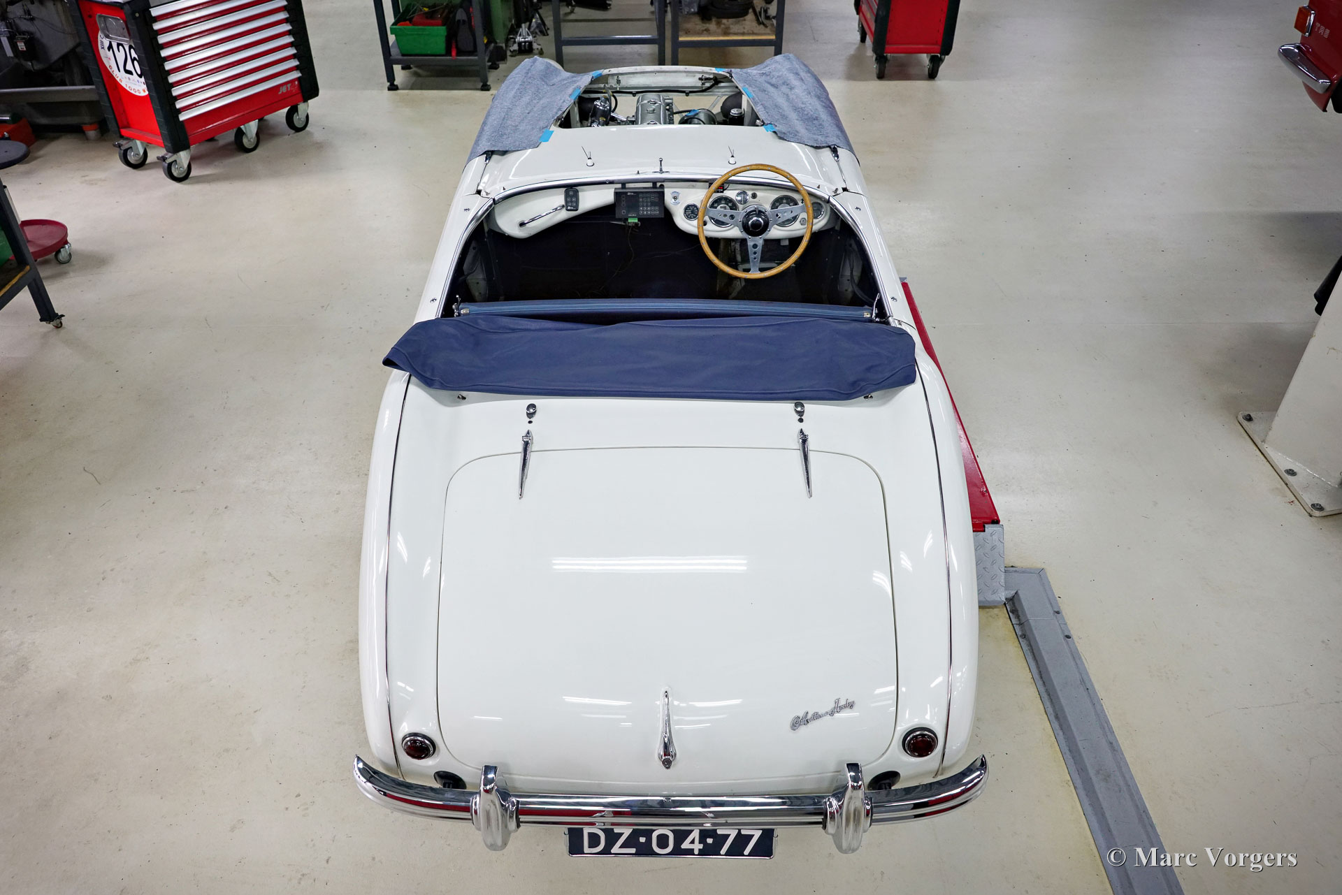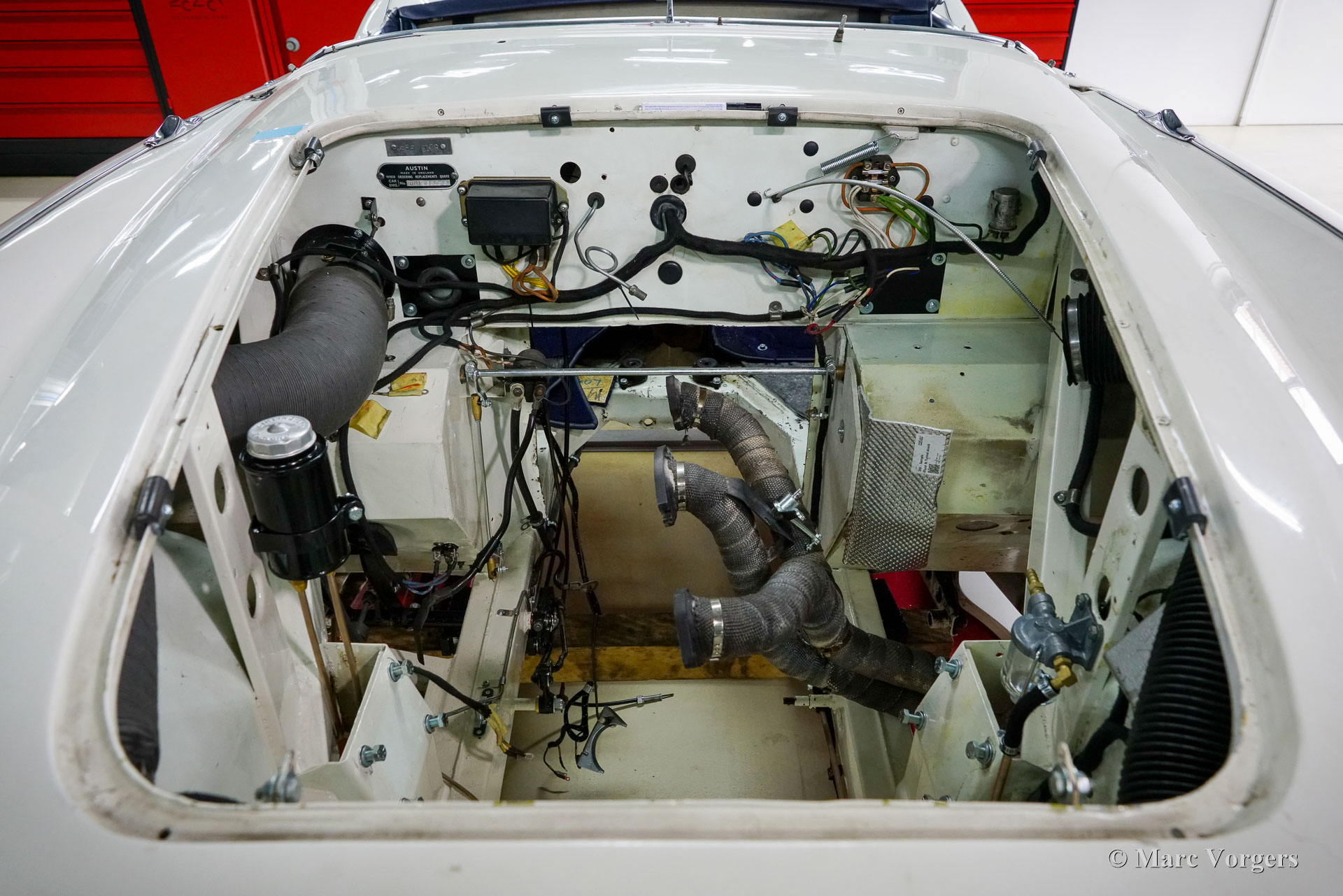 The former Healey models were more Spartan and featured fully detachable soft tops with separate side screens which could be stowed away in the booth.