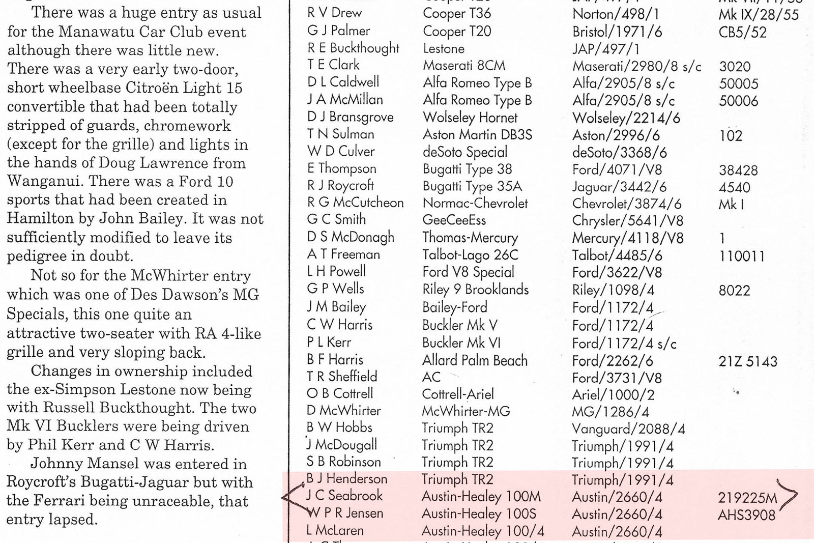 Austin Healey 100/M BN1, Baujahr 1954. Dieser prächtige Austin Healey 100/M BN1 wurde vom Neuseeländer John Seabrook, Besitzer des Austin-Vertreters Seabrook Fowlds Ltd., aus Großbritannien importiert. Das Auto wurde in der Farbkombination Old English White über Blau geliefert mit blauem Innenraum und blauem Verdeck. John Seabrook fuhr den Wagen in den Jahren 1955 und 1956 beim Ohakea Trophy-Rennen, wo der Wagen als „Werks“-BN1M gelistet war. Der „Seabrook“ Healey ist einer von vier Renn-Healeys in Neuseeland, aber der Einzige, der nach „M“-Spezifikationen gebaut wurde. Zu seiner Zeit war es das schnellste Auto in Neuseeland, das Auto erreichte auf einer fliegenden Viertelmeile atemberaubende 134 Meilen pro Stunde. In den 1960er Jahren fuhr der spätere Besitzer Ian Johnson ausgiebig Rennen mit dem Healey 100/M. Johnson gab an, dass das Auto schneller als ein 100S sei. Johnson gewann Sprint-Zertifikate in Tokoroa und beim Taupo Car Club Sprint. Darüber hinaus belegte er 1960 bei den NZ International GP-Rennen den 12. und 13. Platz. Das Auto ist sehr gut dokumentiert und wird derzeit überholt und für die historische 1000 Miglia 2024 in Italien vorbereitet. Alle mechanischen Komponenten wurden überprüft und werden überholt. Das Auto wird mit größter Sorgfalt fertiggestellt, um maximale Zuverlässigkeit während des über 1.000 Meilen langen Gleichmäßigkeitsrennens durch Italien zu gewährleisten.