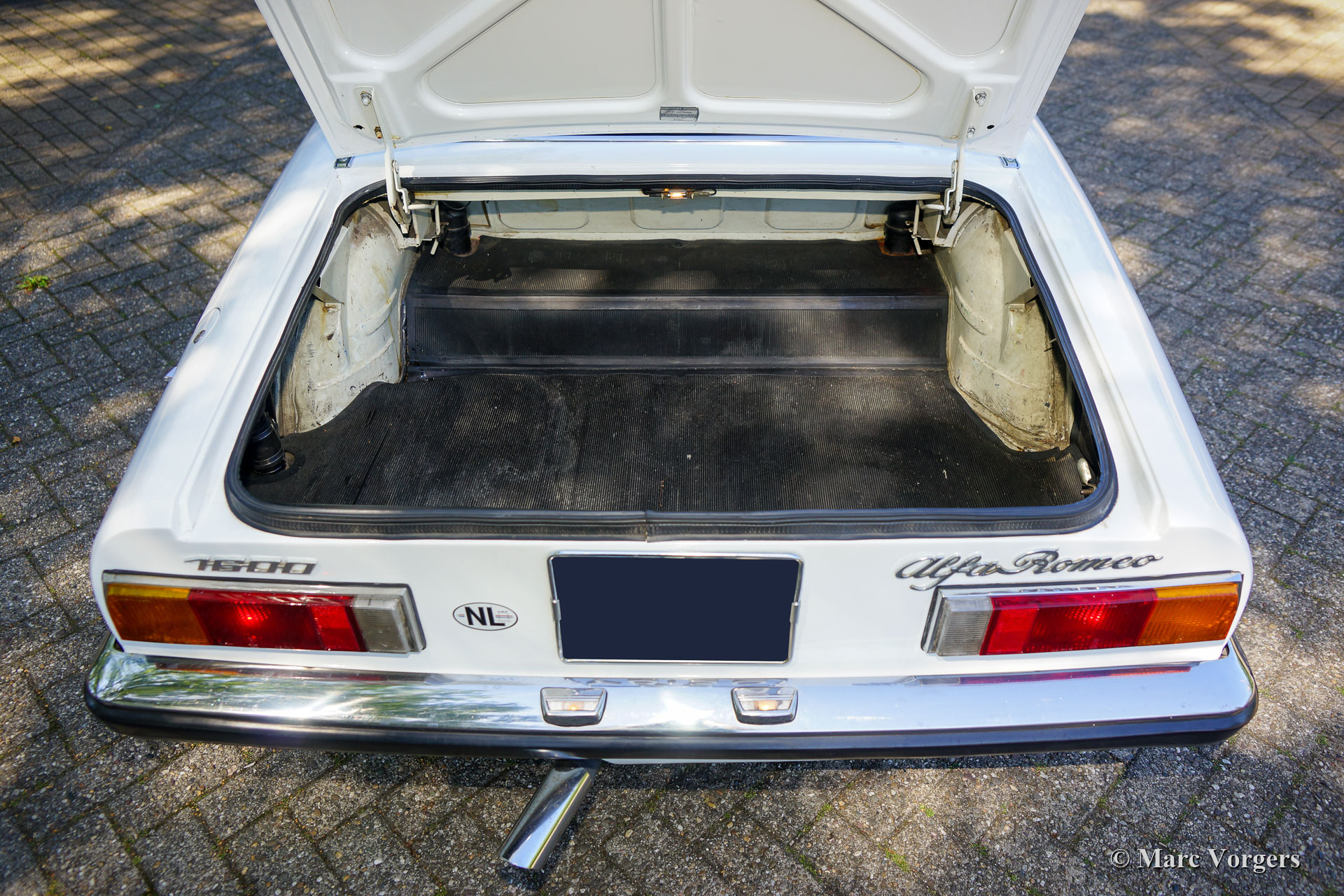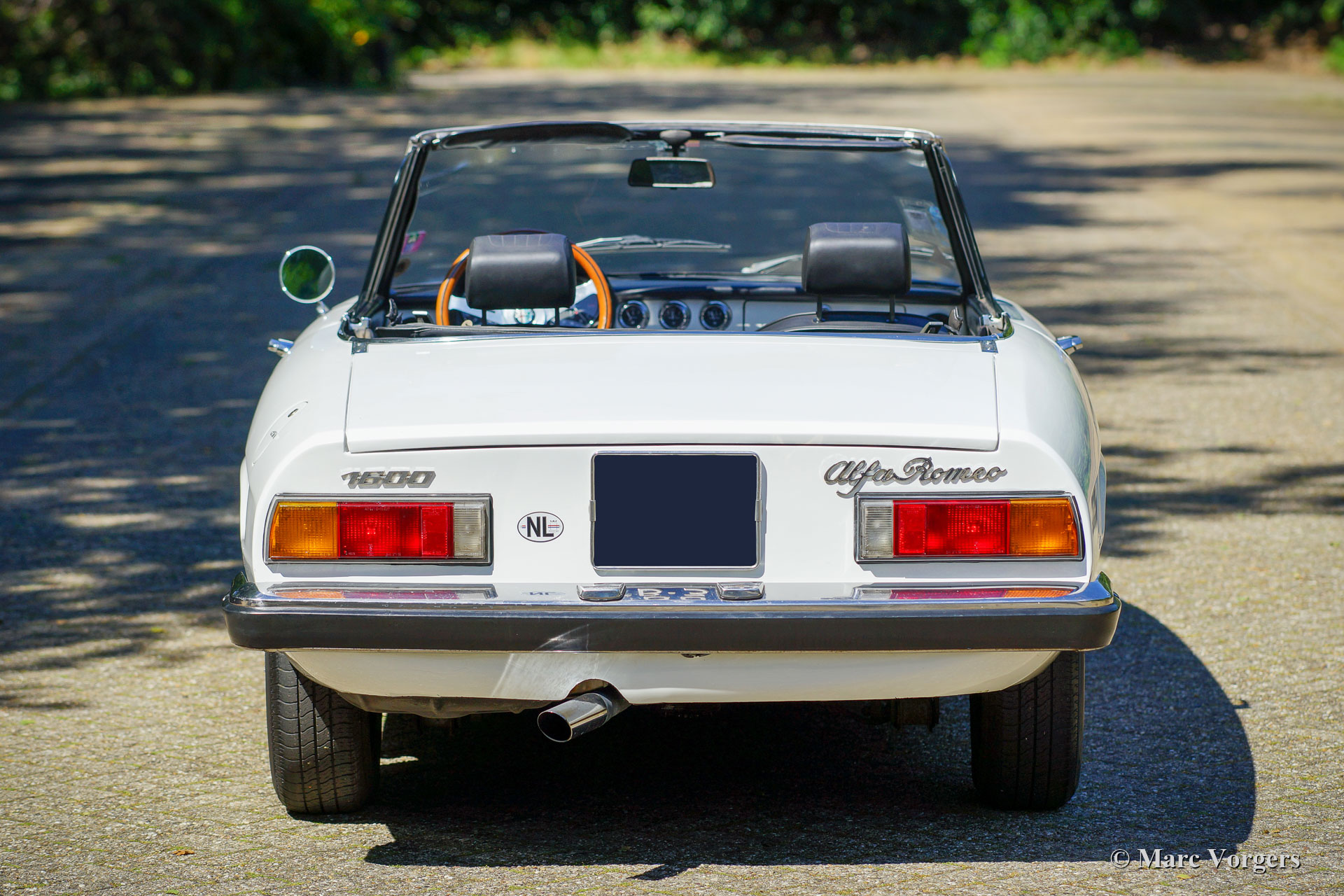 Alfa Romeo 1600 Spider, Jahr 1973. Farbe Weiß (Bianco 008) kombiniert mit einer schwarzen Lederausstattung, einem schwarzen Gummiteppich und einem schwarzen Verdeck. Dieser wunderschöne Alfa Romeo Spider (‚Duetto’ Nachfolger ‚Coda Tronca‘ mit abgeschnittenem Heck) wurde im Juni 2004 in die Niederlande importiert. Der erste und einzige niederländische Besitzer nahm dieses schöne Auto fast jedes Jahr in den Urlaub nach Italien. Das Auto wurde in den letzten 15 Jahren von Classic Job gewartet. Diese Alfa Romeo Spider ist in einem guten und sehr originalen Zustand mit normalen Gebrauchs- und Altersspuren. Der Alfa Romeo Spider ist ein sportlicher Begleiter. Das Auto verfügt über einen begehrenswerten 1600-cm³-Twin-Cam-Motor aus Aluminium, zwei Weber-Doppel-Vergaser, Scheibenbremsen an allen Rädern und ein Fünfgang-Schaltgetriebe! Darüber hinaus verfügt das Auto über Ledersitze, eine Alarmanlage und ein wunderschönes Nardi-Lenkrad mit Holzkranz.