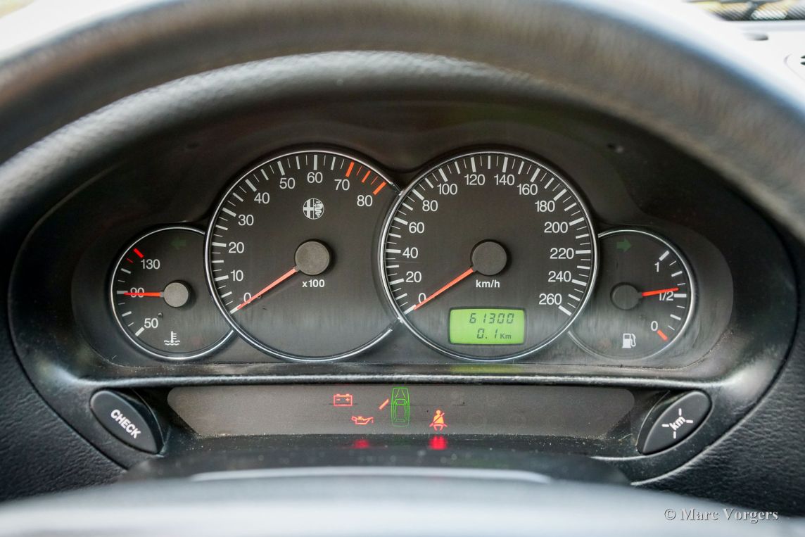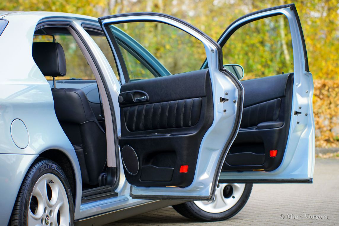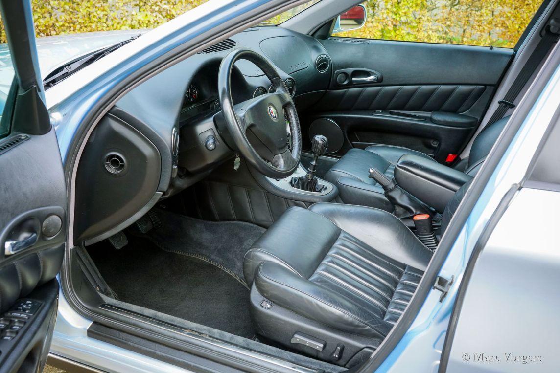 Alfa Romeo 166 Super 3.0 V6, Jahr 2000 (Erstzulassung 27. Januar 2000). Fahrgestellnummer: ZAR936000*00034571*, Motornummer: AR*34301*. Lackfarbe: Azzurro Nuvola 414B. Ein wunderschönes Silbermetallic mit Perlmutt-Effekt; der Lack schimmert je nach Lichteinfall hellgrün, hellblau oder violett. Der Innenraum ist mit schwarzem Leder, dunkelgrauem Teppich und schwarzen Fußmatten ausgestattet. Dieser prächtige Alfa Romeo 166 Super 3.0 V6 wurde in den Niederlanden ausgeliefert. Seitdem hat dieser hervorragend erhaltene Wagen nur 61.234 Kilometer zurückgelegt. Das Fahrzeug befindet sich in einem atemberaubenden und exzellenten Originalzustand! Es wurde über die Jahre hinweg lückenlos gewartet; die letzte Inspektion erfolgte im Mai 2024 bei 60.100 Kilometern. Dabei wurde auch der Zahnriemen erneuert. Der Alfa Romeo 166 basierte auf einer überarbeiteten Plattform mit verbessertem Fahrwerk und bot im Vergleich zum Vorgänger, dem 164, mehr Komfort und Stabilität. Zu den herausragendsten Varianten zählte der 3.0 V6 24V mit dem legendären Busso-Motor. Dieser Saugmotor leistete 226 PS und 275 Nm Drehmoment und ermöglichte eine Höchstgeschwindigkeit von 243 km/h. Mit etwas Geschick und dem Sechsganggetriebe beschleunigte er in unter 8 Sekunden von 0 auf 100 km/h. Dieses Topmodell verfügt über eine edle Lederausstattung, Leichtmetallfelgen, Klimaautomatik und das Alfa-eigene Integrated Control System mit Farbdisplay. Der zwischen 1998 und 2002 produzierte 3.0 V6 Super wurde zu einem Premiumpreis angeboten, was seine Position an der Spitze der Modellreihe widerspiegelte. Dieses hervorragend erhaltene Originalfahrzeug mit geringer Laufleistung dürfte Sammler und Liebhaber begeistern, die höchste Qualität suchen!