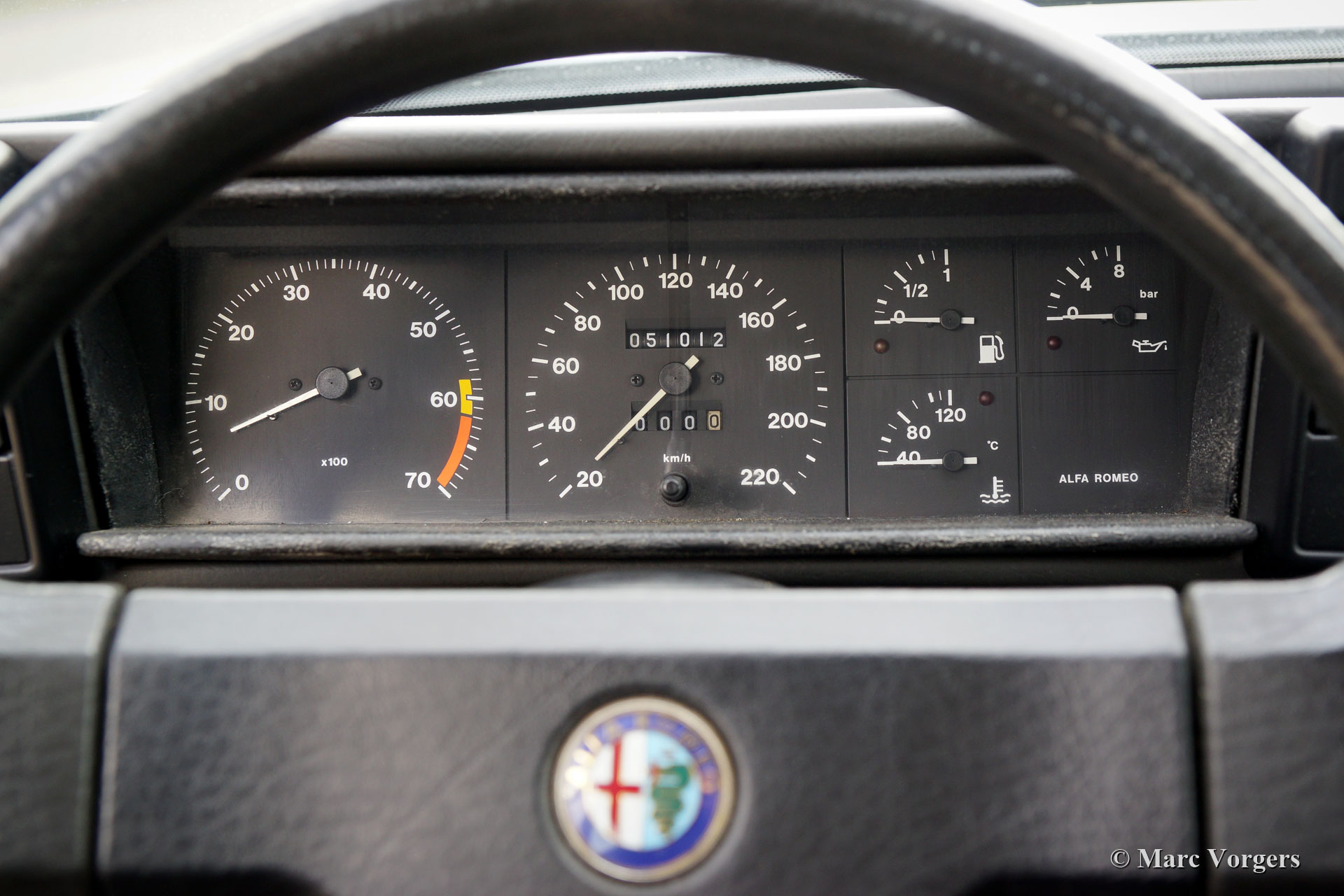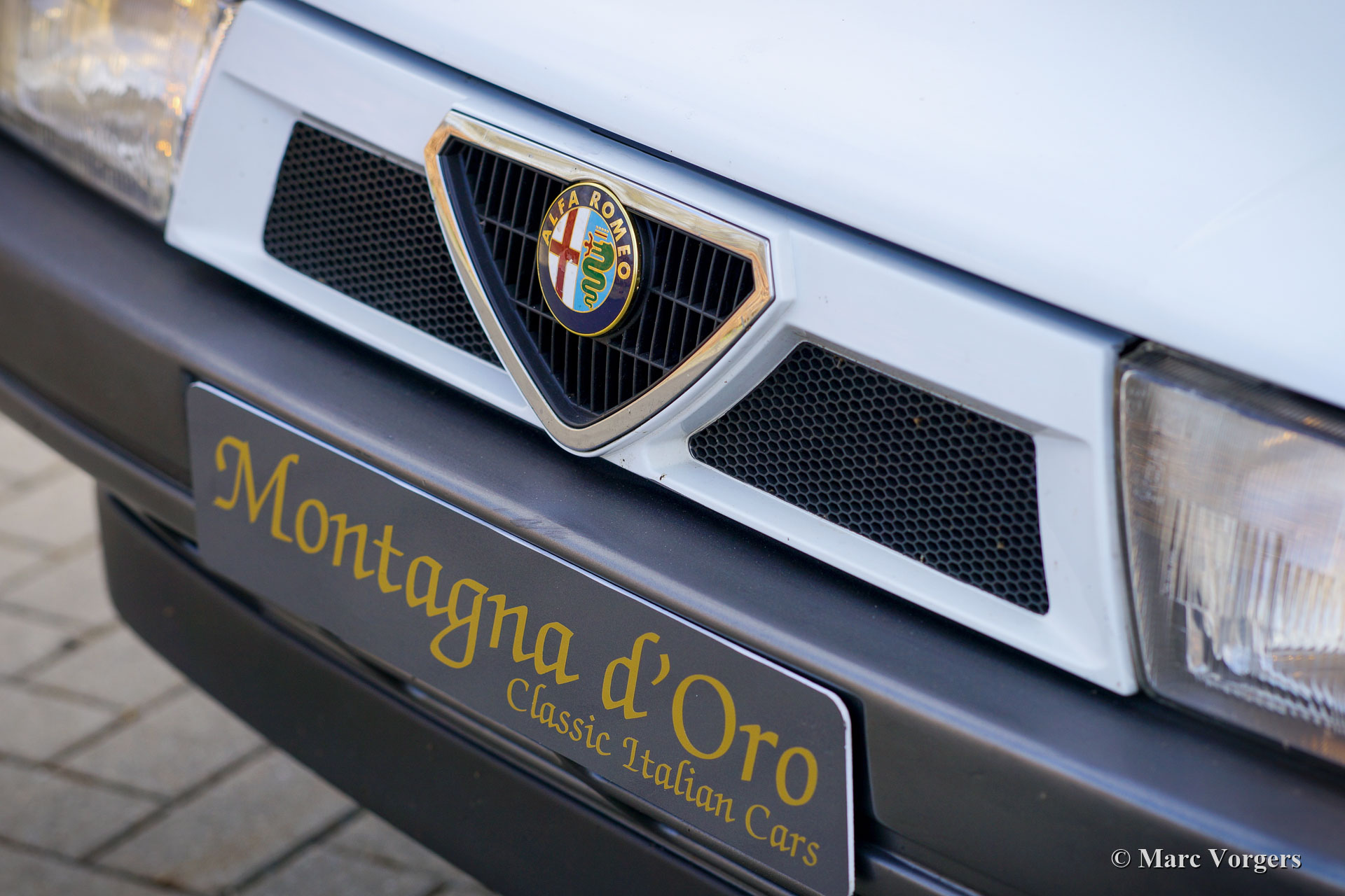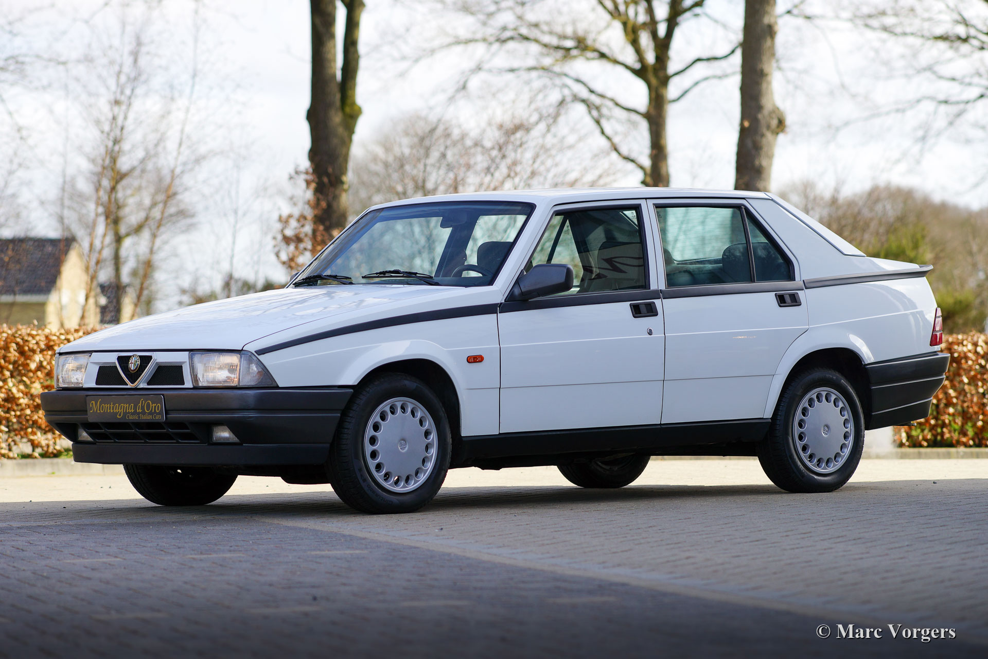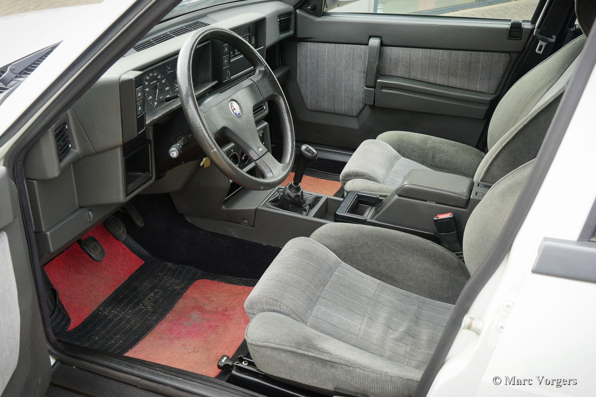Alfa Romeo 75 1.8 IE, Jahr 1990. Farbe Weiß (Bianco Freddo 230) kombiniert mit einem grauen Stoffinterieur, einem grauen Armaturenbrett und einem schwarzen Teppich. Dieser schöne Alfa Romeo 75 wurde in Italien neu verkauft, im April 2019 wurde das Auto vom ersten Besitzer (wohnhaft in Rom) angekauft und in die Niederlande exportiert. Von neuem hat dieser Alfa 75 nur 50,975 Kilometer gefahren. Unsere Probefahrt ergab, dass dieser Alfa 75 wie neu fährt, anfühlt und bremst! Das Auto ist in einem außergewöhnlich guten und super originalen Zustand. Das Äußere sieht aus wie neu mit nur einem Kratzer am linken Rand der vorderen Stoßstange. Das Stoffinnere ist in einem sehr guten Zustand mit nur einem kleinen Riss in der Naht des Beifahrersitzes. Der Motorraum, der Kofferraum und die Unterseite sind alle sauber und zeigen alle Originaldetails. Der Alfa 75 ist der letzte der „klassischen“ Alfa Romeo mit Hinterradantrieb und, eingeführt mit dem Alfetta von 1972, ein 5-Gang-Getriebe "Transaxle", das vor der DeDion-Hinterachse montiert ist. Der Alfa Romeo 75 ist ein echtes Fahrerauto und zeigt wundervolle Designdetails, die in den 90er Jahren des 20. Jahrhunderts wirklich auffielen. Dieser Alfa Romeo 751.8 IE ist ein fantastischer Fund für den Enthusiasten!